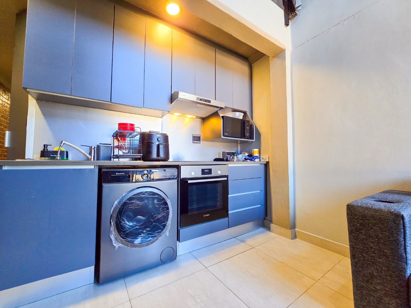The unit features sleek tiled floors throughout and is ideal for first-time homeowners or as a solid investment opportunity. Additional perks include two allocated parking bays and a well-maintained block in excellent condition.