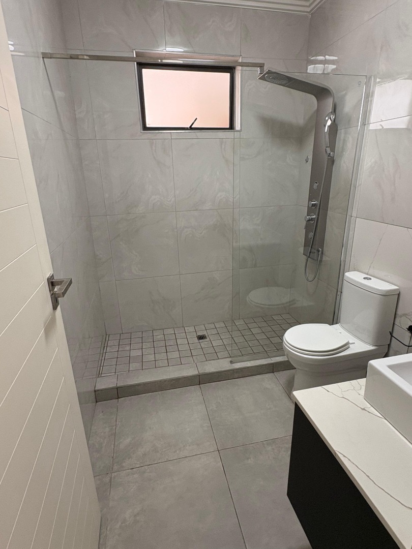 Down the hallway, you’ll find two generously sized bedrooms with built-in cupboards and large windows that invite soft natural light throughout the day. The main bedroom includes a private en-suite bathroom with modern fittings, while the second bathroom offers equal comfort and elegance for guests or family.