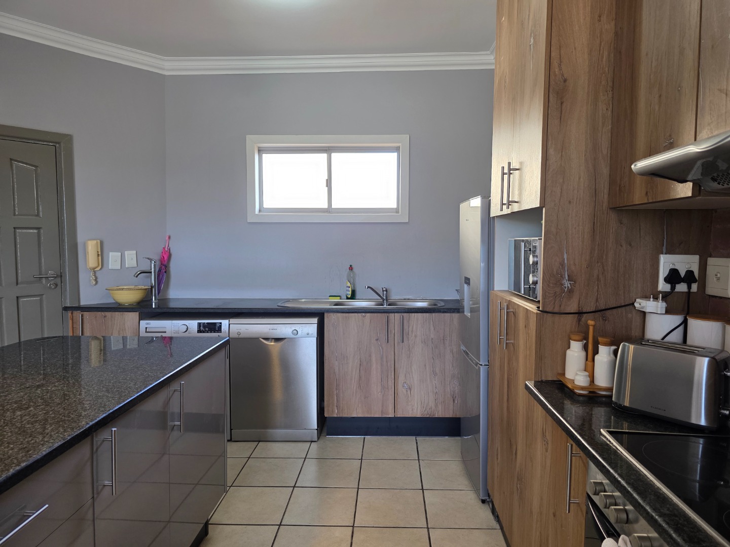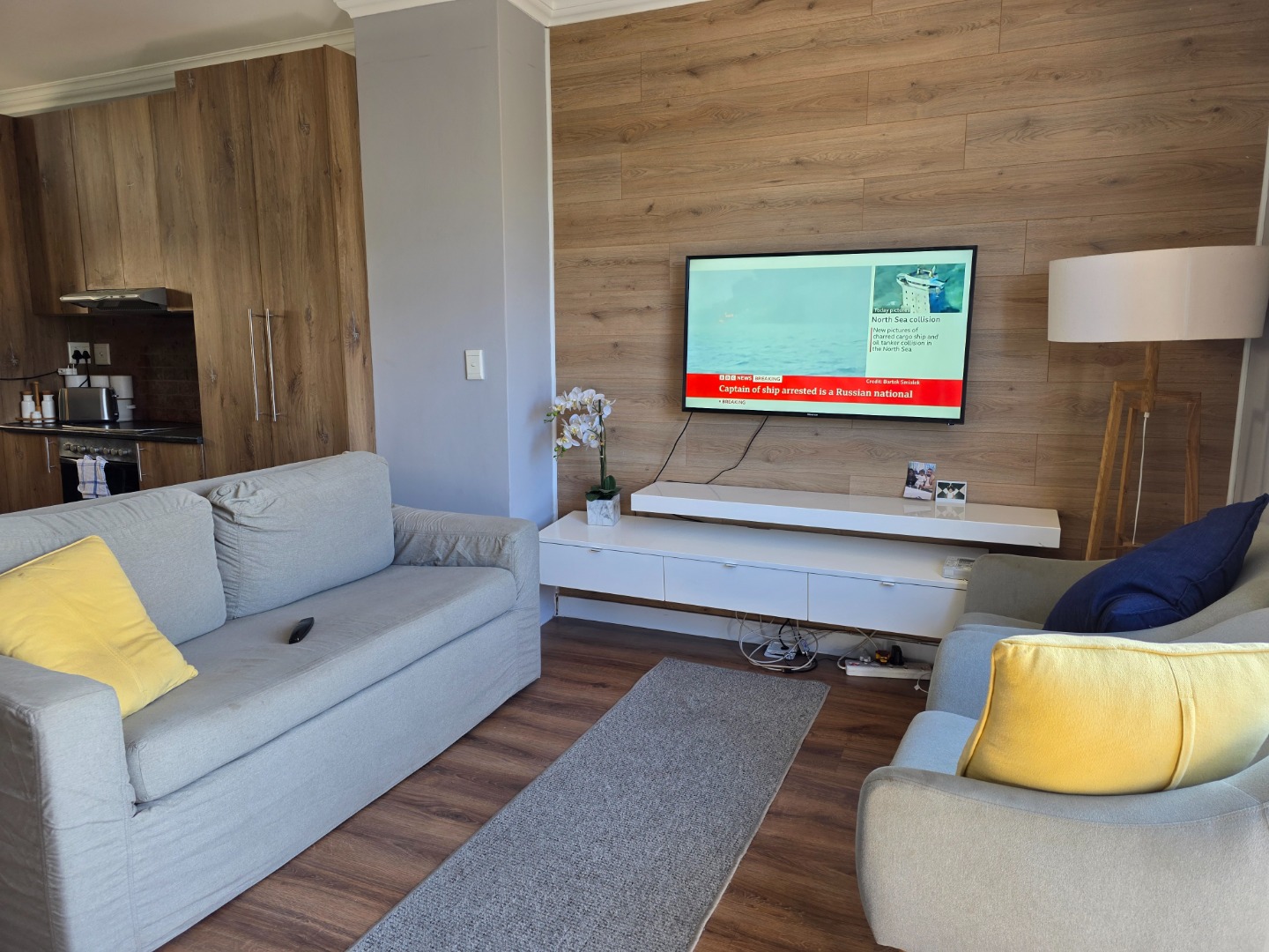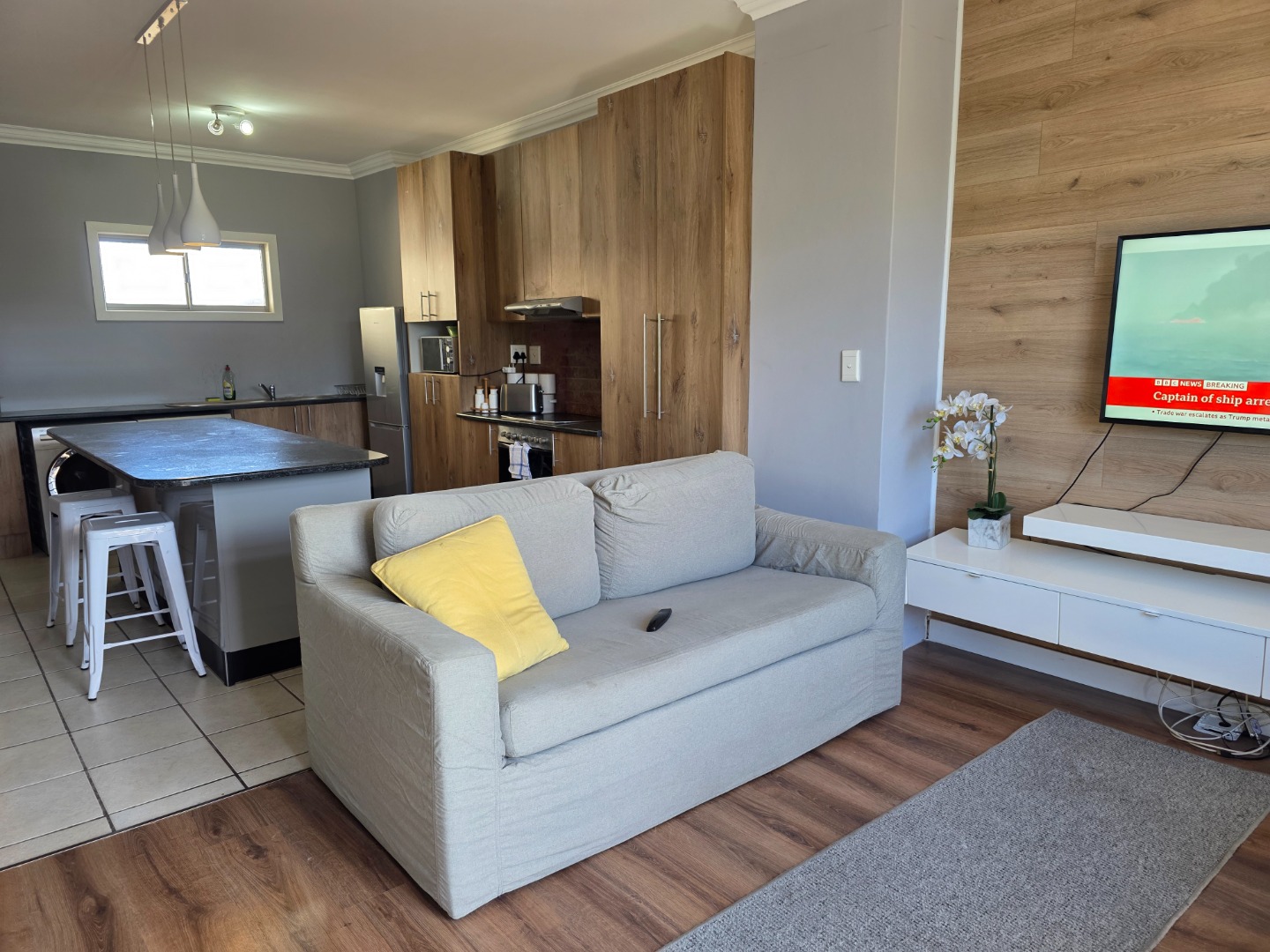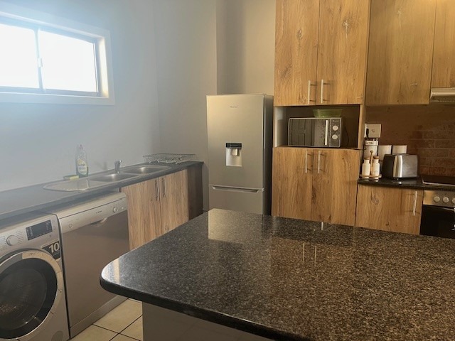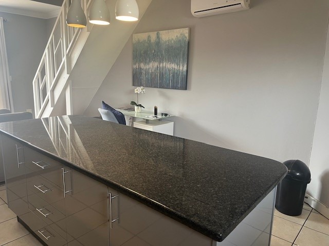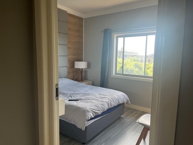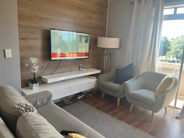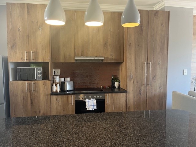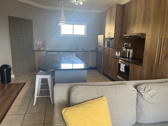 Discover modern coastal living in this stylish 73 sqm apartment located in the vibrant Umhlanga Ridge, Umhlanga. This prime South African location offers the allure of a coastal beach lifestyle, making it an ideal holiday home or permanent residence. Enjoy scenic views and convenient access to local amenities. The apartment boasts a contemporary open-plan design, seamlessly connecting the living and kitchen areas. The kitchen is a highlight, featuring sleek wood-look cabinetry, dark granite-like countertops, and an integrated oven and hob. A distinctive distressed copper-colored brick backsplash adds character, complemented by modern pendant lighting. The living space is brightened by natural light streaming through large sliding doors, leading to a private balcony perfect for relaxation and enjoying the green vistas. Comfort is assured with two well-appointed bedrooms and a modern bathroom. The living areas feature elegant wood laminate flooring, enhancing the sophisticated aesthetic. Air conditioning ensures a comfortable environment year-round. Security is paramount, with the property benefiting from 24-hour security, CCTV surveillance, a dedicated security post, and an access gate with an intercom system. A single dedicated parking bay adds to the convenience. This residence offers a secure and sophisticated lifestyle in a sought-after coastal destination. Key Features: * 73 sqm Modern Apartment * 2 Bedrooms, 1 Bathroom * Open-Plan Living & Kitchen * Contemporary Kitchen with Integrated Appliances * Private Balcony with Scenic Views * Air Conditioning * 1 Parking Bay * 24-Hour Security, CCTV, Access Gate * Coastal Beach Lifestyle