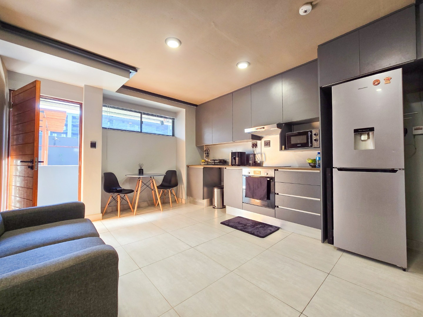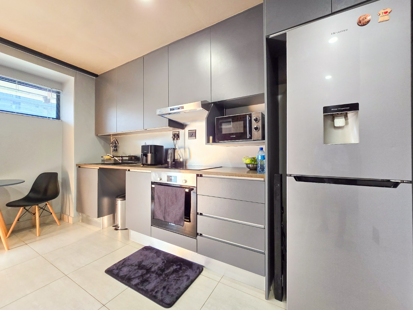 Inside, you are welcomed by a modern kitchen fitted with built-in cupboards, flowing seamlessly into a comfortable lounge area that opens onto a cosy balcony. Downstairs, the spacious main bedroom features a private en-suite bathroom, while the second bedroom is serviced by a separate bathroom.