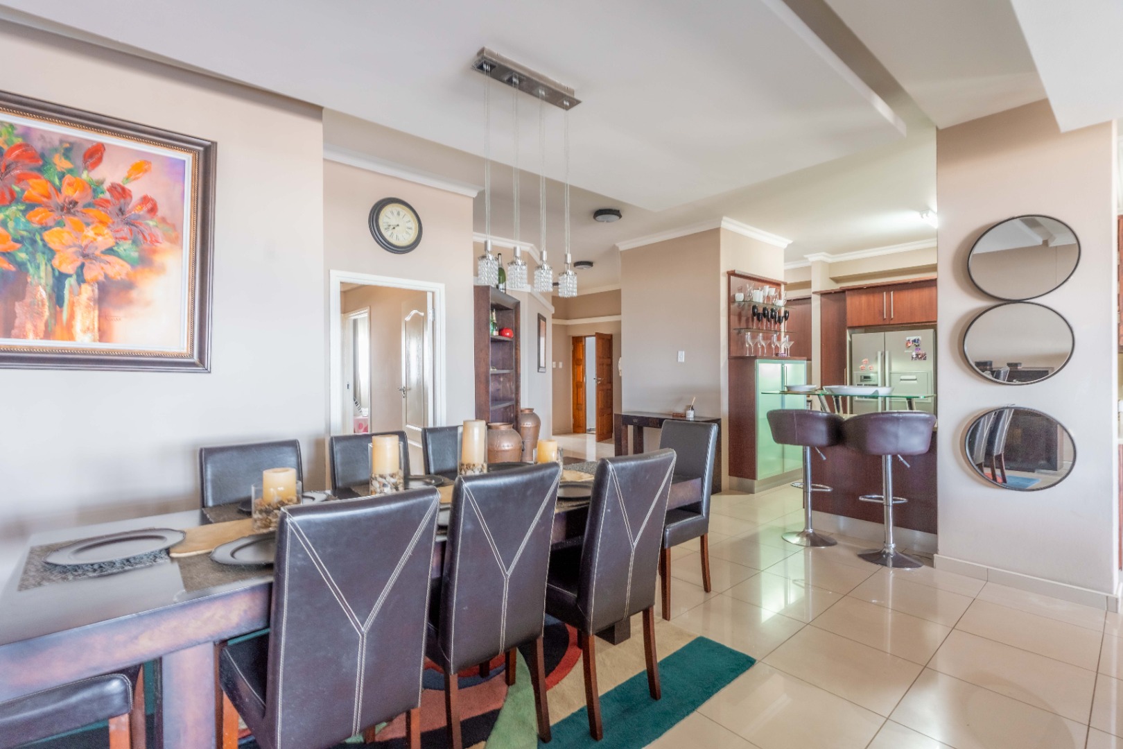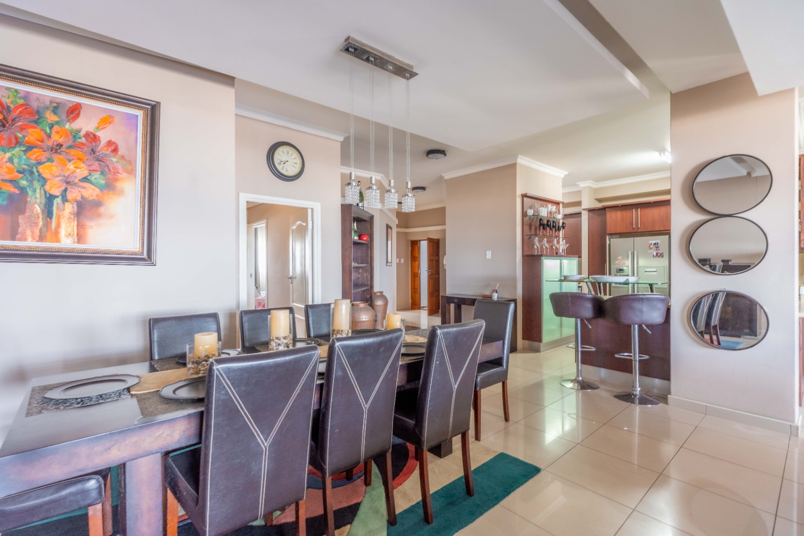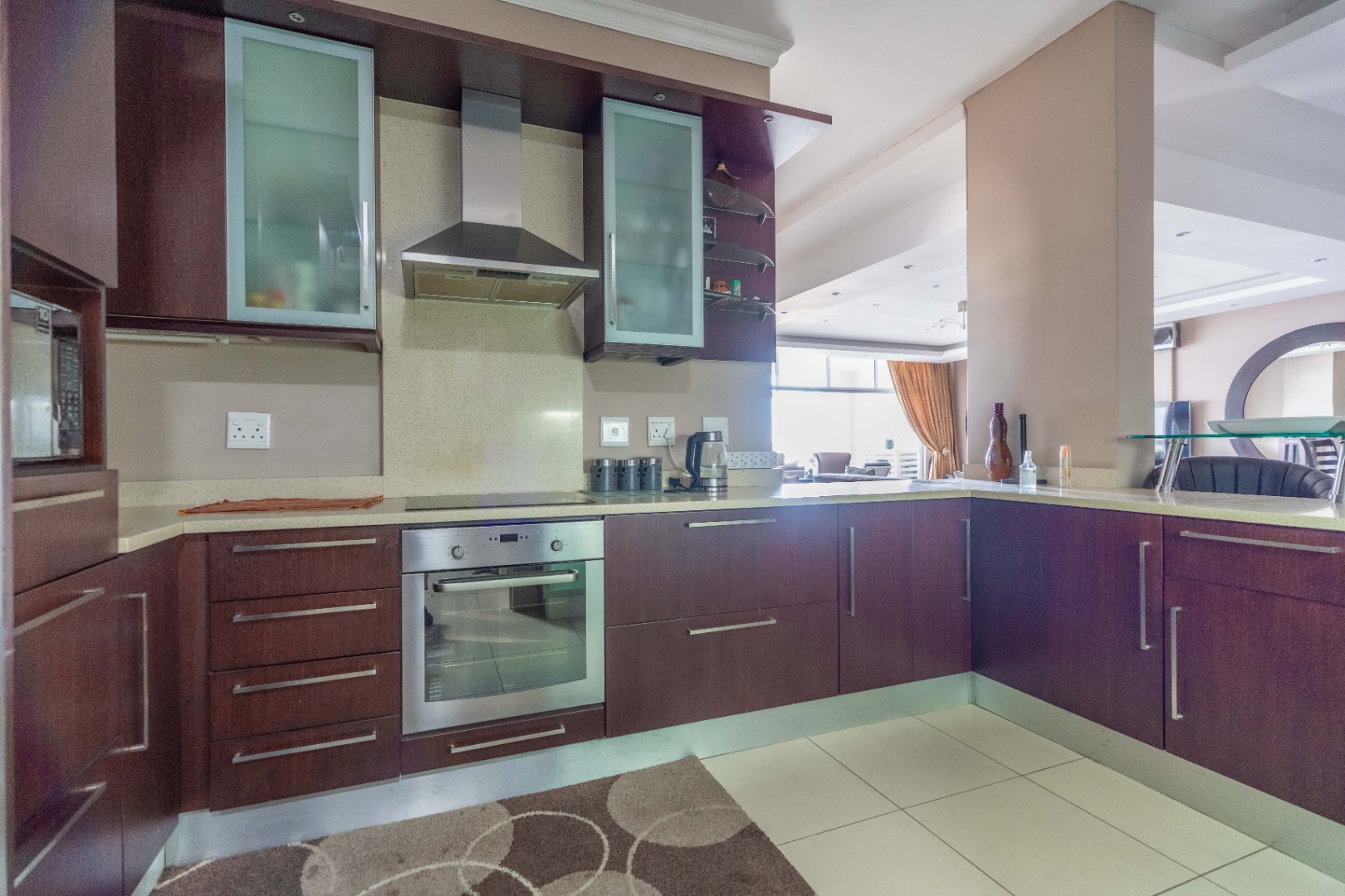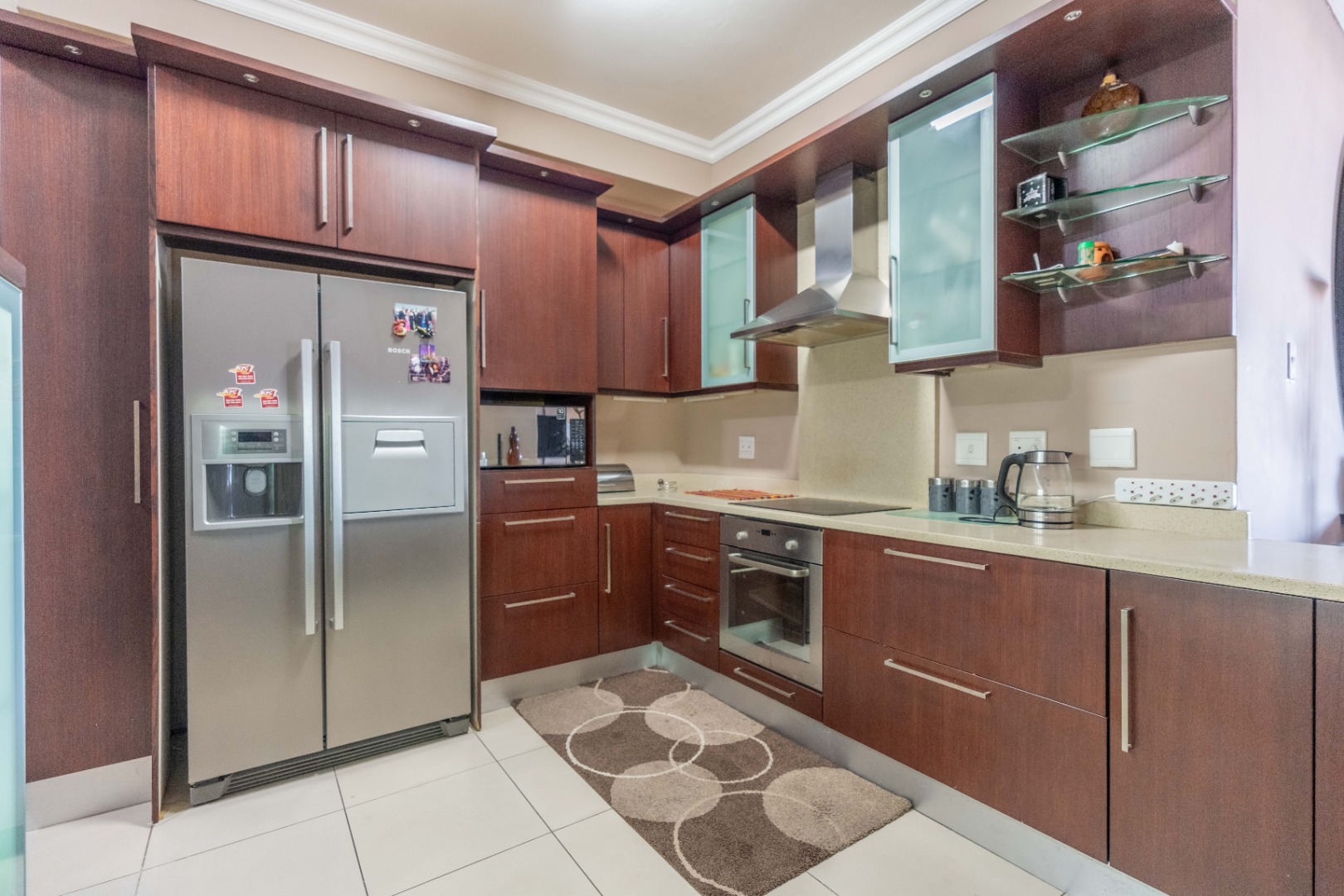 - Modern, fully tiled kitchen equipped with premium appliances and featuring a scullery for added convenience.