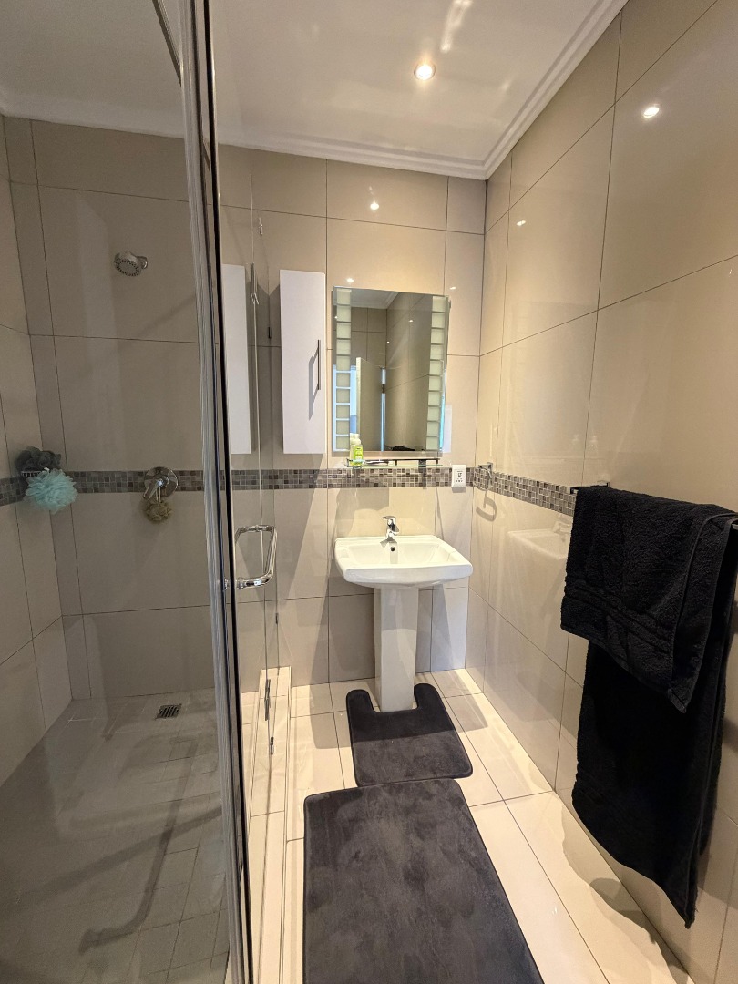 Twilight is one of the newer developments in the Umhlanga Ridge area. The complex offers secure upmarket living in the popular secure estates community. The fully tiled apartment comprises three bedrooms, three bathrooms, an open plan living area and kitchen. The open plan living area spans the length of the apartment and provides space for both lounge and dining suites and integrates the modern kitchen which is fitted with built in cupboards and granite tops. Sliding doors in the living area open onto the covered patio area. Built in cupboards are present in all of the bedrooms, the master bedroom opens onto its own ensuite bathroom, the second is a shared family bathroom, both complete with a modern fittings and san-ware. The apartment has been enhanced with additional features, unique to this unit. The huge wrap-around balcony is a beautiful space that compliments this spacious, airy apartment. Two secure basement parking bays are available with the apartment. The development is secure, modern and upmarket, within close proximity of all amenities.