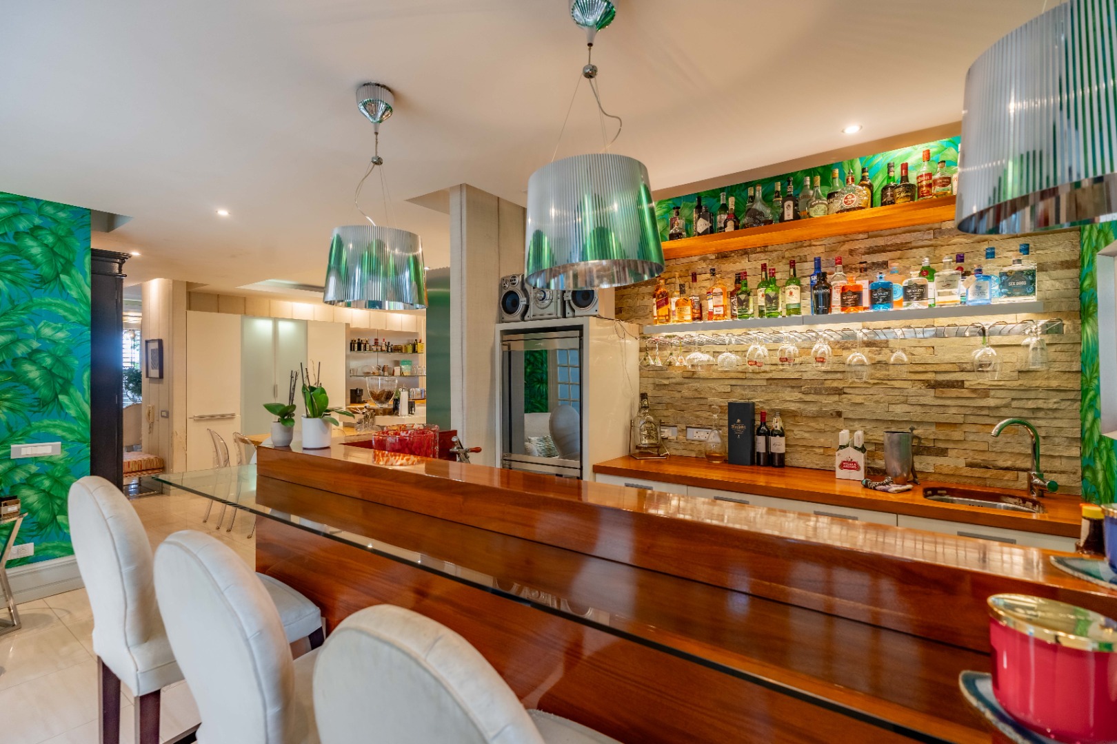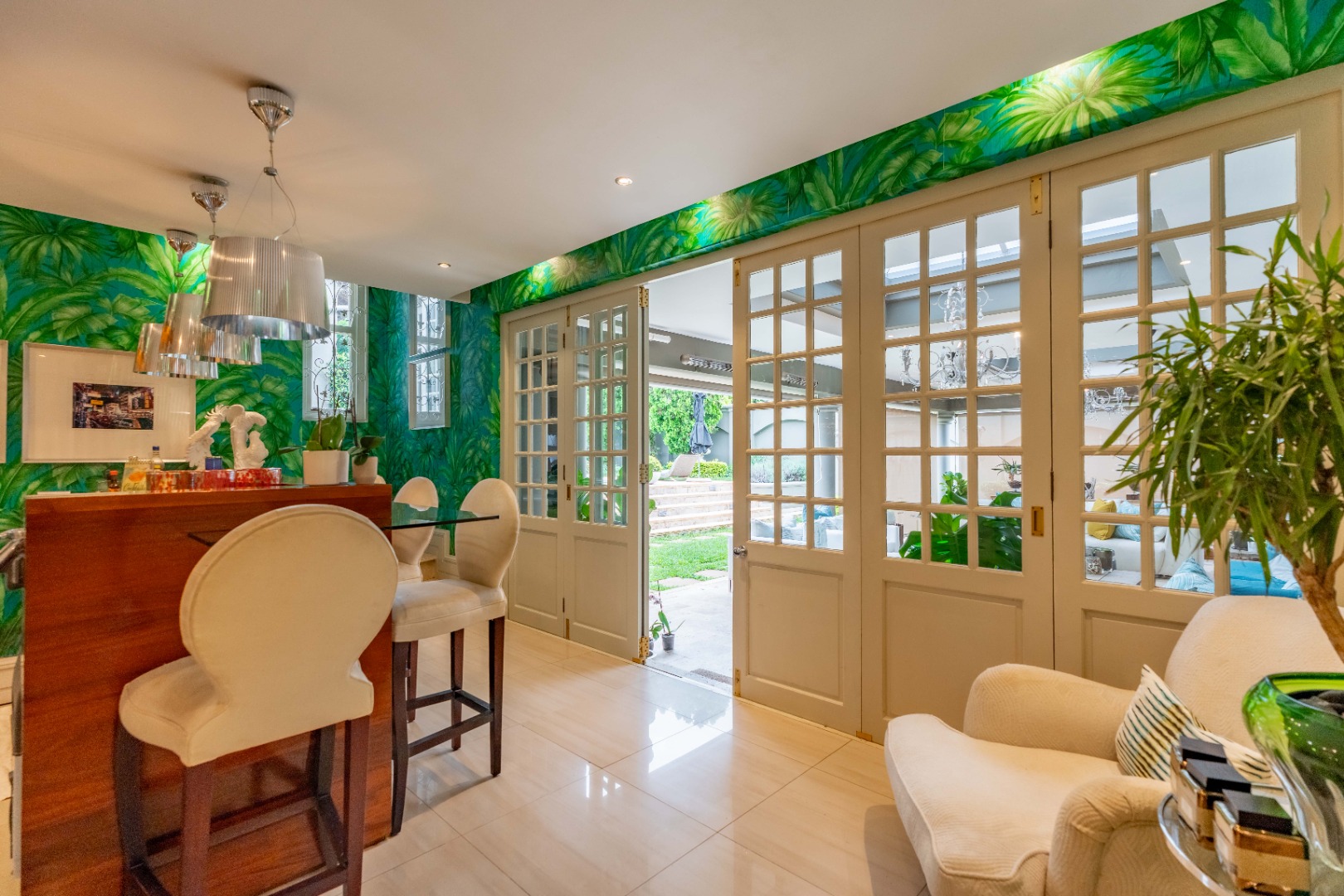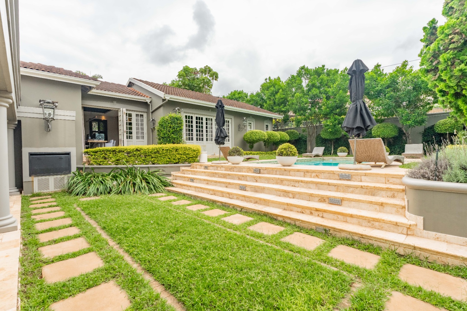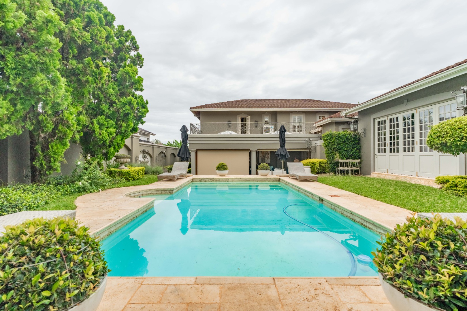 The ultimate in luxurious and sophisticated living, and boasting several elegant reception rooms of grand proportions, all flowing seamlessly to the expansive, covered verandah, that overlooks the exquisite, manicured garden with sparkling pool and water features.