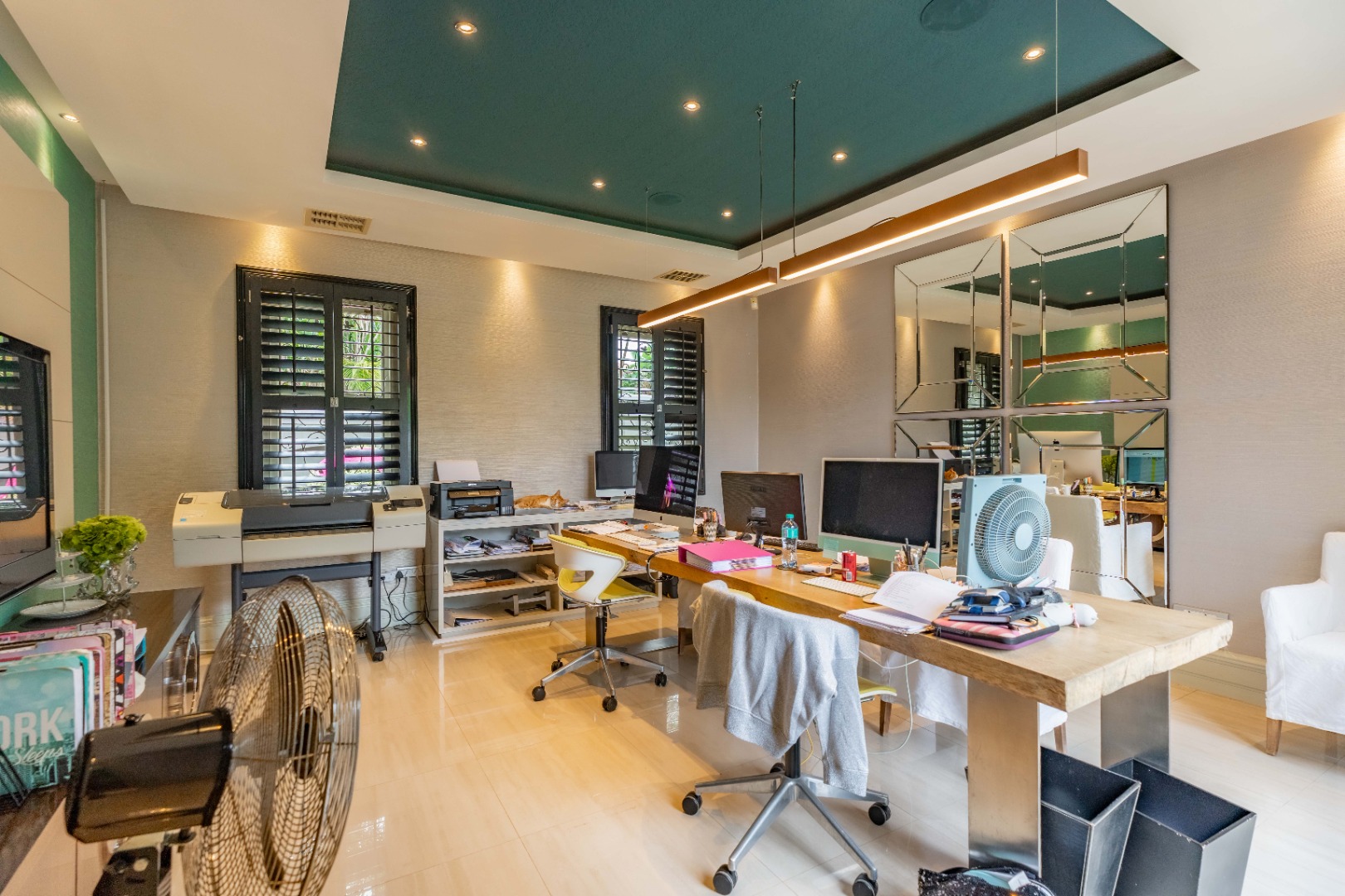 The garage accommodates 3 cars, ample parking for about 10 cars. Staff accommodation and state of the art security. Features too many to mention.