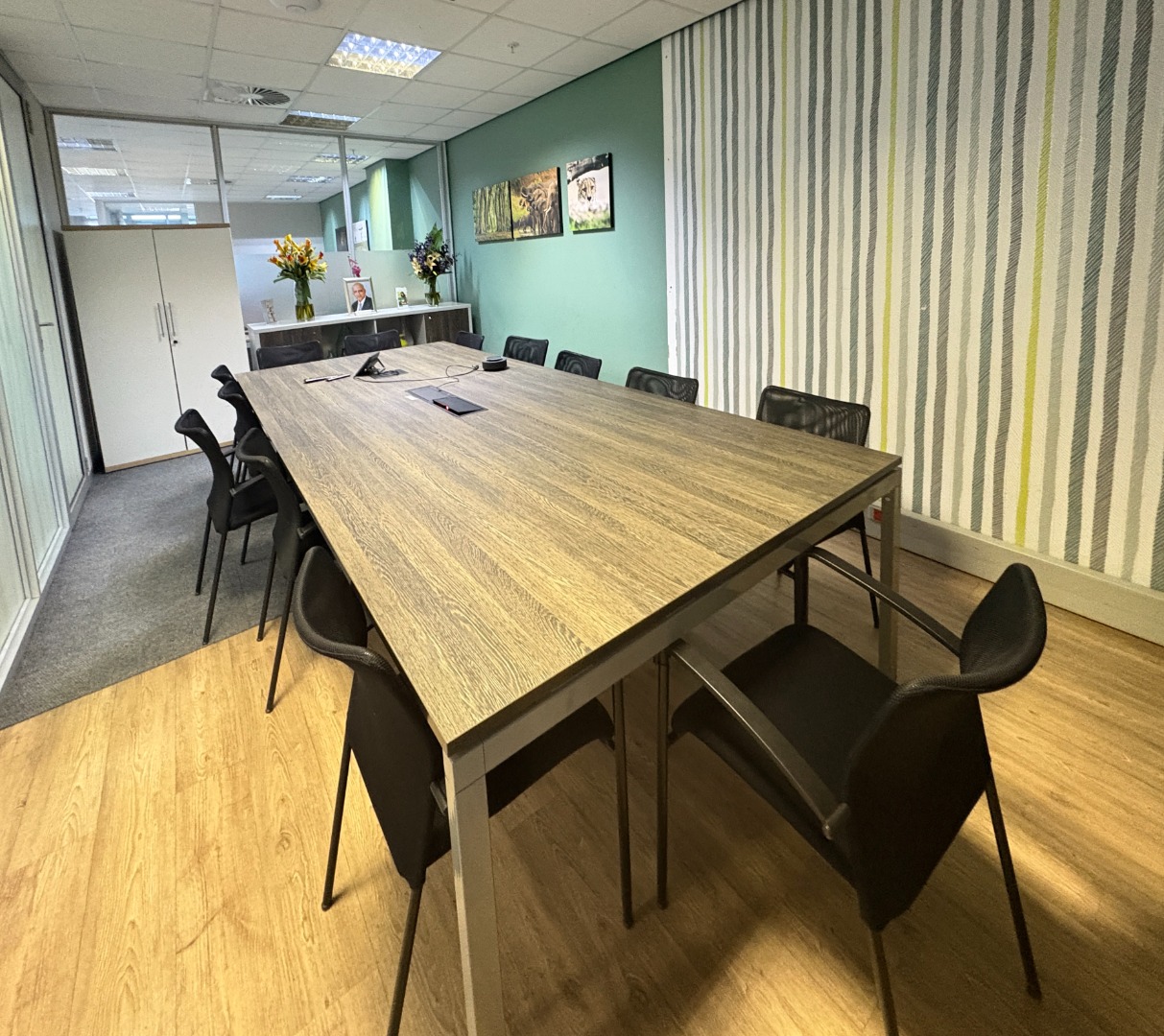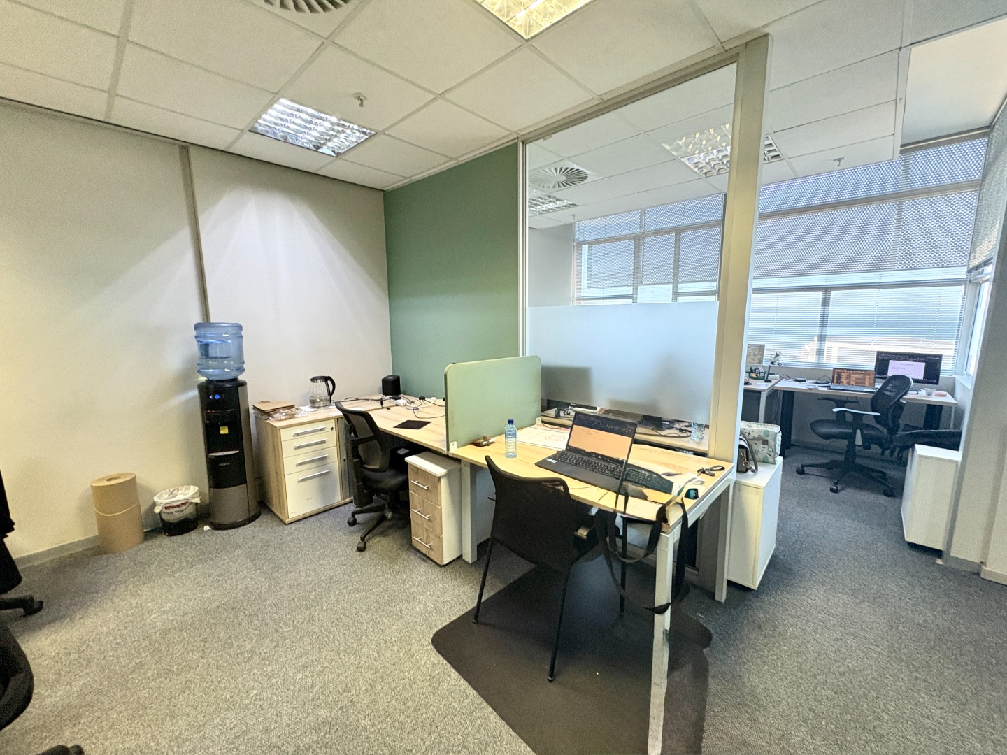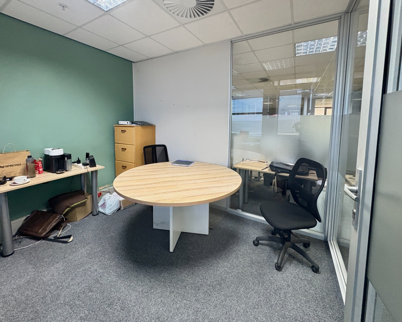 The office is thoughtfully configured to accommodate a variety of business needs and includes a welcoming reception area, a private office, a well-appointed boardroom, and a spacious open-plan work area. A kitchenette and private restroom facilities further enhance convenience, ensuring a comfortable and self-contained workspace for both staff and clients.