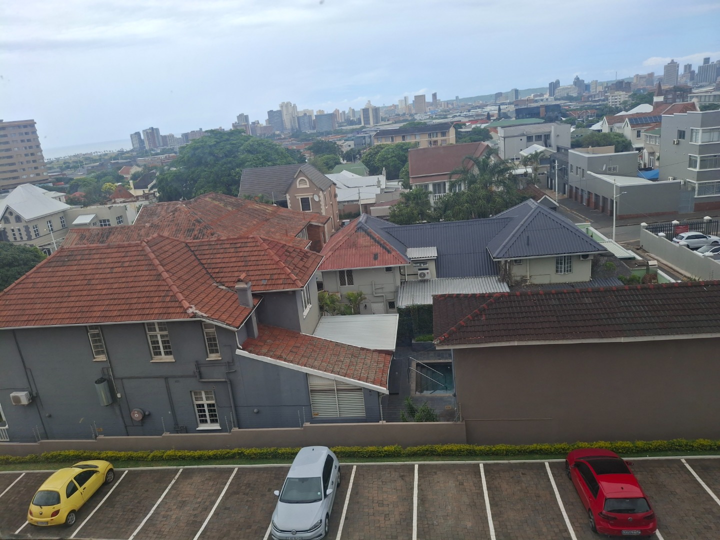 Bathroom has a bath, hand shower and toilet. Bedroom has a fan and enjoys the beautiful views Durban has to offer.