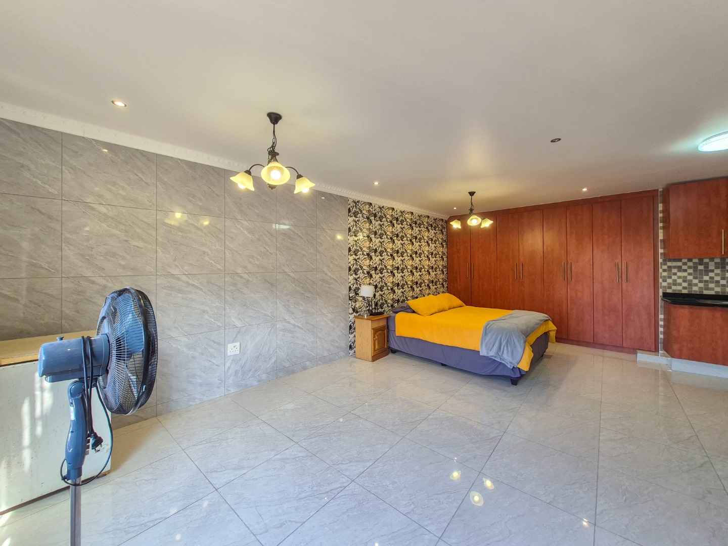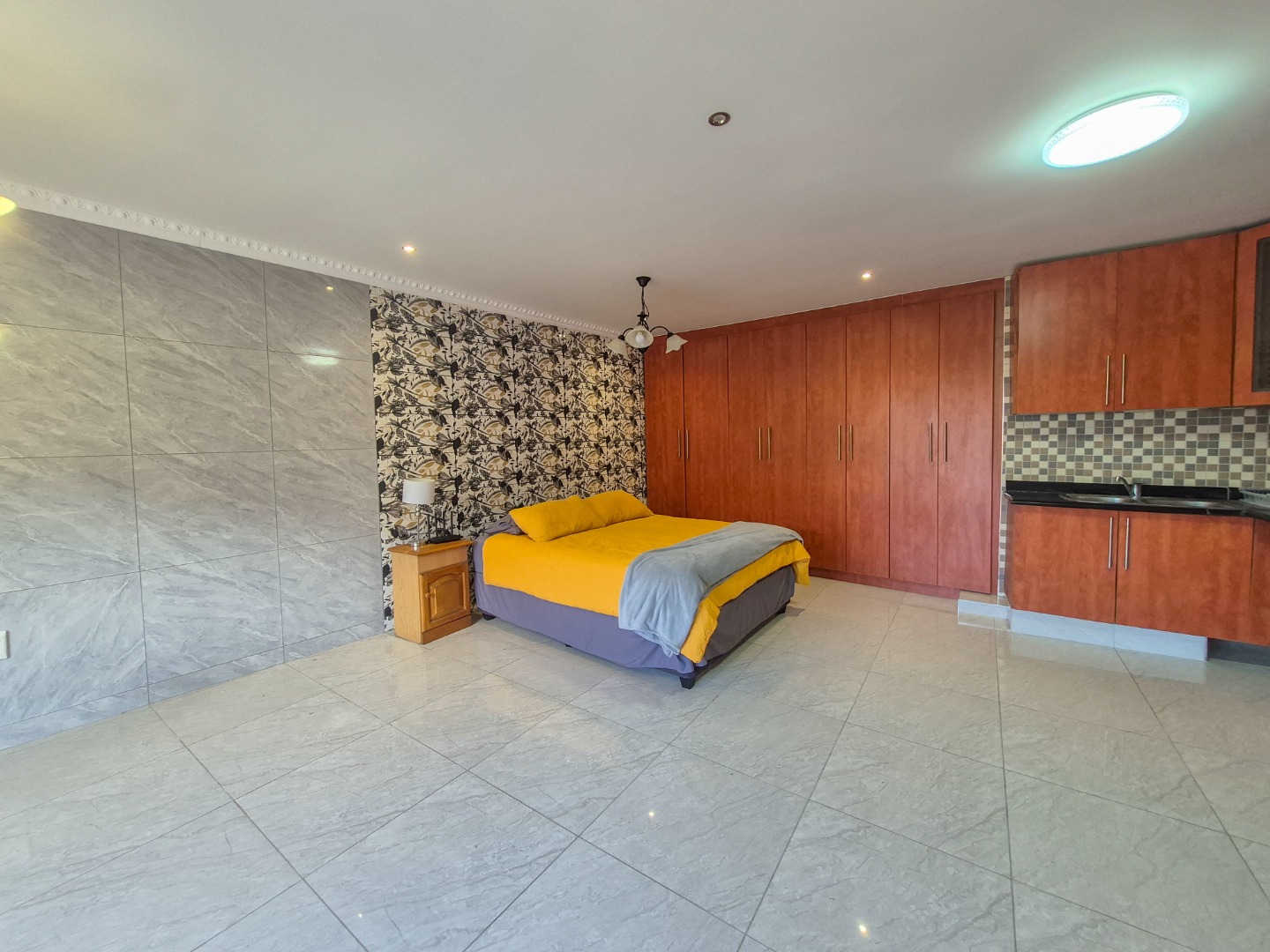 This newly renovated flatlet is ideally suited to a single professional occupant. The open-plan lounge, bedroom, and kitchen area is fully tiled, offering a clean and low-maintenance living space. The kitchen is well-appointed with ample cupboard space, and includes an oven, hob, and extractor fan. The bathroom is fitted with a shower, basin, and toilet. Built-in cupboards in the bedroom provide substantial storage. The unit is accessed via one flight of stairs from the undercover parking area. One undercover parking bay is included.