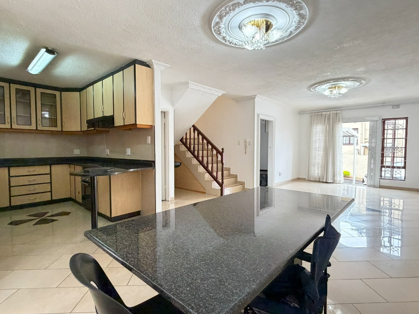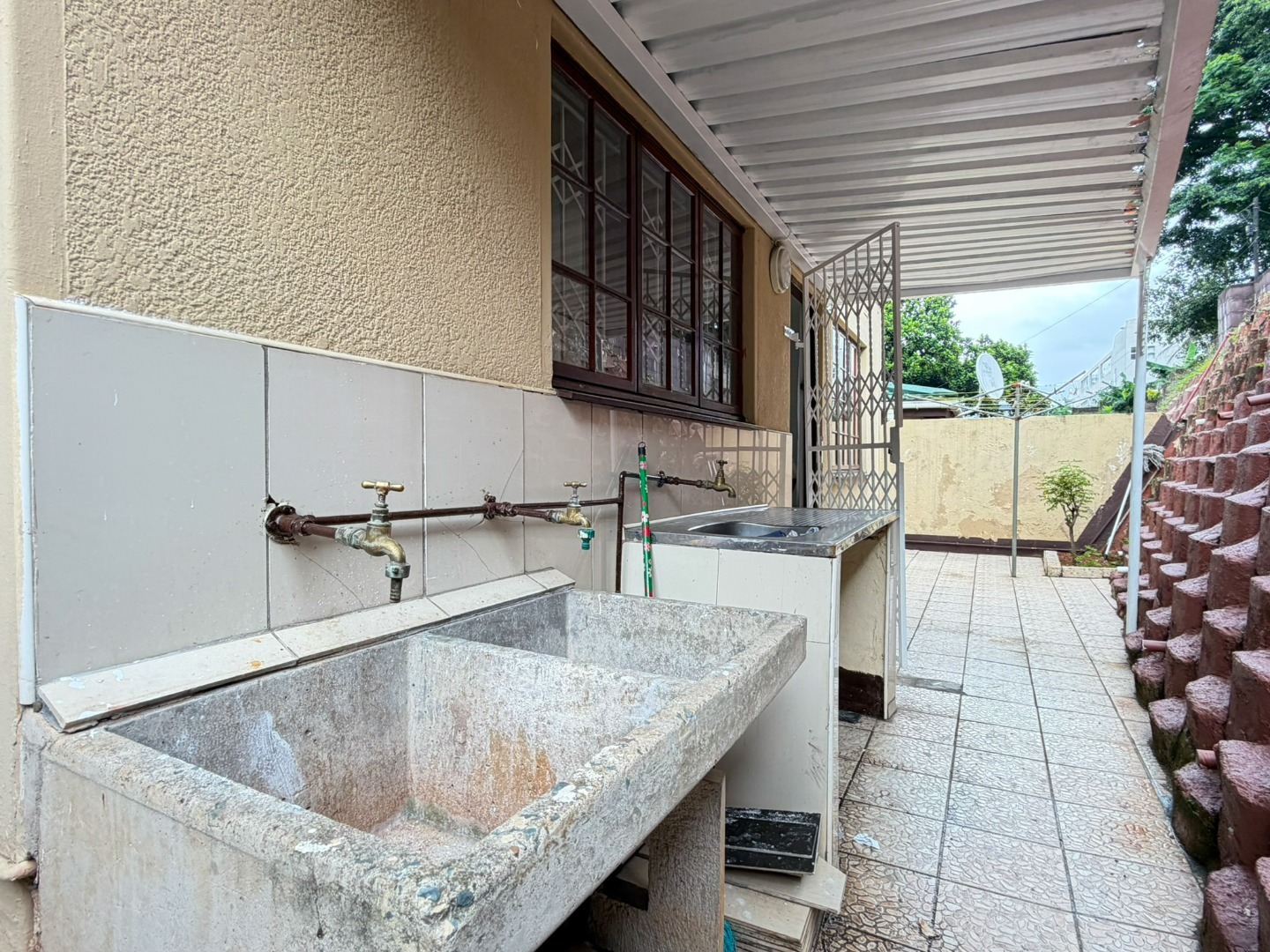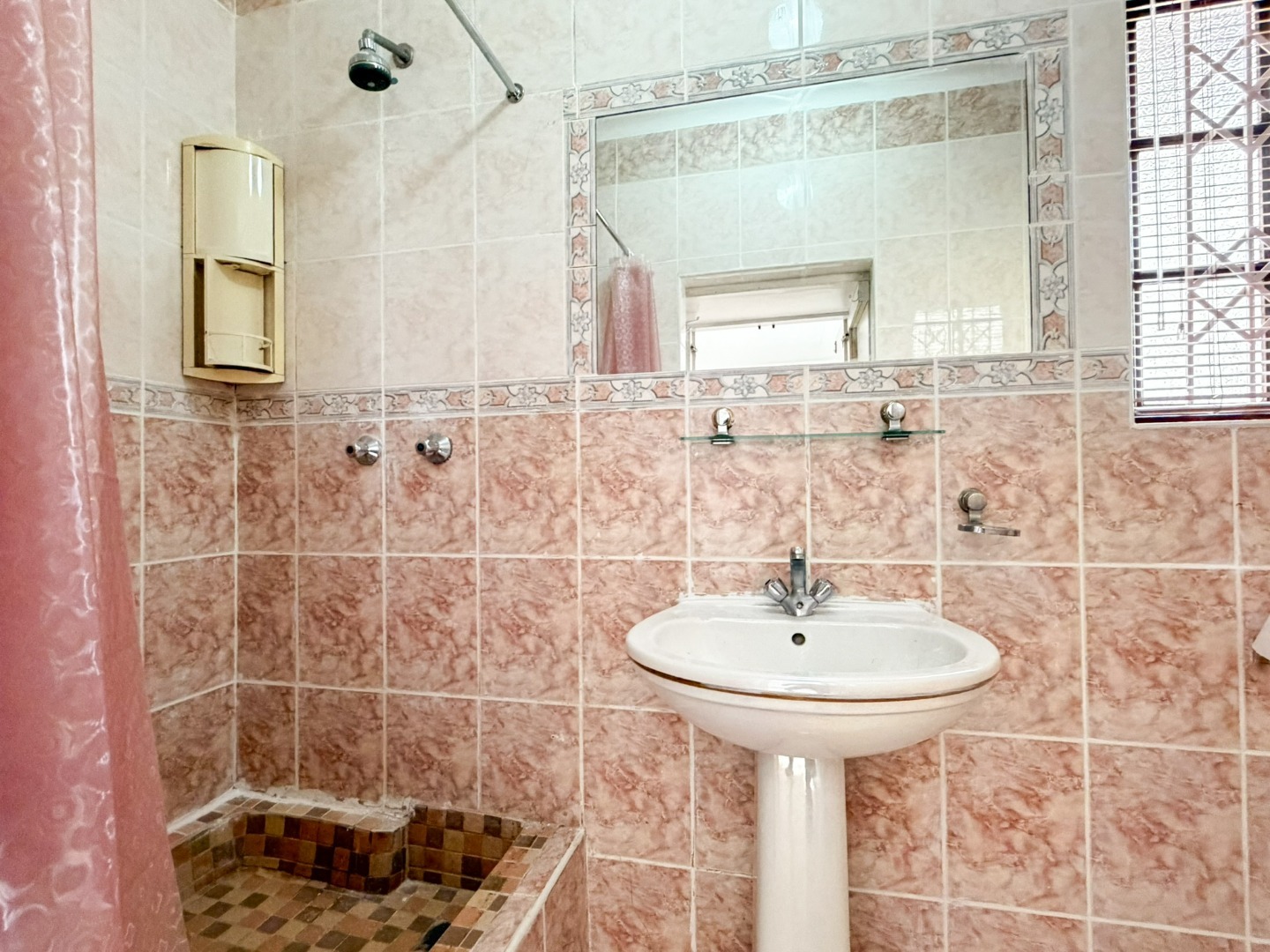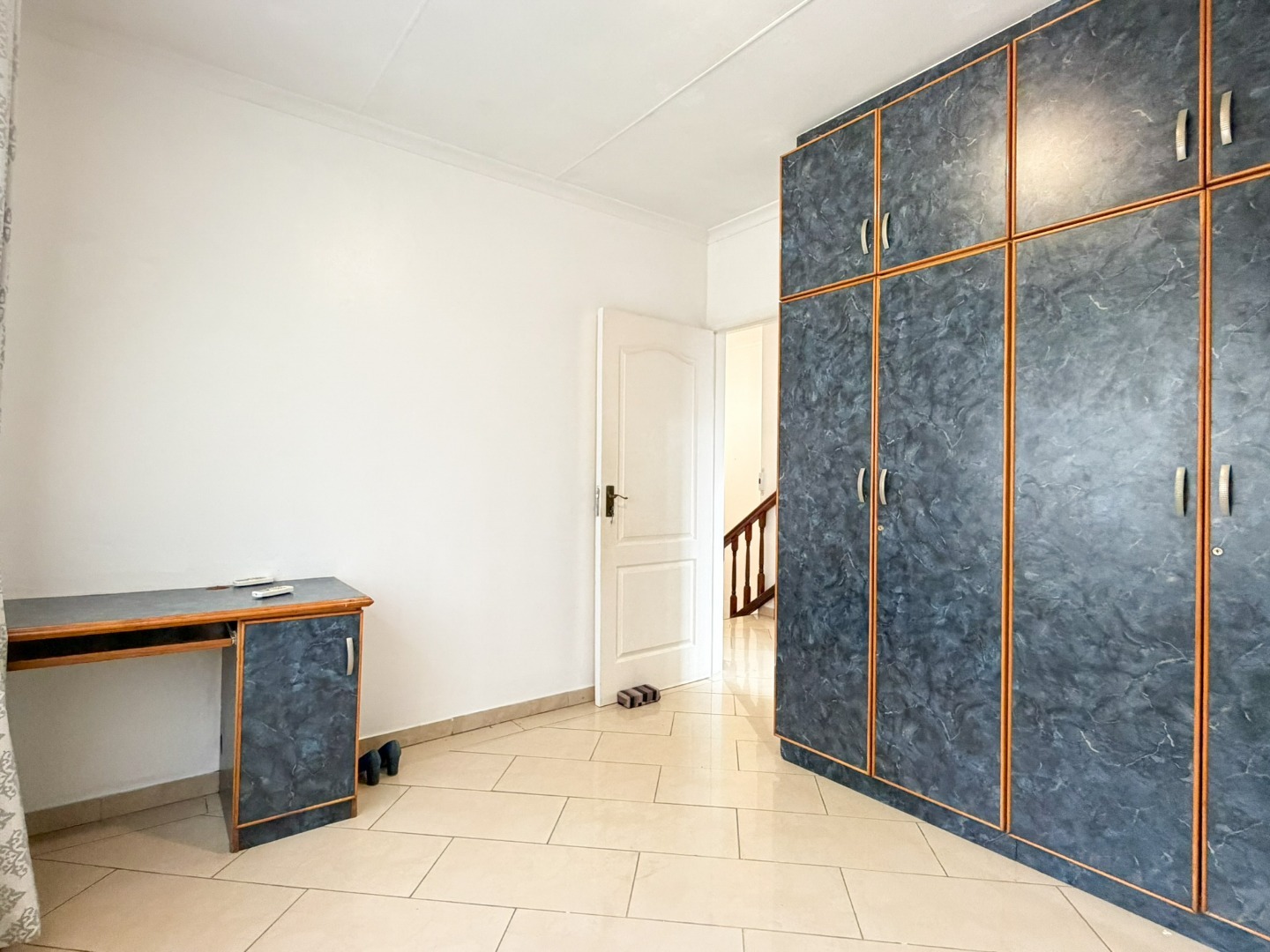 Upstairs, the home offers three well-sized bedrooms, all equipped with built-in cupboards and air conditioning. The main bedroom boasts its own en-suite bathroom with a shower, toilet, and basin, and opens onto a private balcony. A general bathroom upstairs includes a shower, toilet, and basin. The property is fully tiled throughout and includes two dedicated parking spaces. Additional features include an outdoor sink area, plumbed for a washing machine, making laundry tasks easy and practical. Remote controlled access gates. Situated on Julia Road and conveniently close to all amenities, this property offers comfort, space, and convenience.