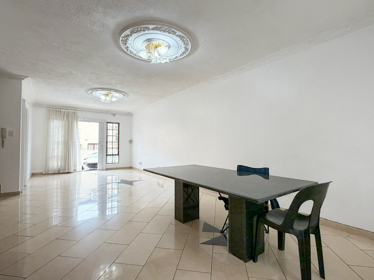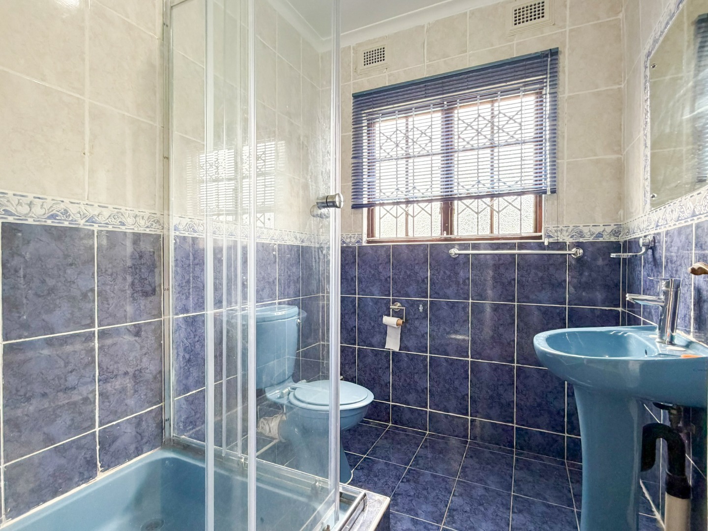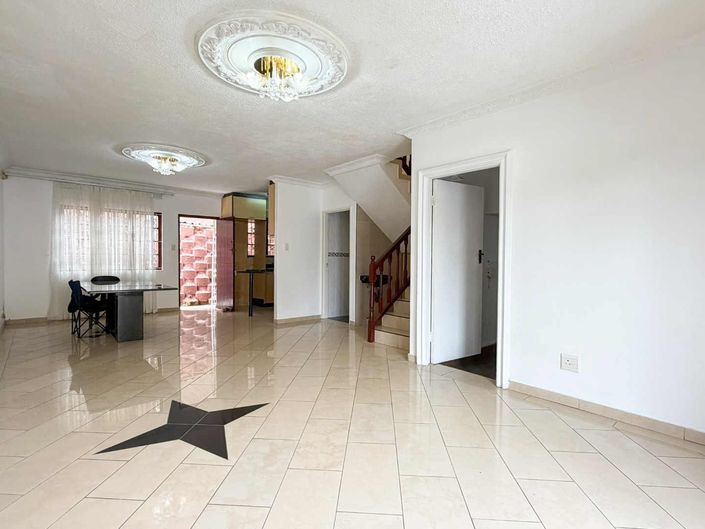 Upstairs, the home offers three well-sized bedrooms, all equipped with built-in cupboards and air conditioning. The main bedroom boasts its own en-suite bathroom with a shower, toilet, and basin, and opens onto a private balcony. A general bathroom upstairs includes a shower, toilet, and basin. The property is fully tiled throughout and includes two dedicated parking spaces. Additional features include an outdoor sink area, plumbed for a washing machine, making laundry tasks easy and practical. Remote controlled access gates. Situated on Julia Road and conveniently close to all amenities, this property offers comfort, space, and convenience.