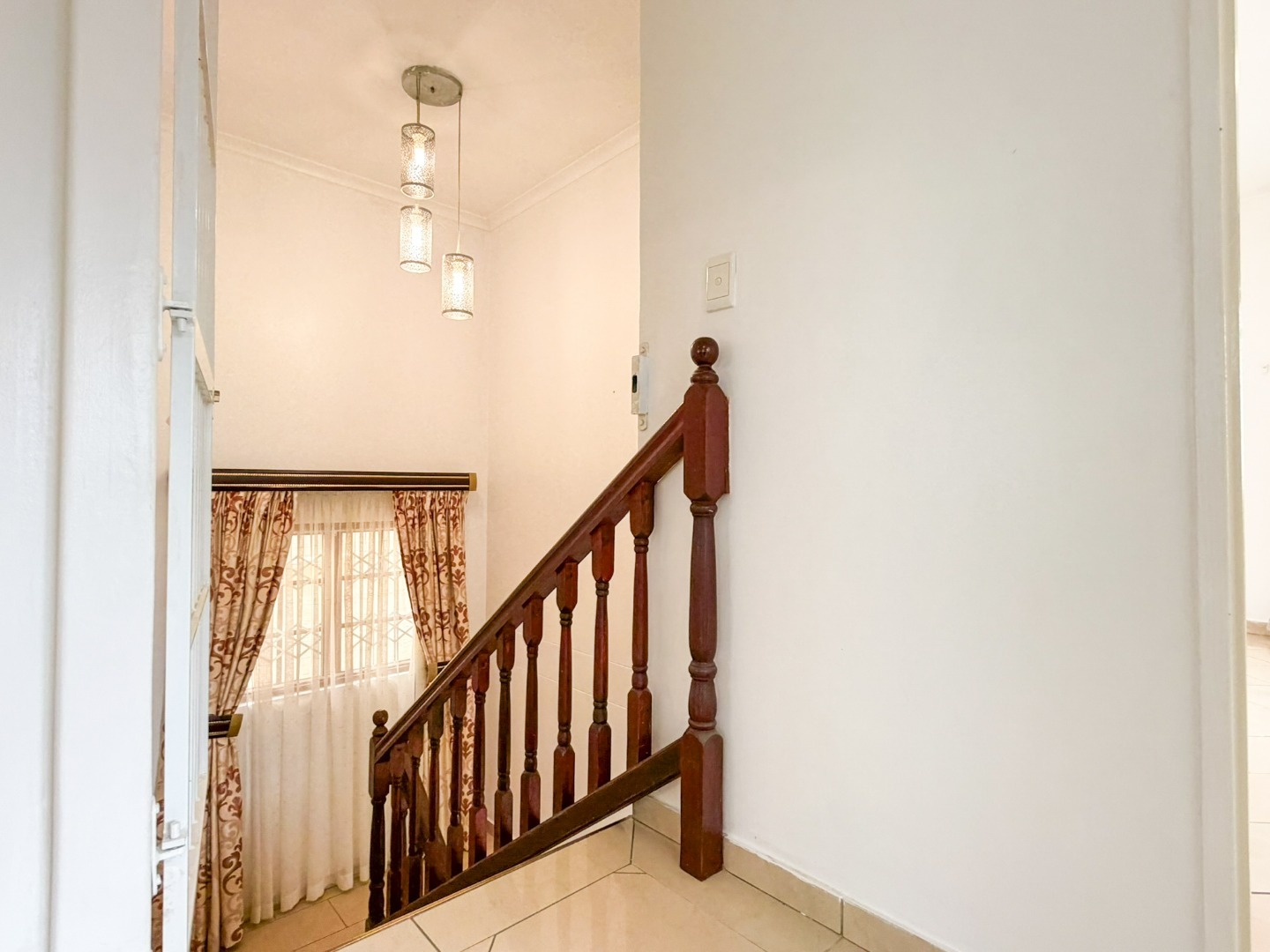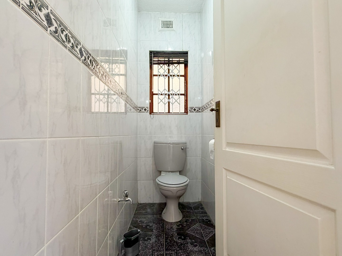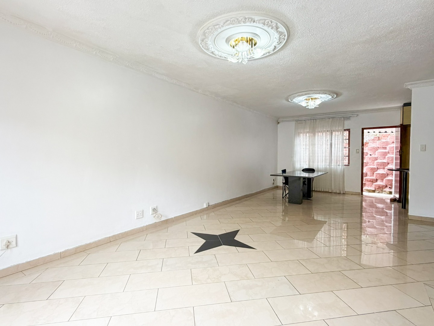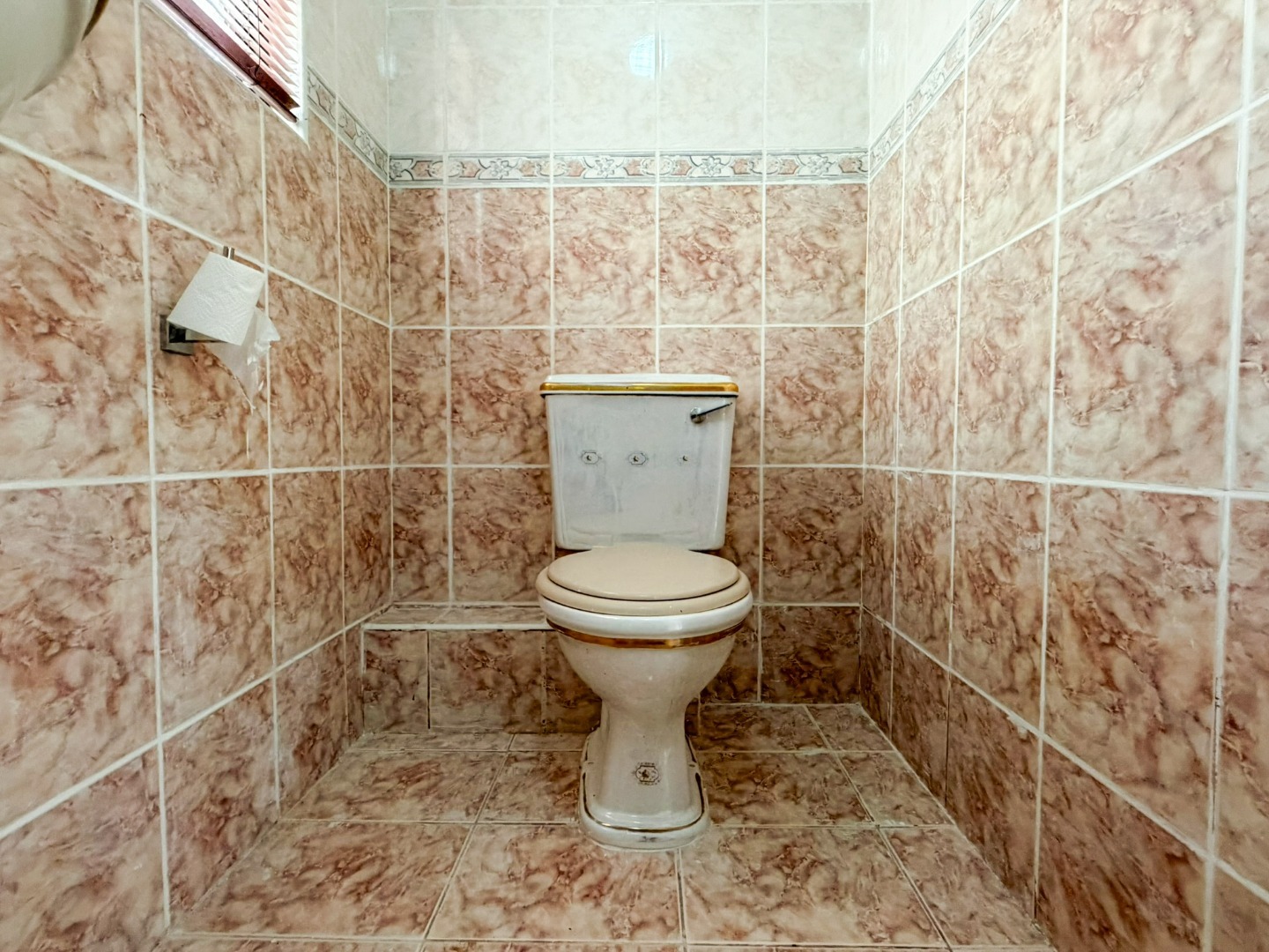 Upstairs, the home offers three well-sized bedrooms, all equipped with built-in cupboards and air conditioning. The main bedroom boasts its own en-suite bathroom with a shower, toilet, and basin, and opens onto a private balcony. A general bathroom upstairs includes a shower, toilet, and basin. The property is fully tiled throughout and includes two dedicated parking spaces. Additional features include an outdoor sink area, plumbed for a washing machine, making laundry tasks easy and practical. Remote controlled access gates. Situated on Julia Road and conveniently close to all amenities, this property offers comfort, space, and convenience.