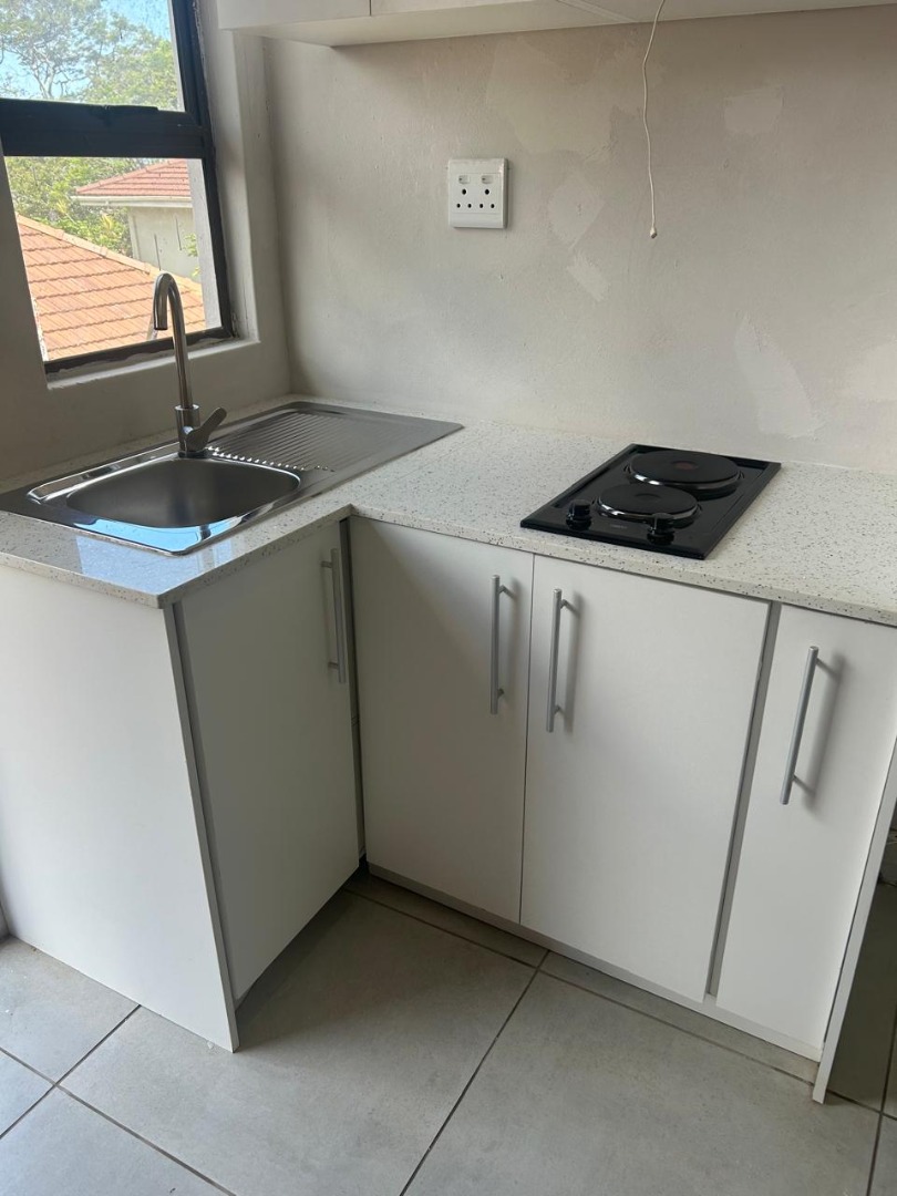 Tucked away at the rear of a shared property on Elgie Road in Umbilo, this newly built bachelor flat offers private, modern living within walking distance of UKZN Howard College. The open-plan studio includes water and electricity in the rental and comes with the added convenience of a secure garage, making it an ideal lock-up-and-go option for a student or single professional.