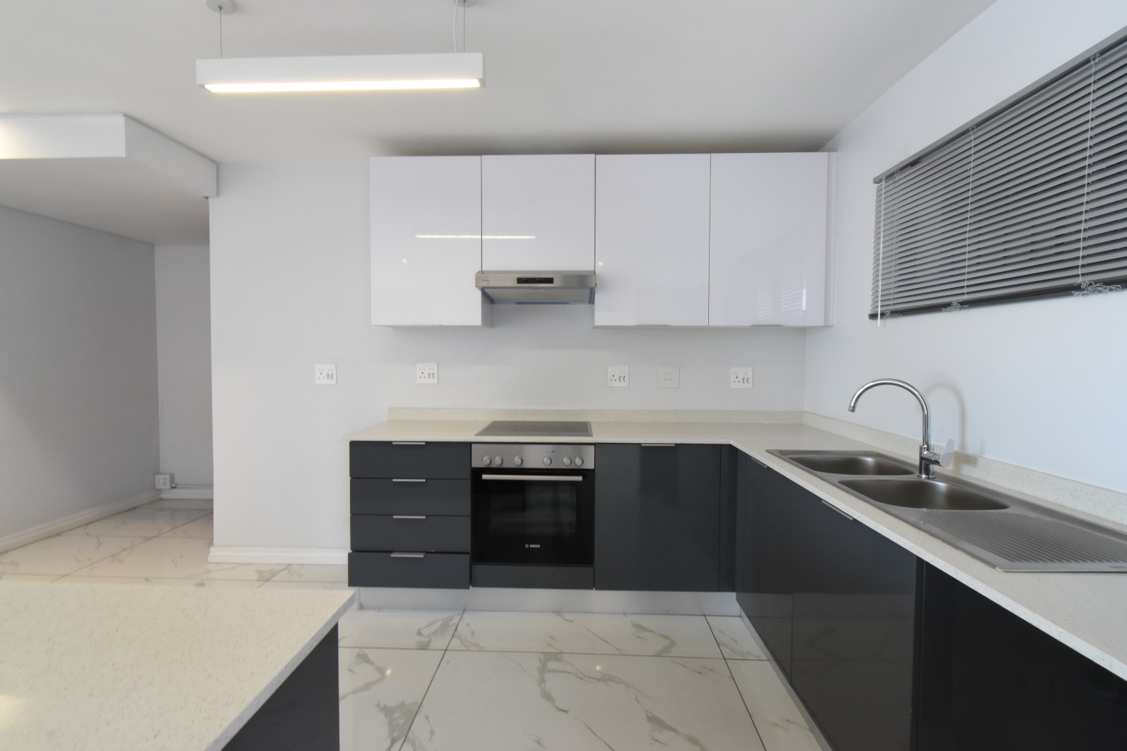 Beautifully renovated open plan kitchen with granite countertops.