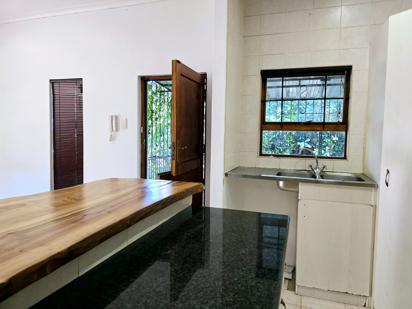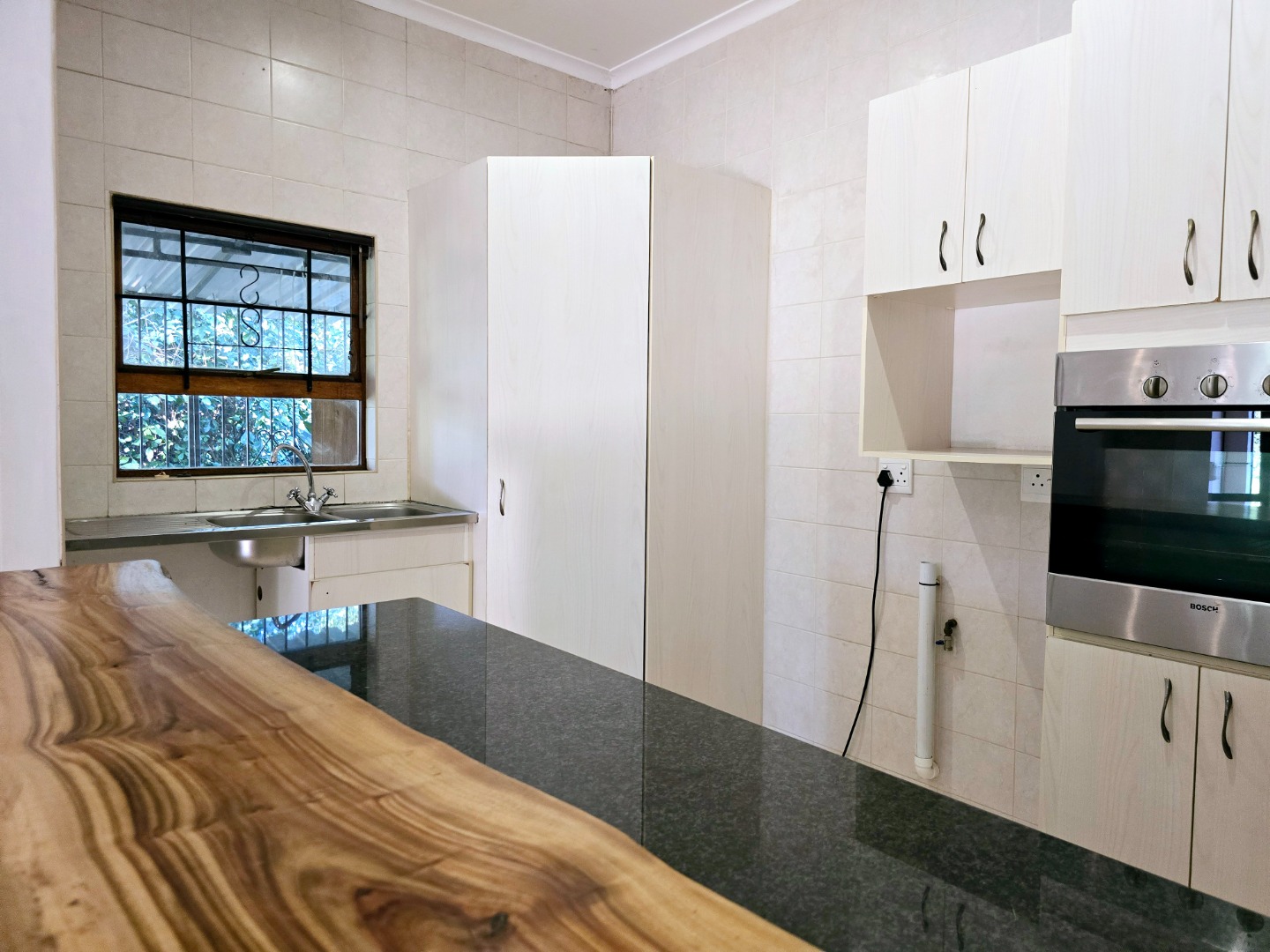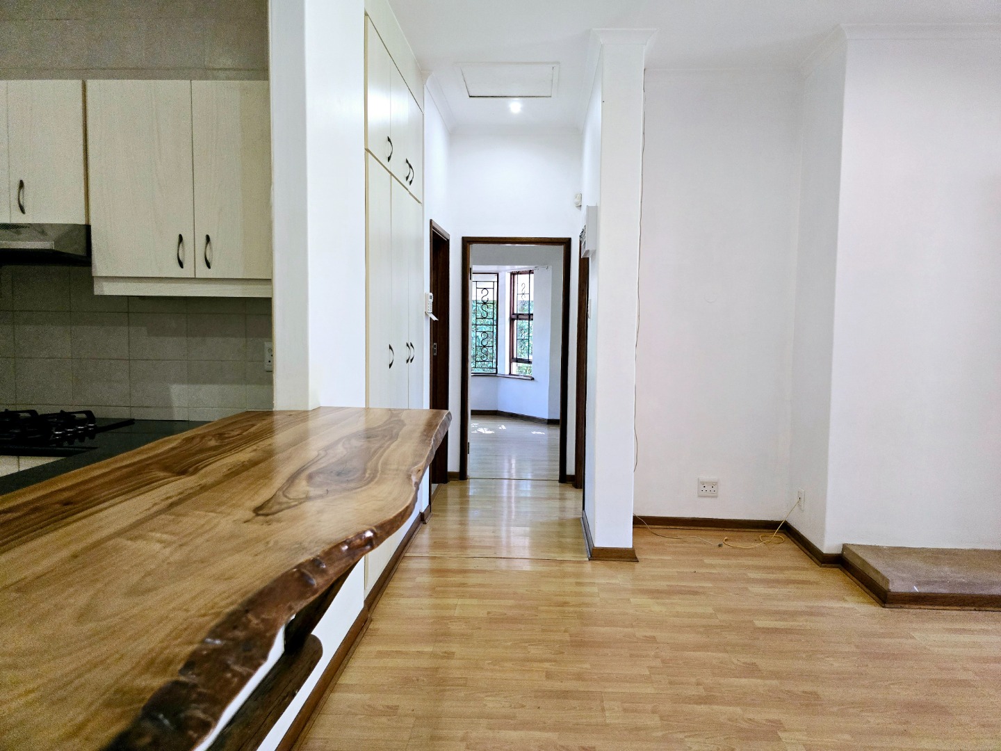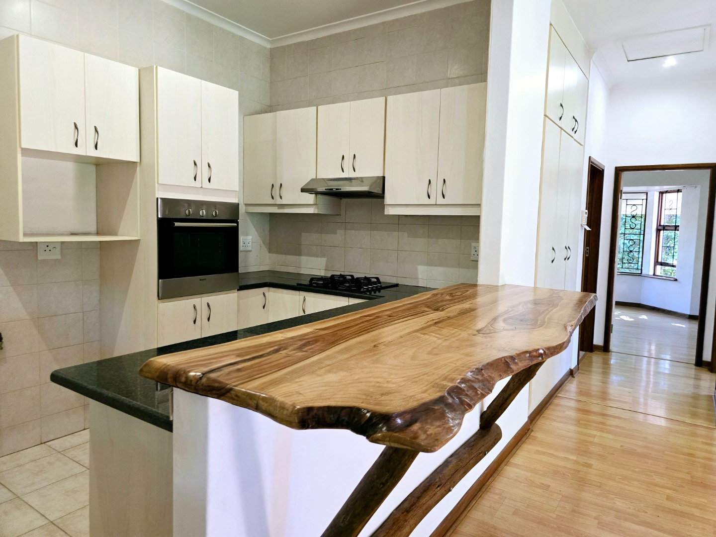 The kitchen features a built-in oven, and a gas hob and Granite countertops – plus, there's a unique wooden breakfast area that adds a touch of character perfect for casual dining or a morning coffee. The large bay window in the living area lets in loads of natural light, creating a welcoming atmosphere.
