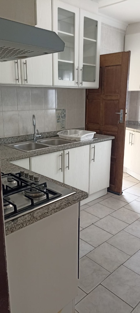 2 Bedrooms with built-in cupboards. The bathroom has a shower, basin and toilet. The lounge leads onto a patio and garden which is maintained by the landlord.
