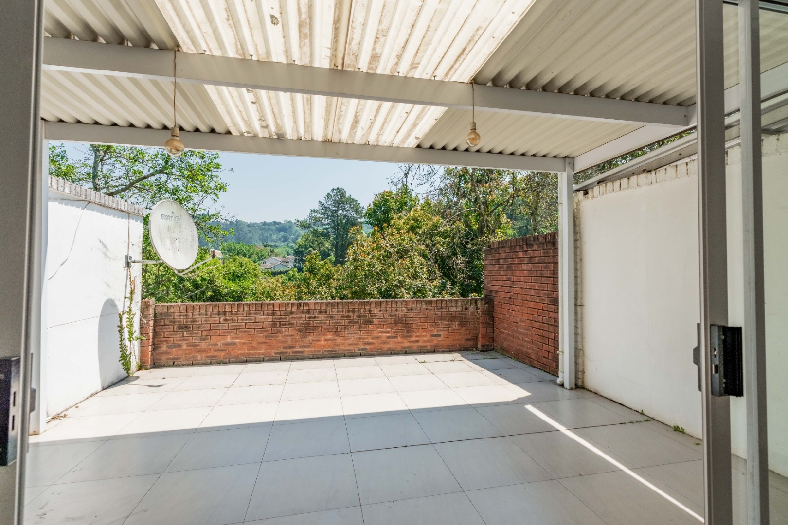 Light and bright duplex with modern finishes in the heart of Hillcrest. This spacious unit is neat and clean and ready for your furnishings. Offering a magnificent well fitted kitchen with space for 2 wet appliances open via breakfast nook to the open plan living space with good sized covered patio. Upstairs you have 2 good sized bedrooms with aircon in the main bedroom and a full bathroom to share between the bedrooms. Guest loo on the lower level. This unit comes with a lock up garage and a single open parking bay. Visitors parking in the complex. Regret no pets.