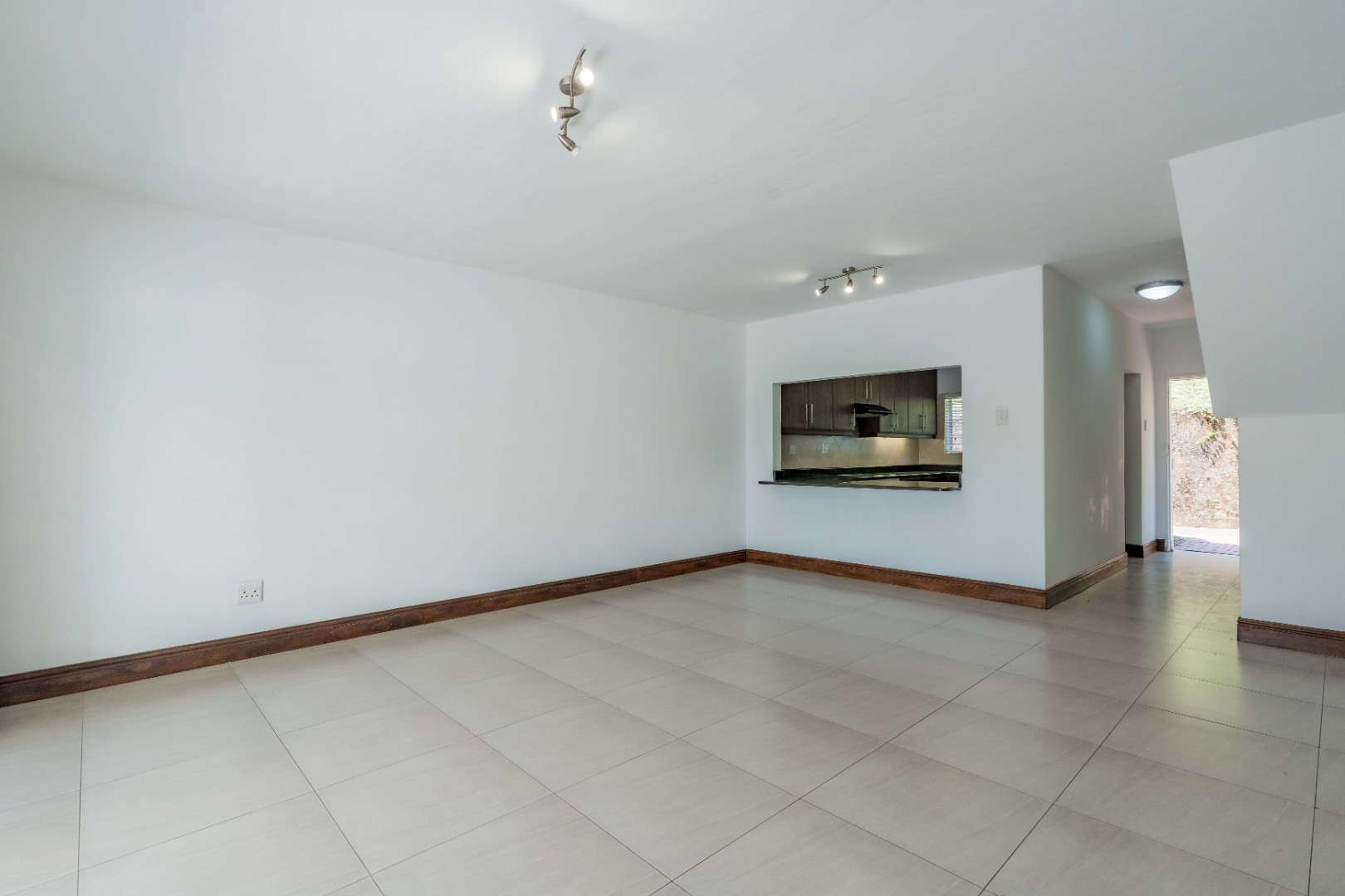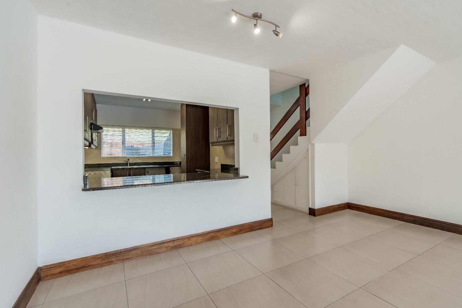 Light and bright duplex with modern finishes in the heart of Hillcrest. This spacious unit is neat and clean and ready for your furnishings. Offering a magnificent well fitted kitchen with space for 2 wet appliances open via breakfast nook to the open plan living space with good sized covered patio. Upstairs you have 2 good sized bedrooms with aircon in the main bedroom and a full bathroom to share between the bedrooms. Guest loo on the lower level. This unit comes with a lock up garage and a single open parking bay. Visitors parking in the complex. Regret no pets.