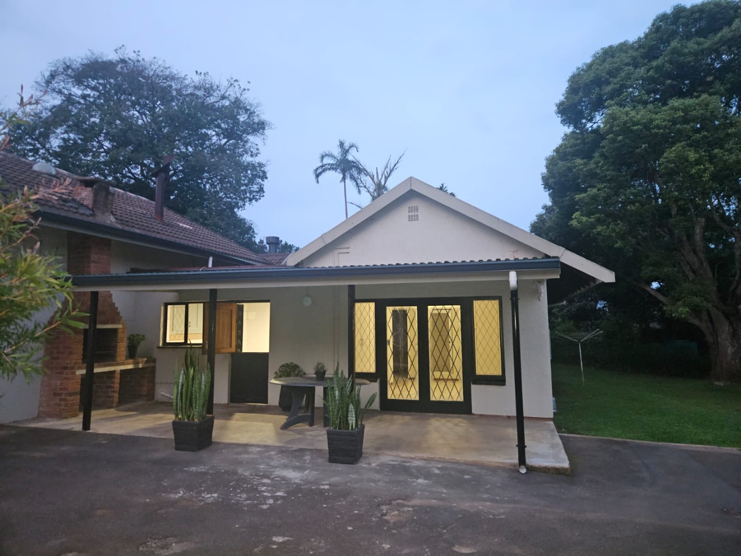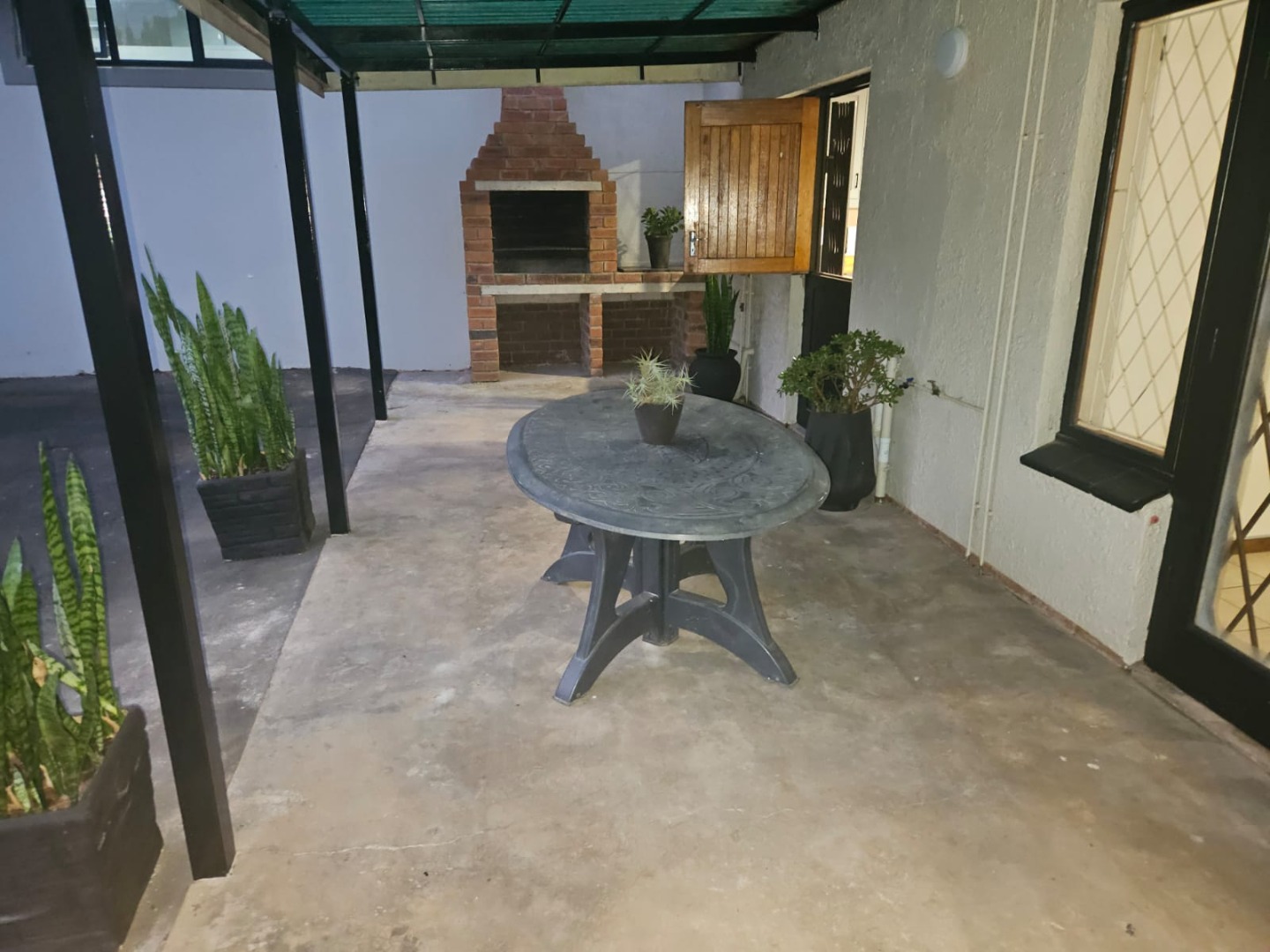 The entertainment patio in the front has a built-in braai situated conveniently just outside the kitchen door.