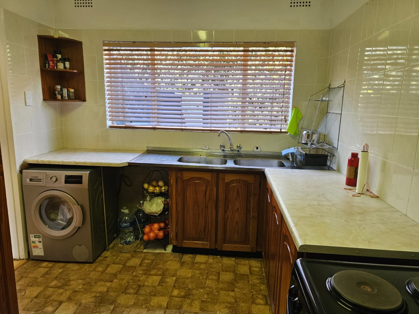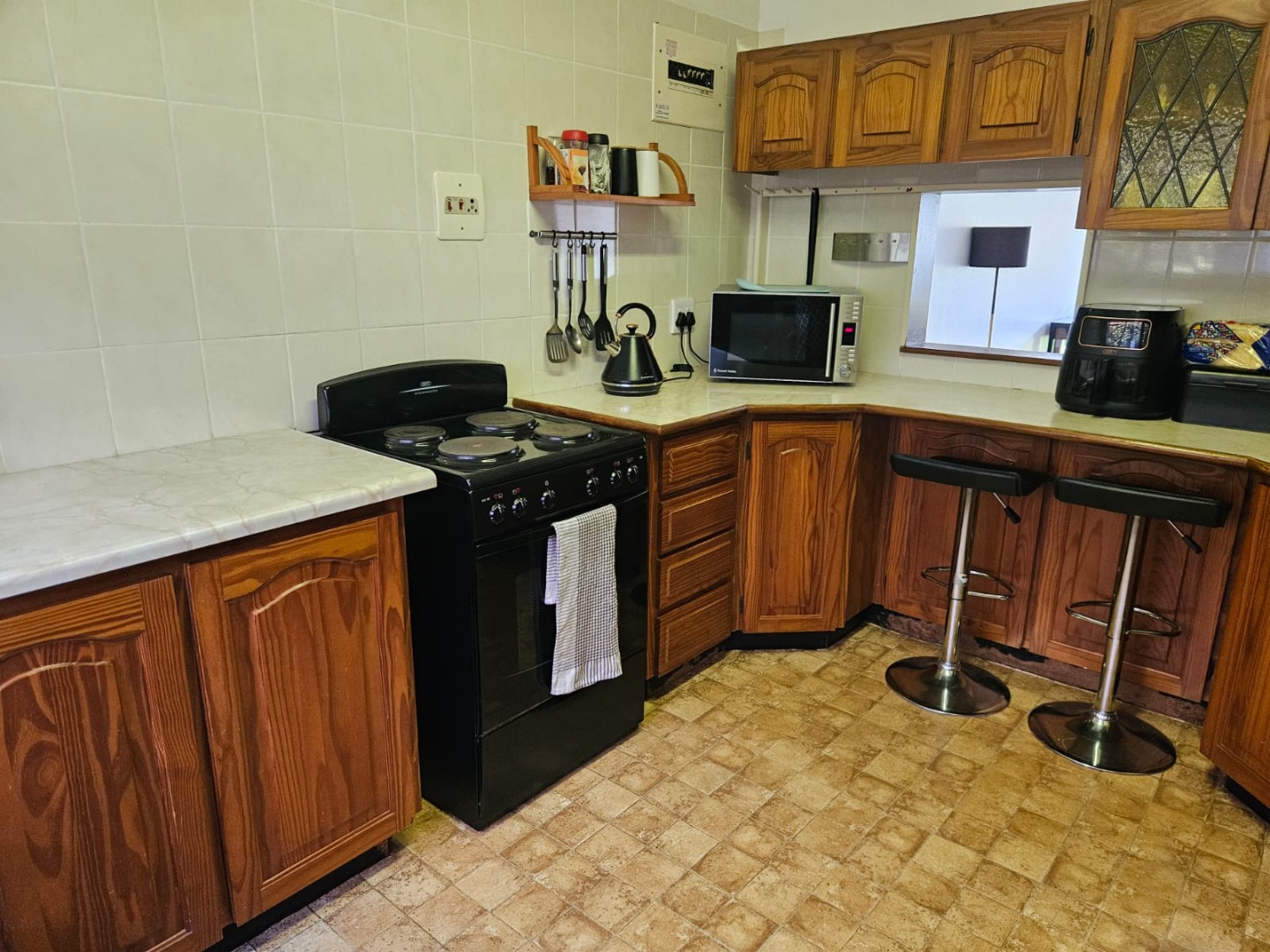 This 2 bedroom, 1,5 bathroom duplex boasts a large spacious kitchen with loads of wooden cupboards for storage and a free-standing electric stove.