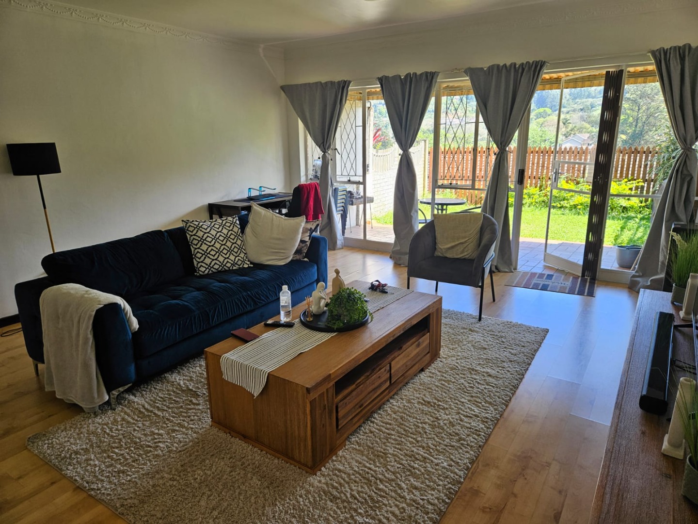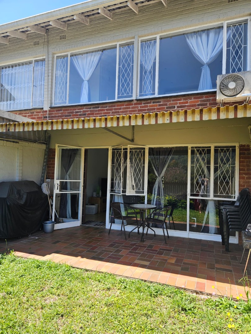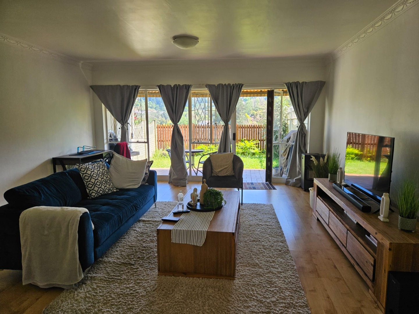 The dining room is open plan to lounge area, which leads onto the patio with a small grassed garden area.