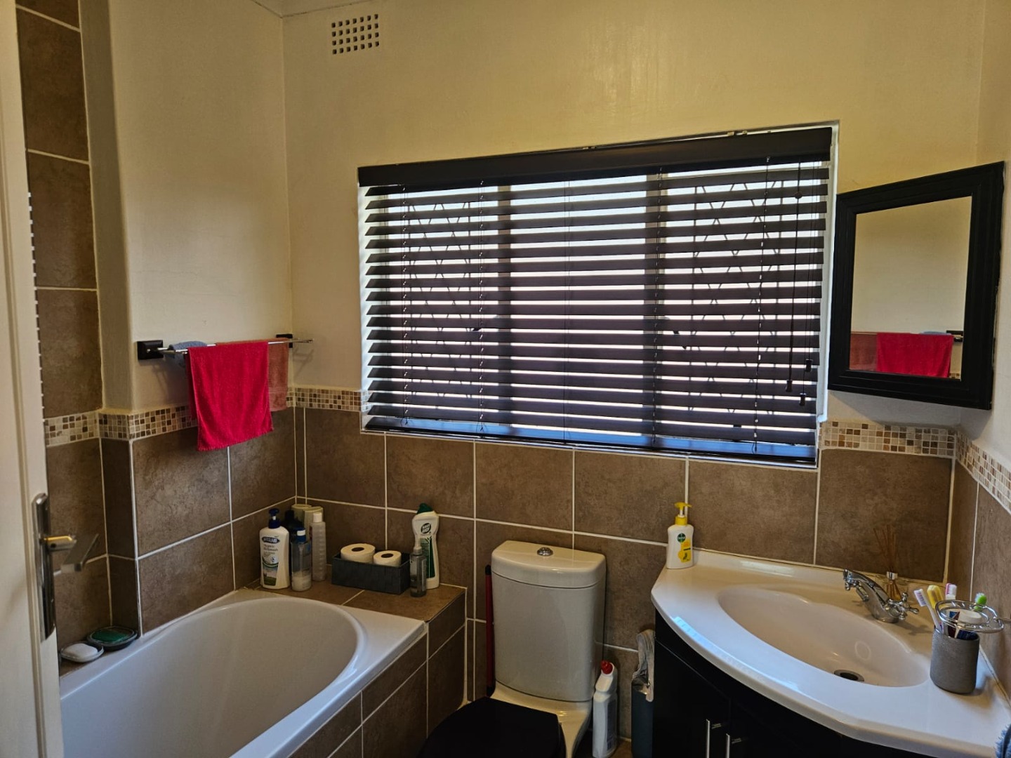 Both bedrooms and the family bathroom are found upstairs, the bedrooms are carpeted and have cupboards. The bathroom has a bath with a shower screen for a shower.