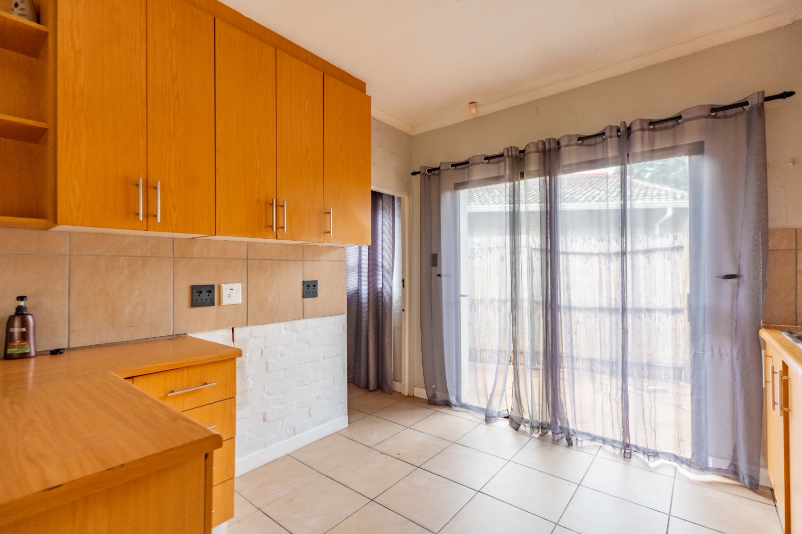 There is a sliding door off the kitchen to access a small outside area.