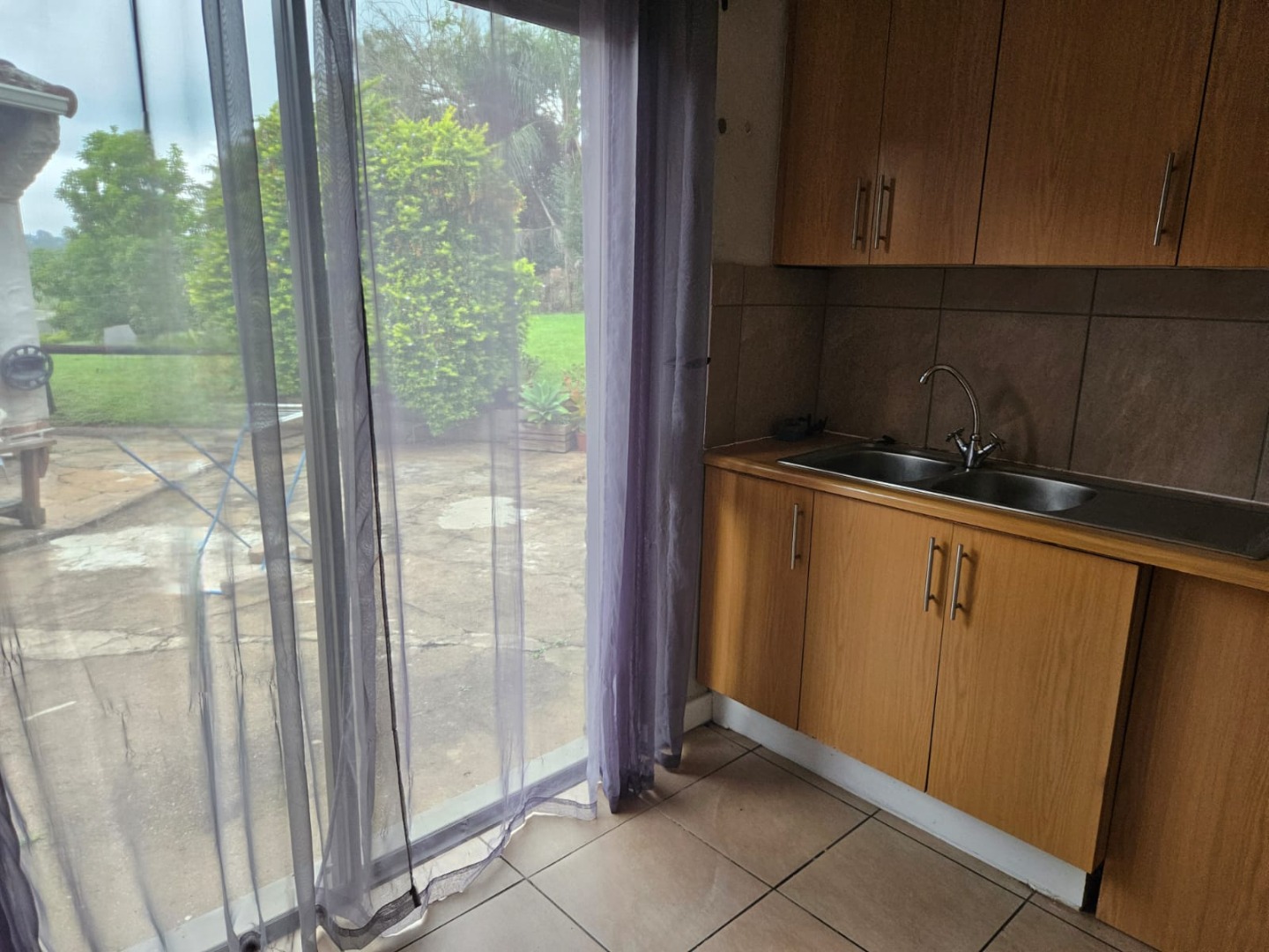 There is a sliding door off the kitchen to access a small outside area.