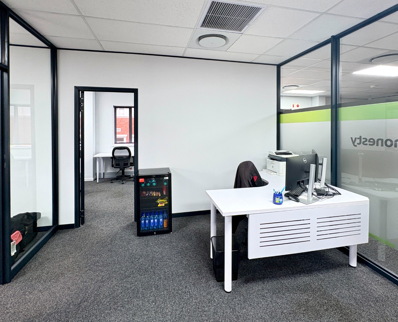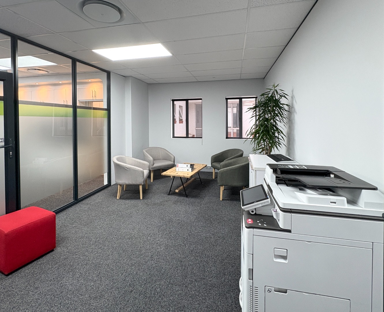 Measuring approximately 280 m², the office is located on the first floor and comes fully fitted with open-plan work areas, executive offices, boardroom with a small kitchen. Shared restrooms are conveniently located on the same level. The layout is designed to support both collaboration and privacy, offering a flexible workspace that can easily adapt to the needs of any growing business.