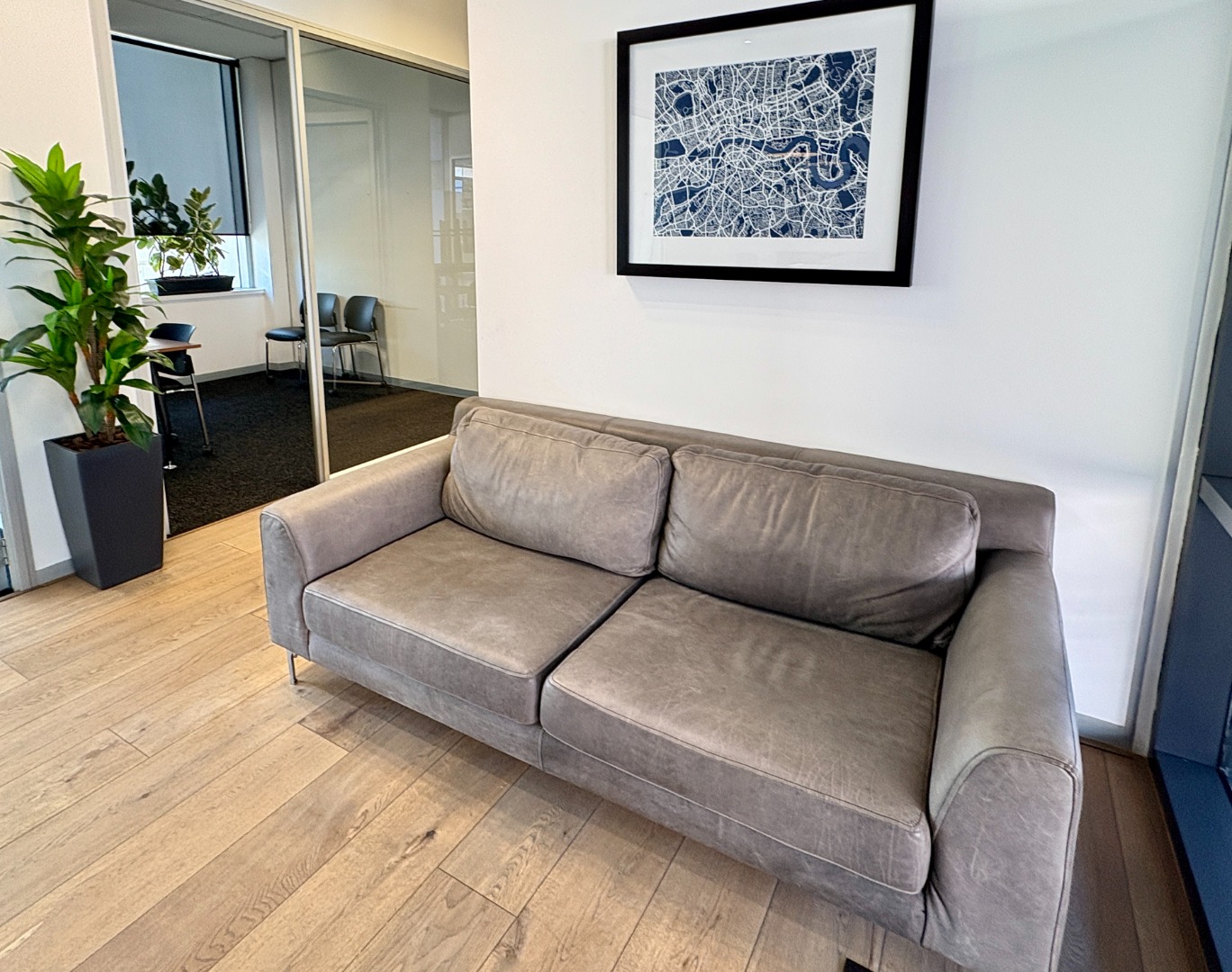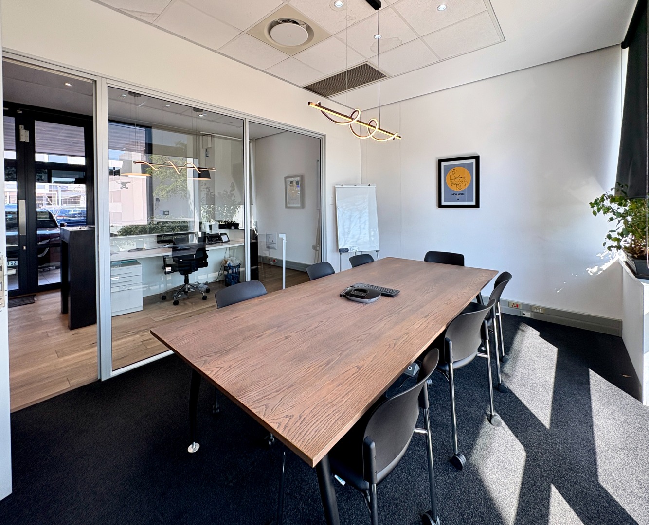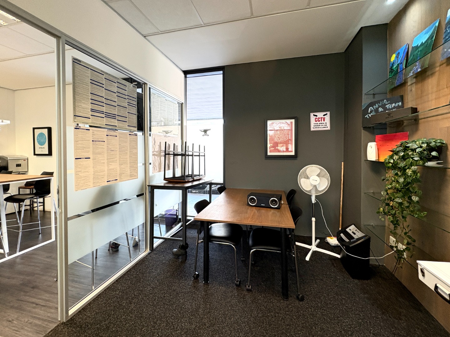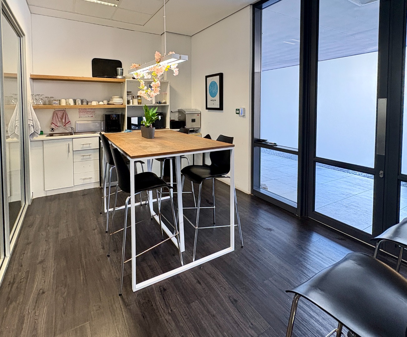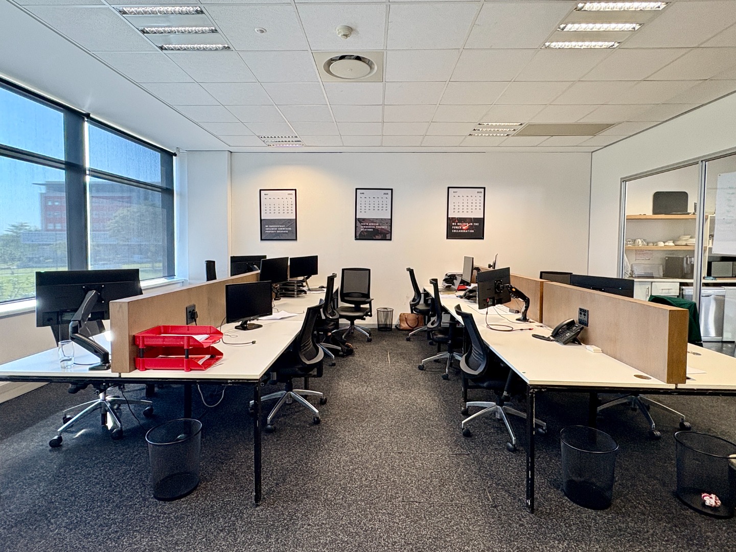 Ready for immediate occupation, the unit features a reception, boardroom, private offices, a fully equipped kitchen and a large open-plan workspace designed to suit a dynamic working environment.