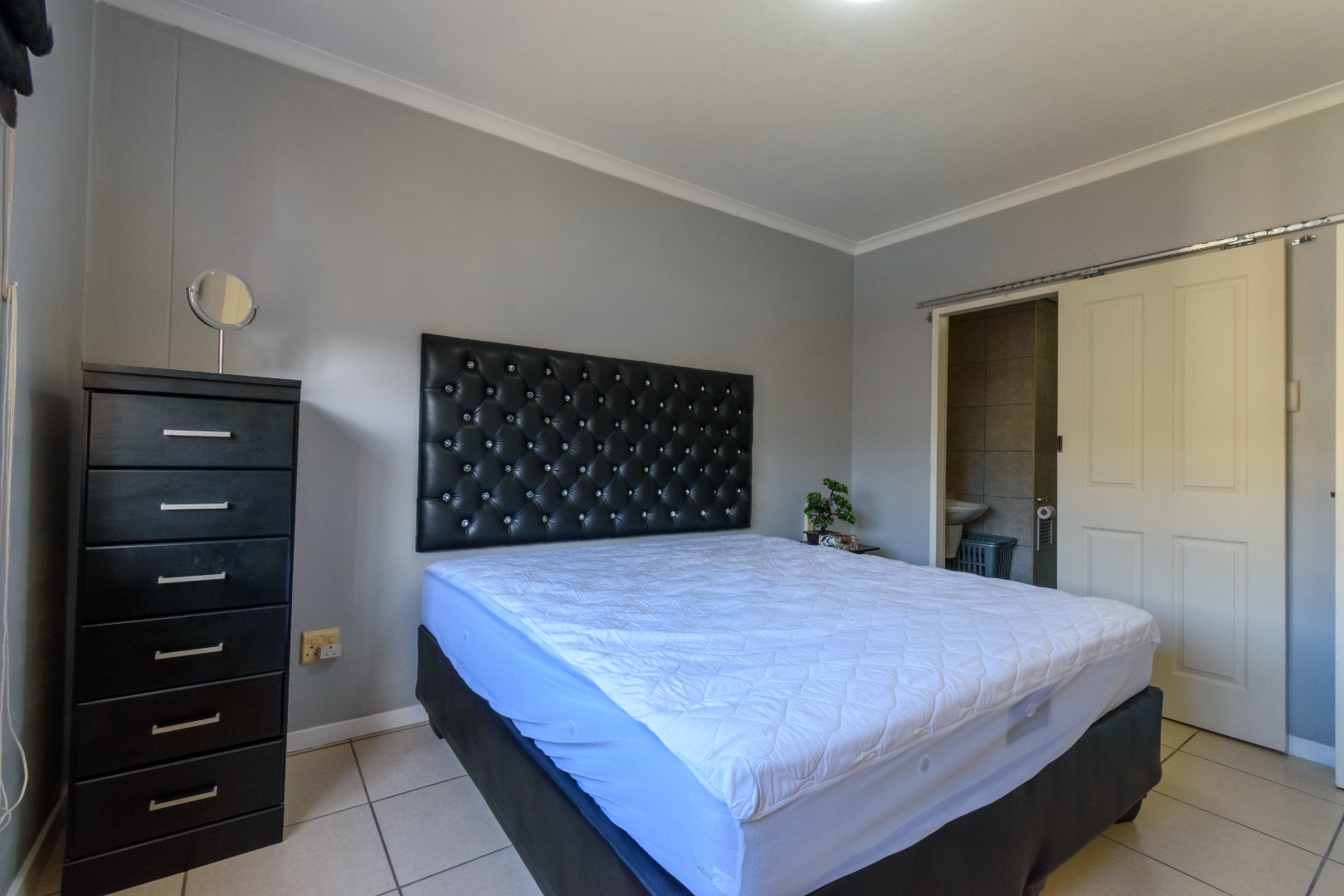 An open-plan kitchen, complete with granite countertops, a new stove, washing machine, and full crockery, flows into a bright lounge with a private balcony overlooking the communal pool. Enjoy peace of mind with 24-hour security, access gate, intercom, and a dedicated parking bay. Ample cupboard space and a lift complete this secure, well-appointed home.
