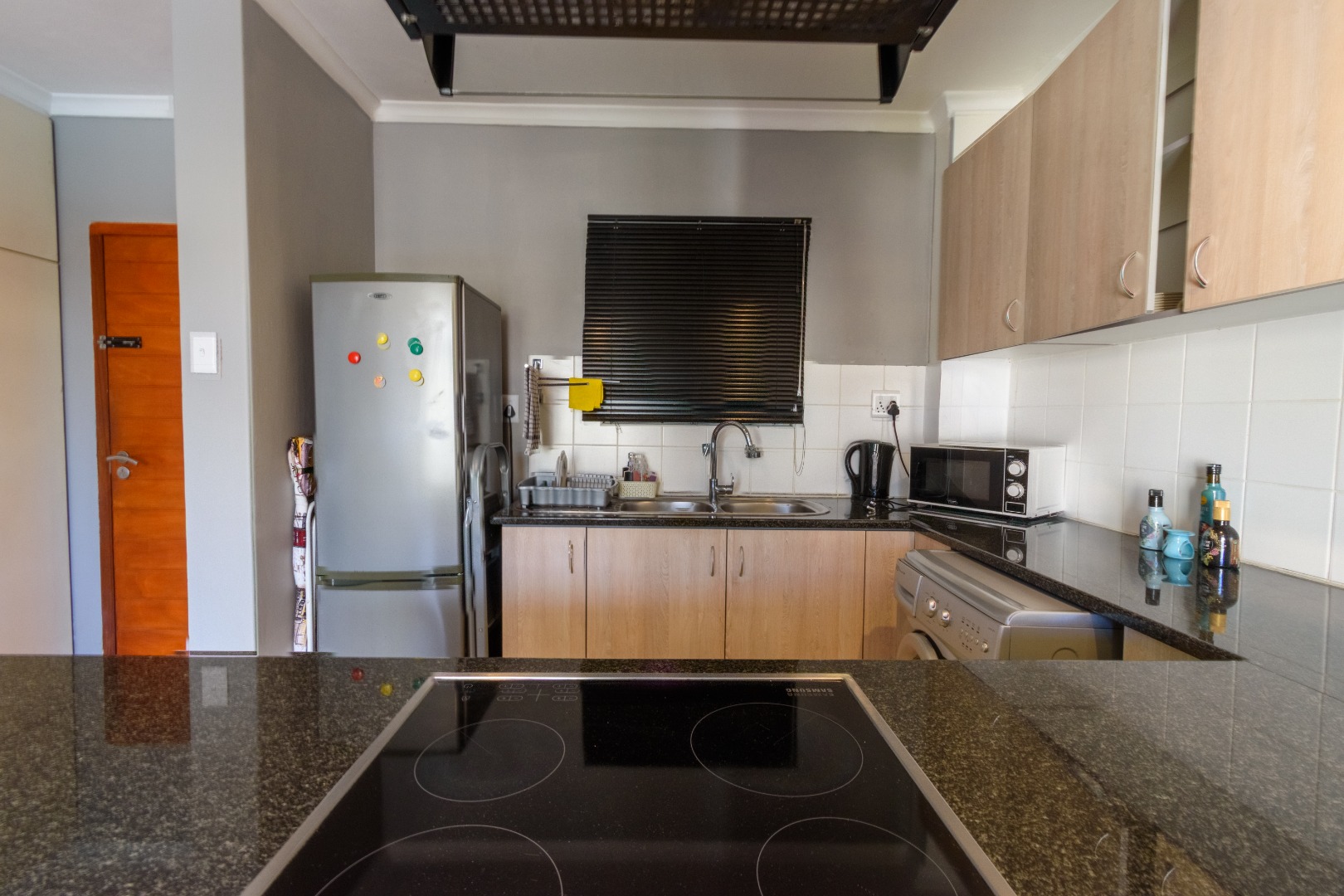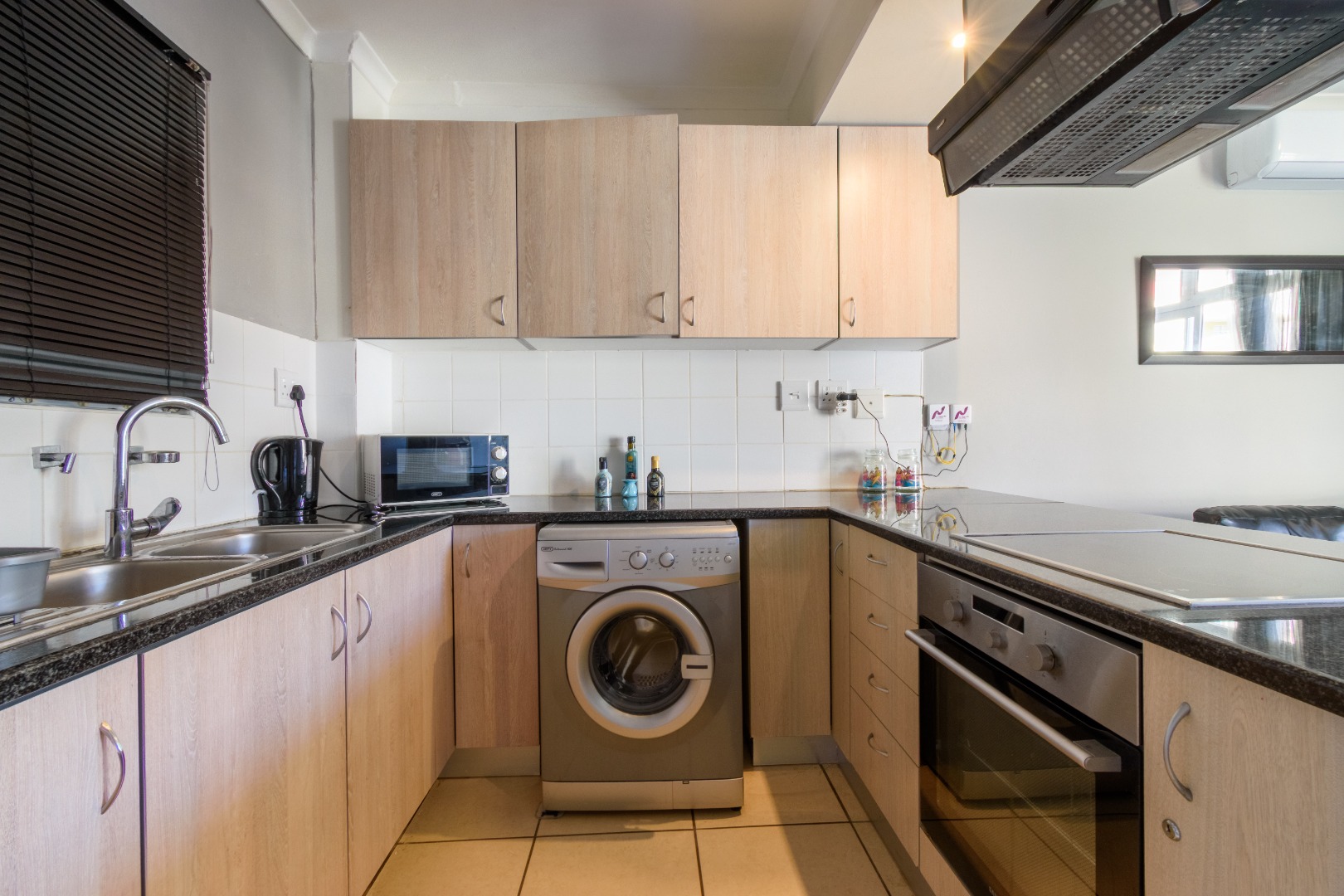 An open-plan kitchen, complete with granite countertops, a new stove, washing machine, and full crockery, flows into a bright lounge with a private balcony overlooking the communal pool. Enjoy peace of mind with 24-hour security, access gate, intercom, and a dedicated parking bay. Ample cupboard space and a lift complete this secure, well-appointed home.