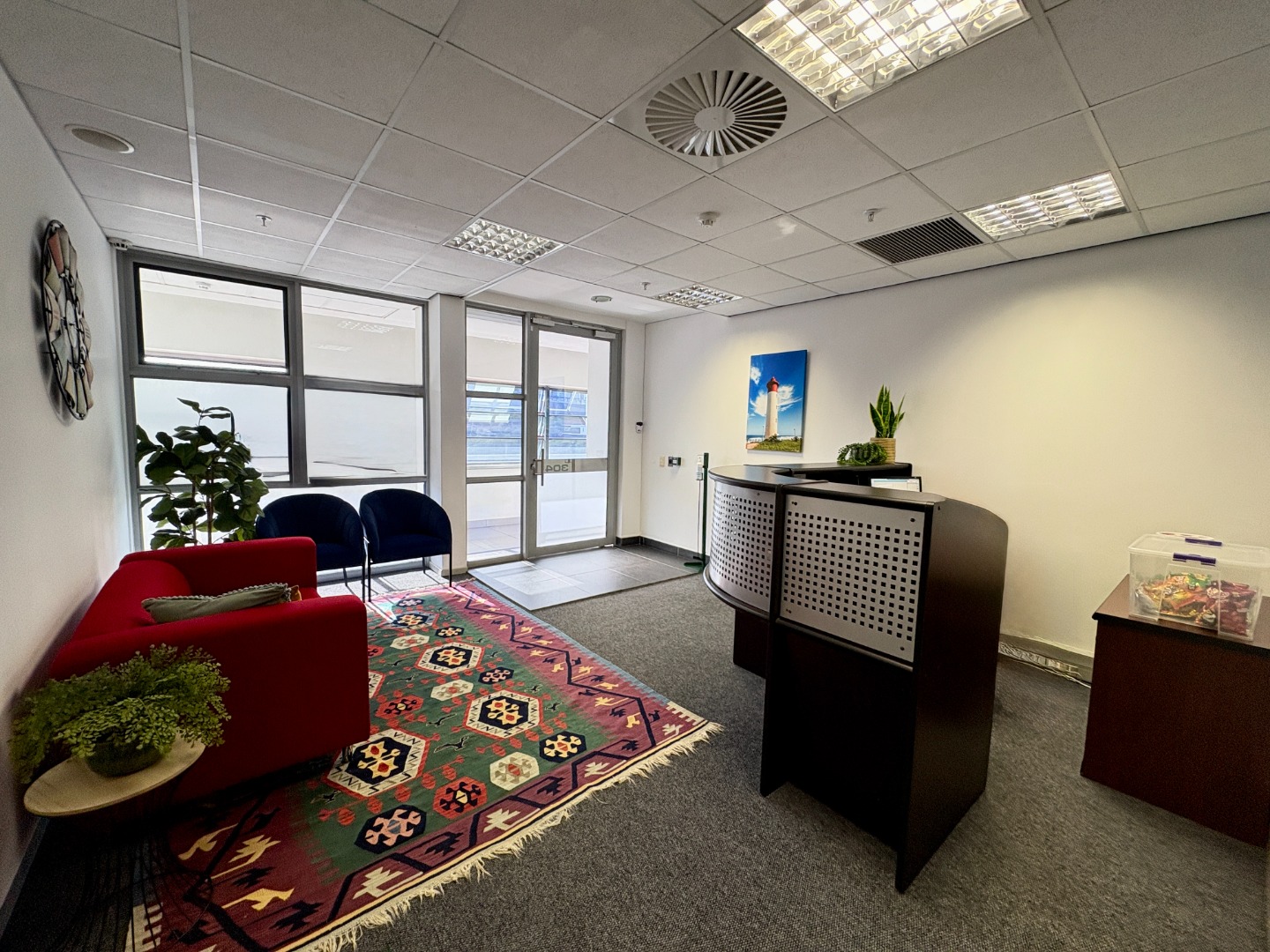 This 165 m² office space is located in the prestigious Strauss Daly Building, situated within the highly sought-after Ridgeside Office Park. Offering beautiful sea views and a modern layout, it presents an ideal working environment for businesses looking to establish themselves in a prime commercial node. The office includes a welcoming reception area, one private office, a boardroom, a spacious open-plan work area, a kitchenette, and private toilet, all designed for functionality and comfort.
