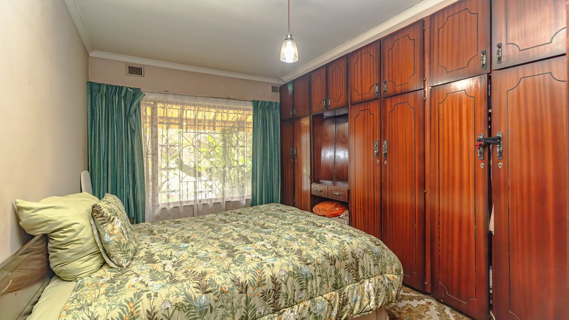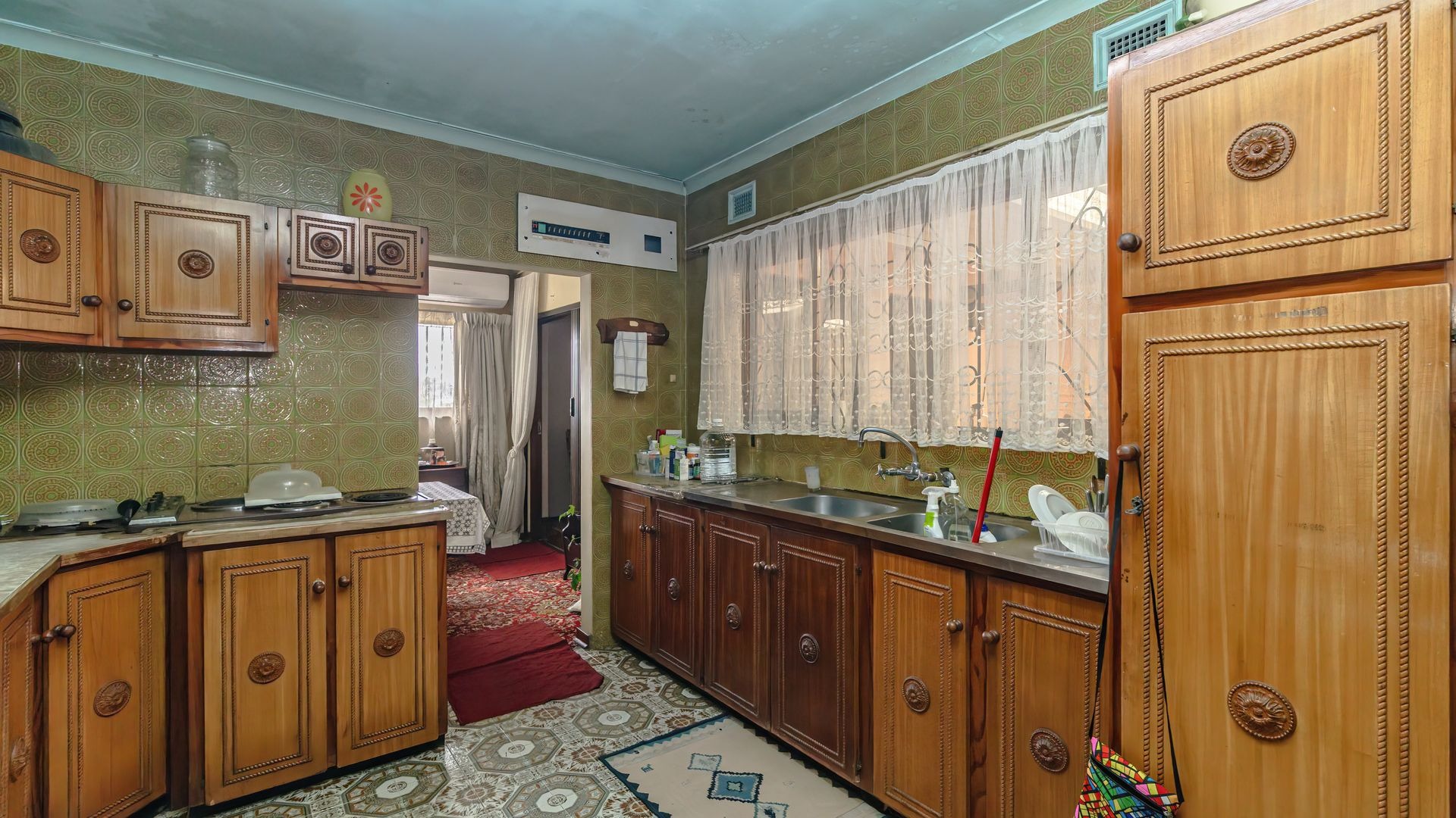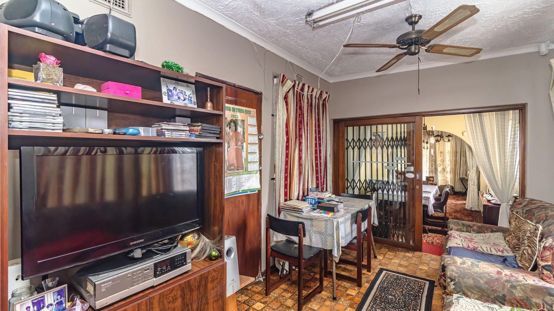This home features a fully fitted and tiled kitchen that flows seamlessly into a charming dining area, which in turn leads into a warm and inviting lounge, perfect for family living and entertaining.