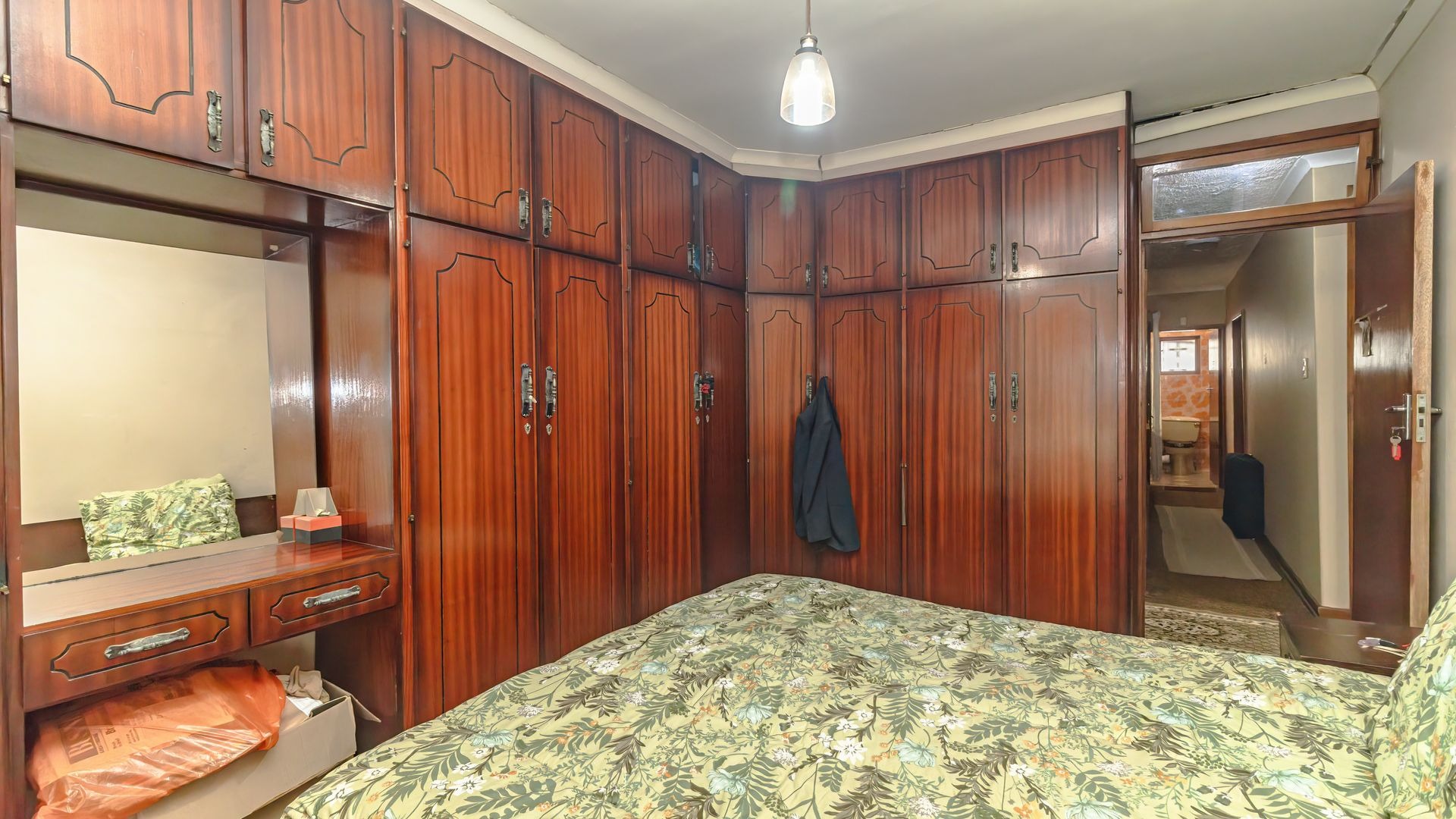 There are four well-sized bedrooms, all with built-in cupboards, offering ample storage space. The family bathroom is equipped with a bathtub, shower, toilet, and wash basin, complemented by a separate guest toilet for added convenience.