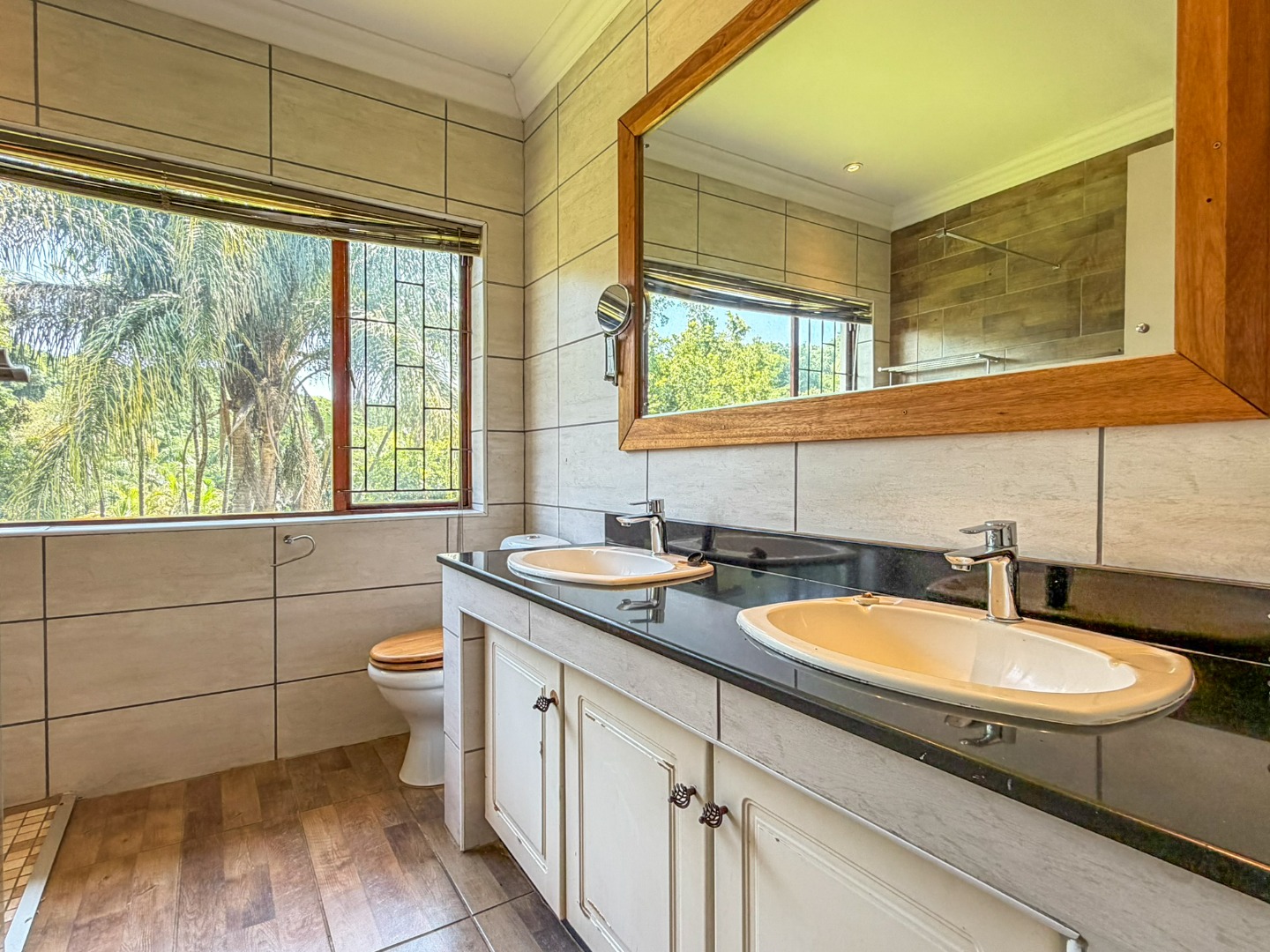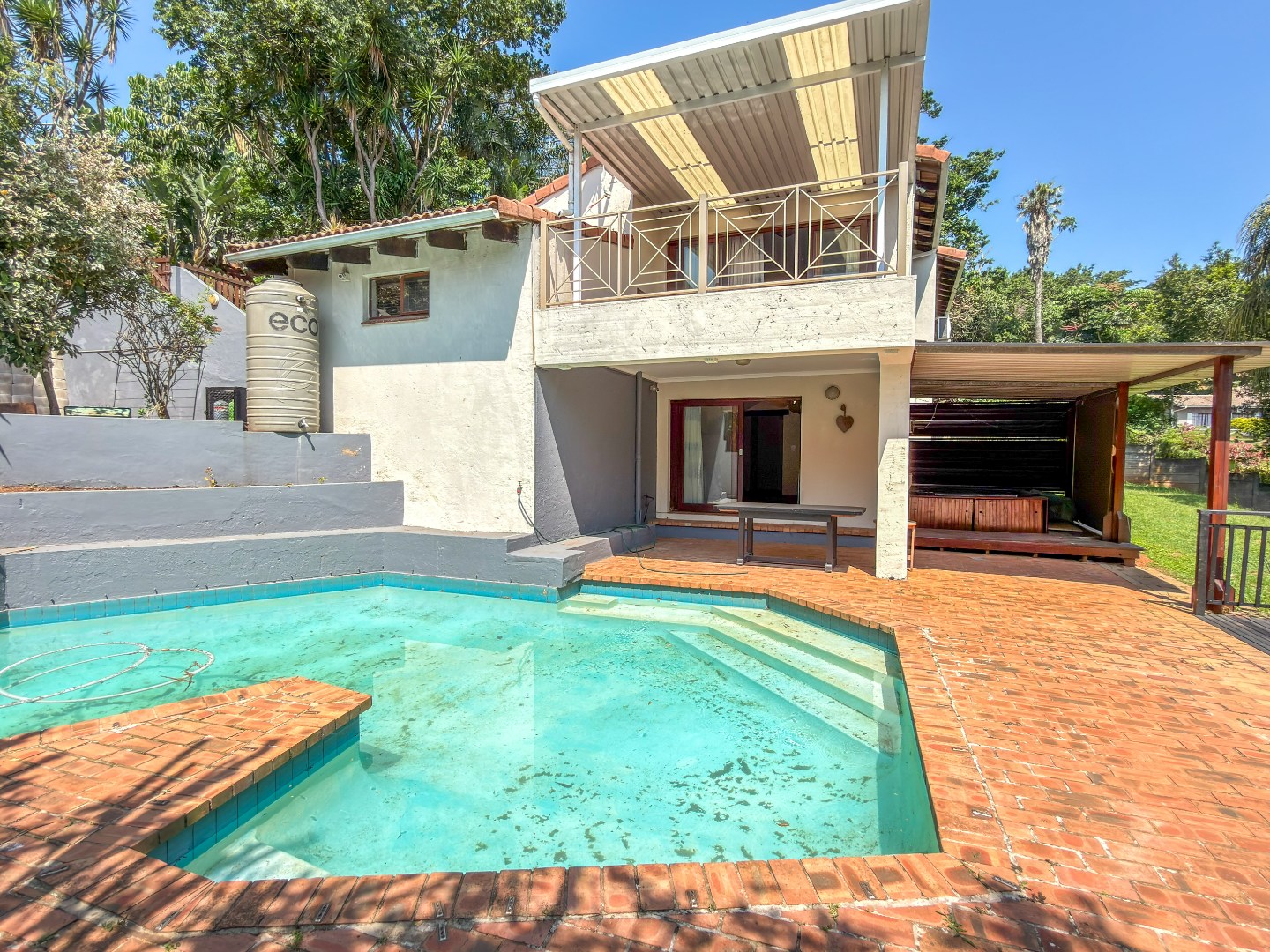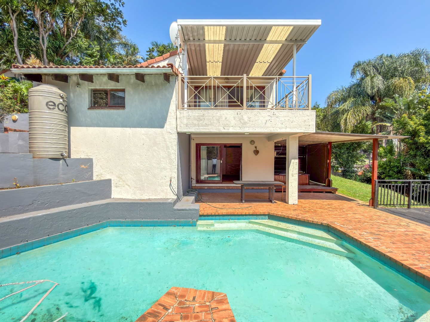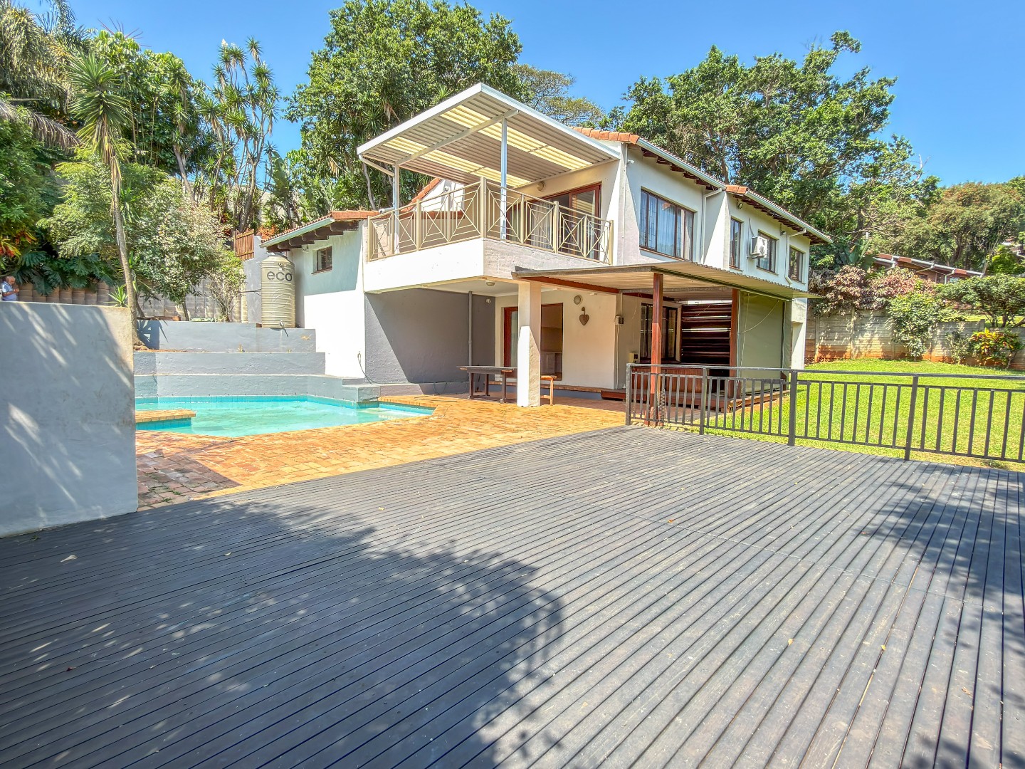 The home features five spacious bedrooms and a beautiful sauna room that can be converted into a sixth bedroom as well as four bathrooms, offering flexibility for multi generational living, work-from-home needs or hosting guests with ease. Light-filled living area flows naturally throughout the home, creating an inviting atmosphere that feels both warm and expansive. The living room opens directly onto a large open patio overlooking the pool and yard space below. The kitchen has a 2nd door to enter the property, a lovely scullery with lots of space and a second sink.