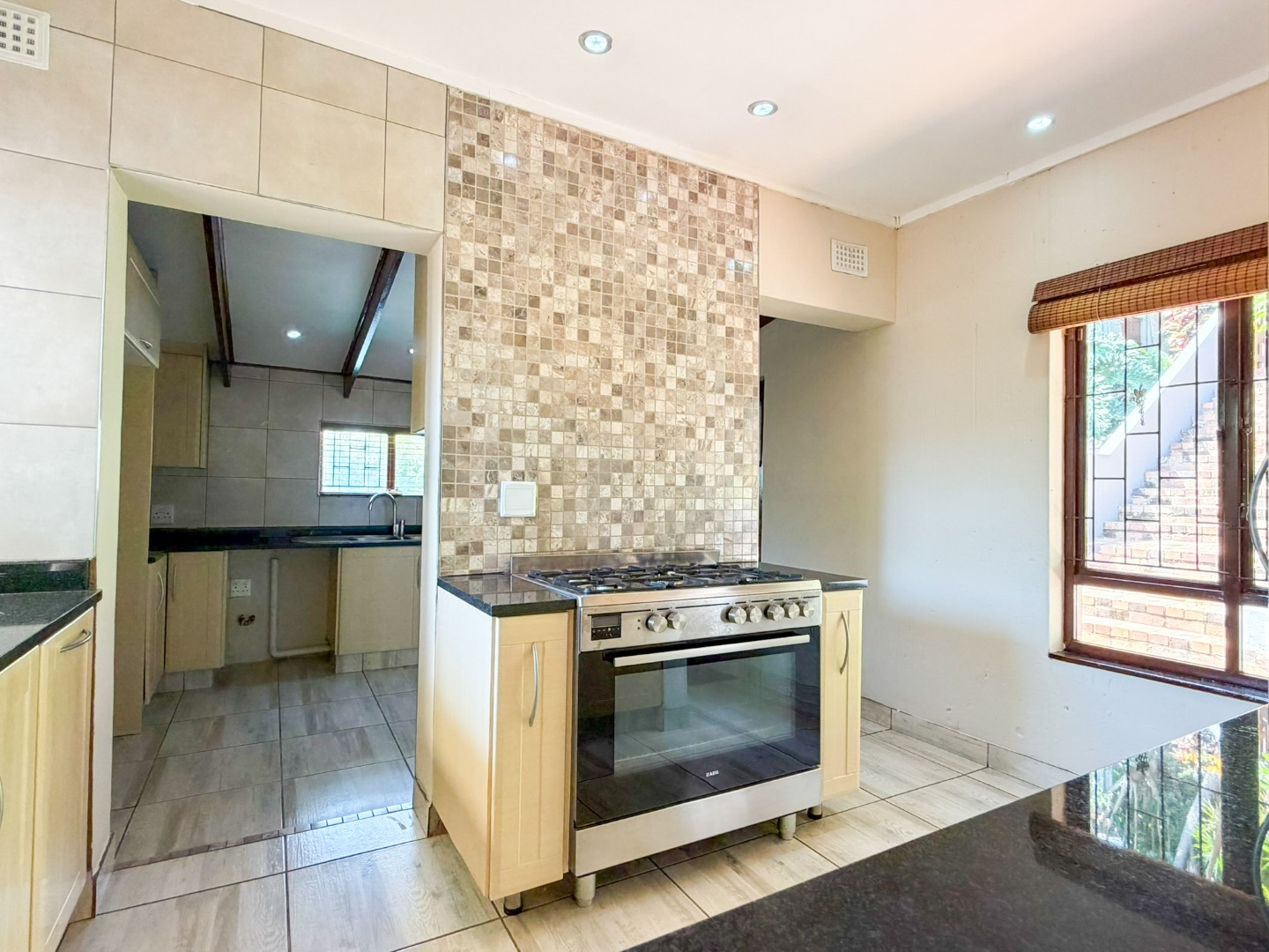 The home features five spacious bedrooms and a beautiful sauna room that can be converted into a sixth bedroom as well as four bathrooms, offering flexibility for multi generational living, work-from-home needs or hosting guests with ease. Light-filled living area flows naturally throughout the home, creating an inviting atmosphere that feels both warm and expansive. The living room opens directly onto a large open patio overlooking the pool and yard space below. The kitchen has a 2nd door to enter the property, a lovely scullery with lots of space and a second sink.
