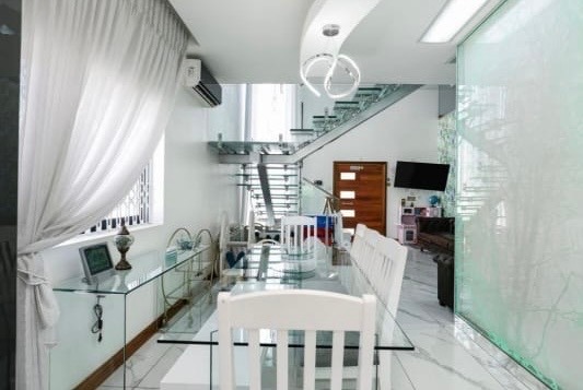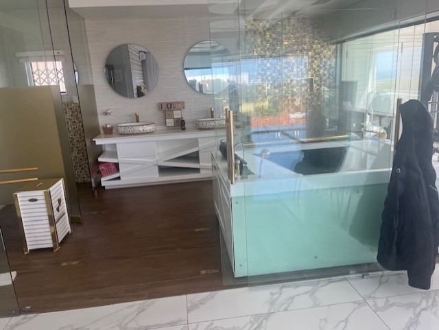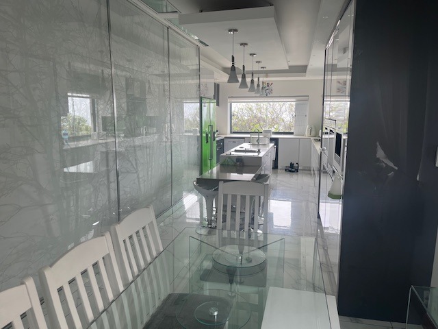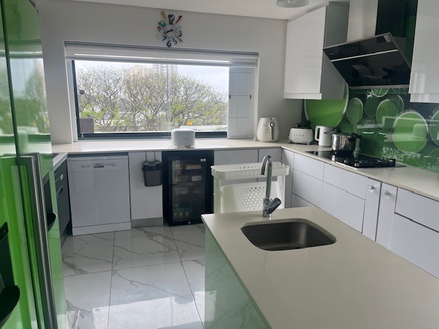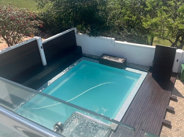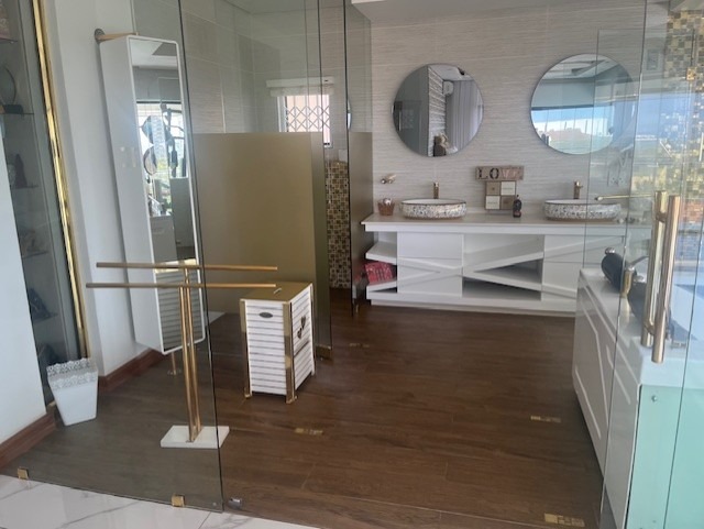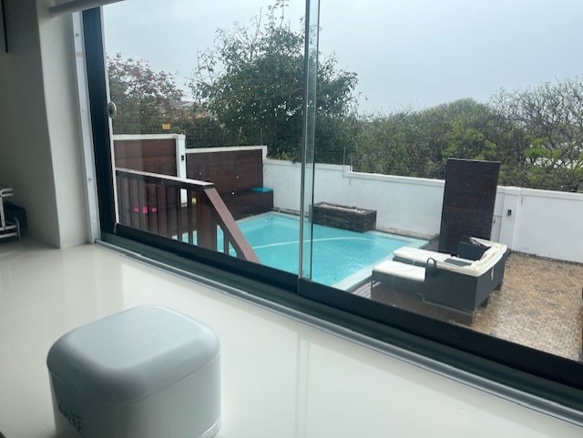 Hey there! Get ready to fall in love with this super stylish modern home in Prospect Hall, Durban North. It boasts a sleek, contemporary design with clean lines, large windows letting in tons of natural light, and a cool mix of wood, glass, and white finishes. You'll even find a lovely upper-level balcony, perfect for enjoying the fresh air. Step inside and discover a spacious open-plan layout featuring two lounges and a dining room, making it ideal for family gatherings or entertaining friends. The kitchen is a real highlight – think modern, high-gloss cabinetry, a functional island, and a vibrant green fridge that adds a unique pop of personality! Plus, there's a handy pantry and a separate laundry area to keep things organised. With five comfortable bedrooms, each boasting its own ensuite bathroom, everyone gets their private sanctuary. There's also a convenient guest toilet for visitors. Stay cool with air conditioning throughout and enjoy the ambiance created by special lighting. Outside, you'll find a fantastic covered patio and a deck where you can soak in those beautiful sea views. A refreshing swimming pool, a lovely garden, and ample parking with two garages and space for five cars complete the picture. You'll also appreciate the domestic rooms, CCTV, an access gate, and fibre internet, ensuring comfort and security. This lovely suburban spot in Durban North offers a relaxed atmosphere, perfect for a permanent residence or even a holiday home feel. * 5 Bedrooms, 5 Ensuites * 2 Lounges, 1 Dining Room * Modern Kitchen with Pantry * Air Conditioning & Special Lighting * Deck with Sea View * Swimming Pool & Garden * 2 Garages, 5 Parking Spaces * Fibre Internet & CCTV