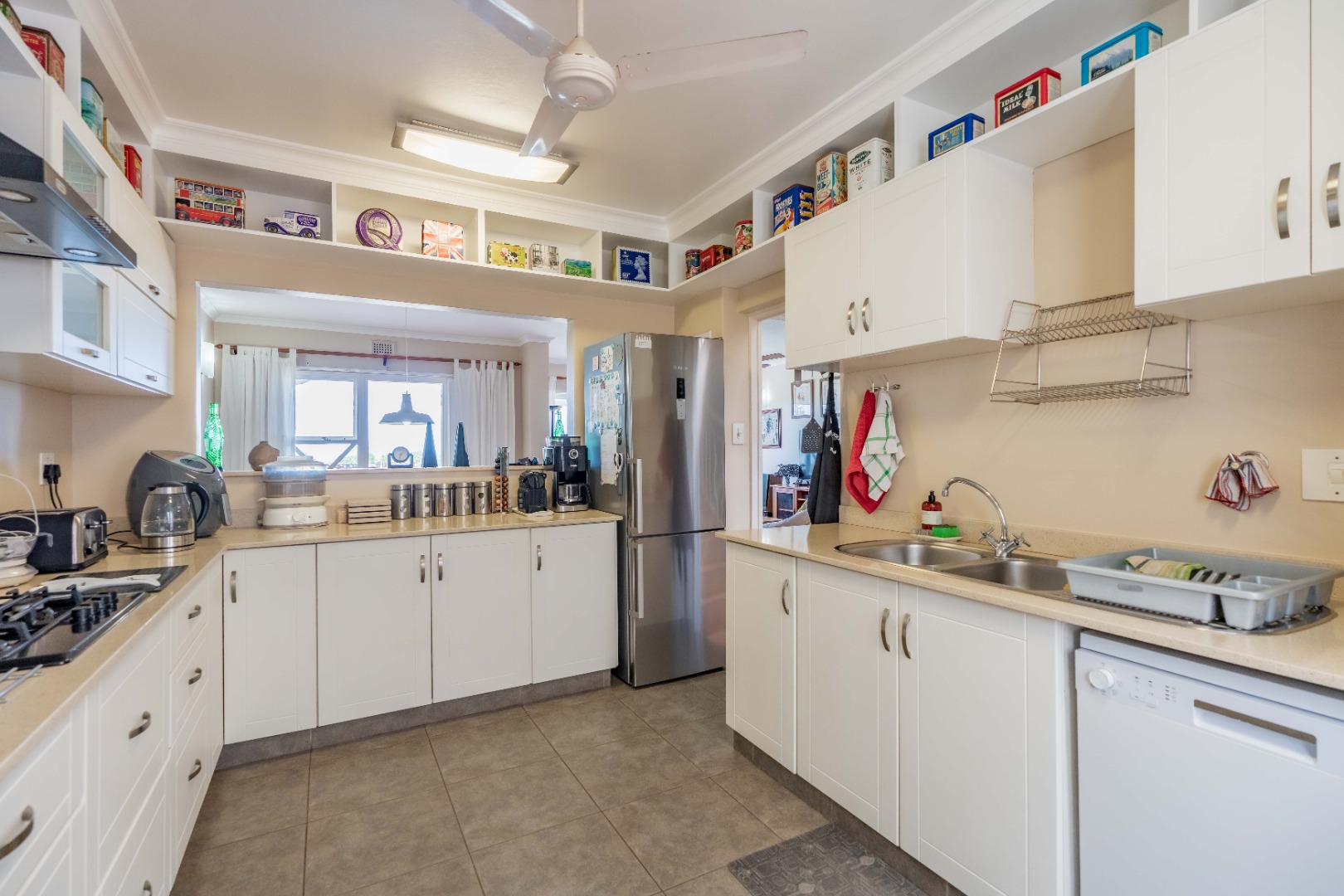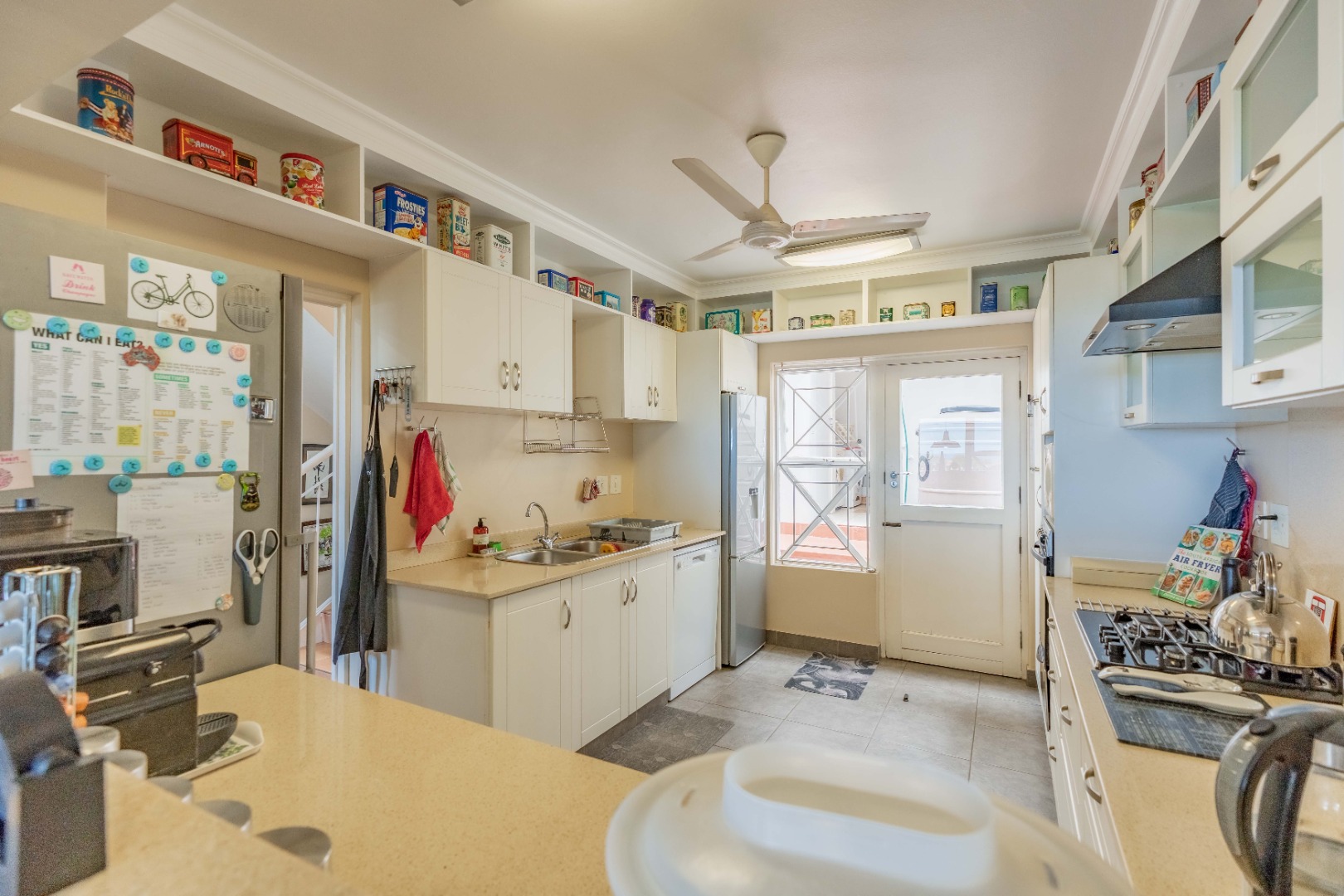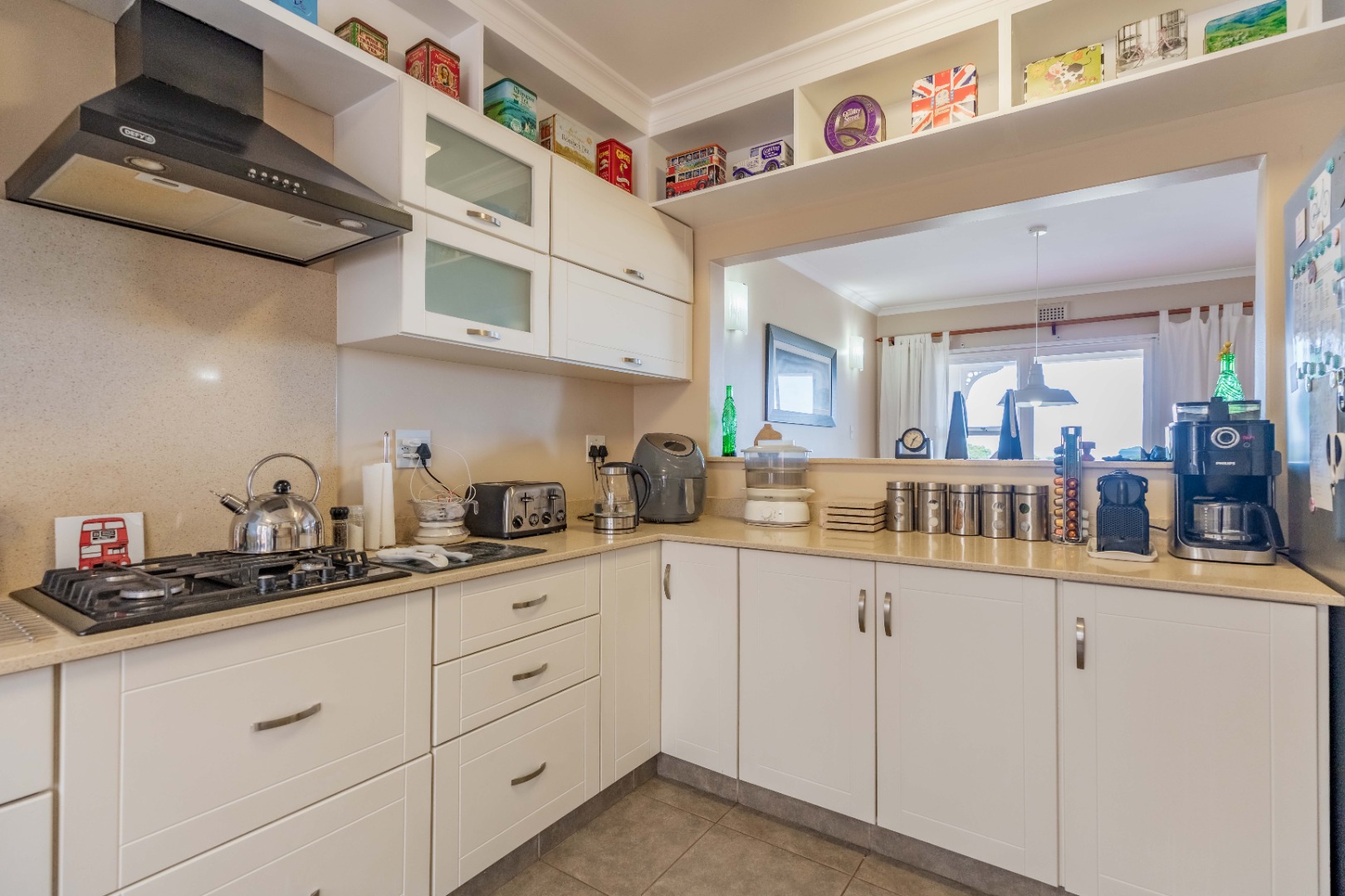The main living area boasts an open-plan lounge and dining room that flows seamlessly onto the balcony, perfect for soaking in the spectacular ocean and Durban views. The kitchen is modern and well-appointed, with Ceastarstone countertops and gas hob, there is a convenient guest toilet that adds practicality to this level.