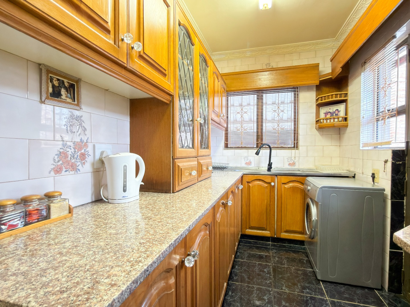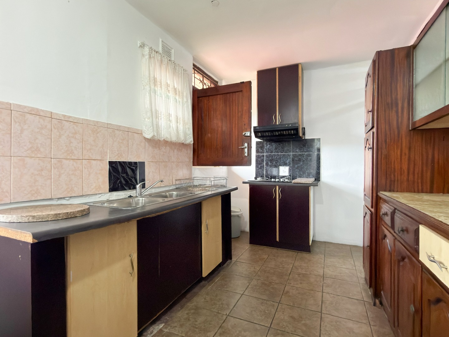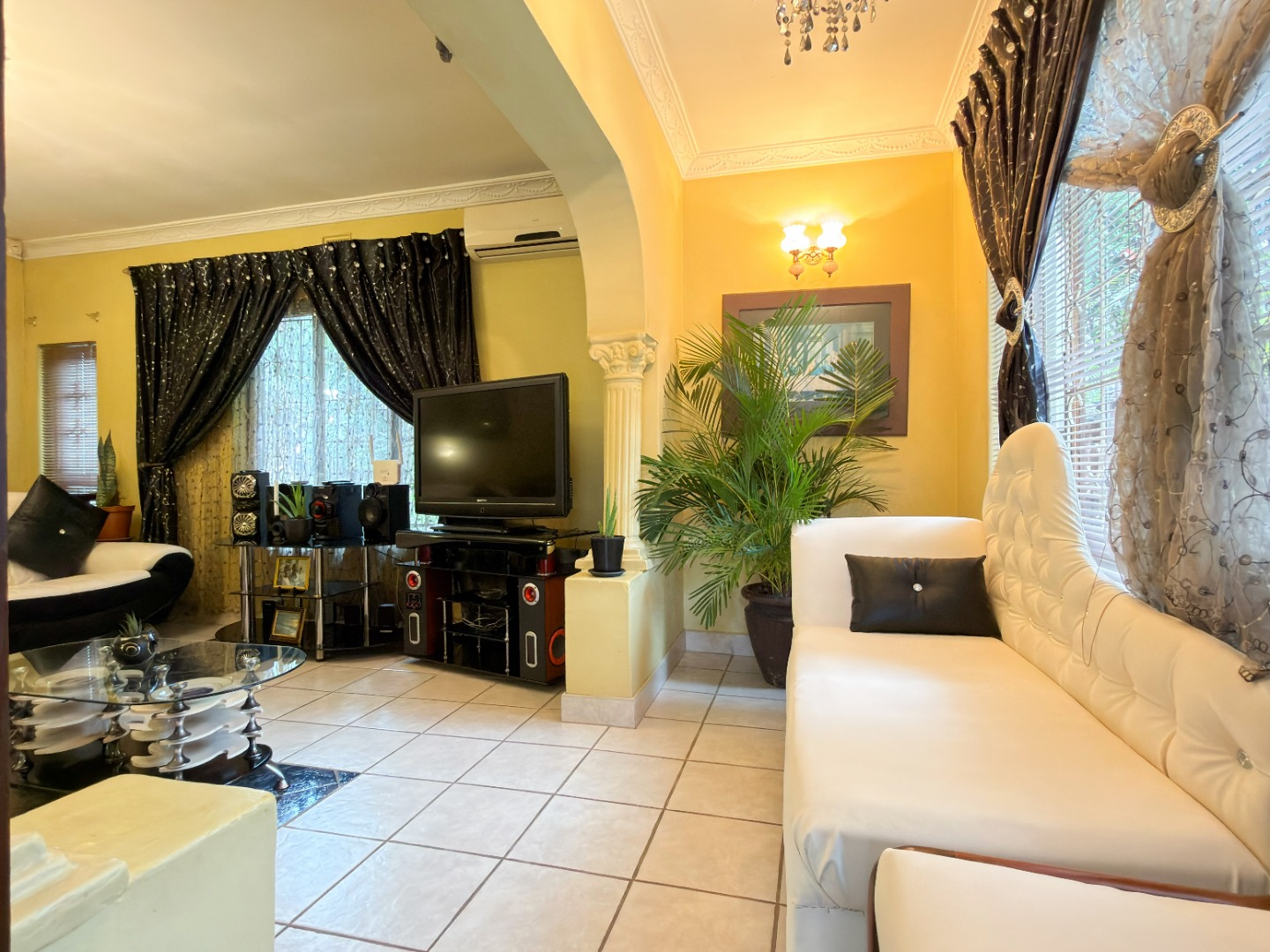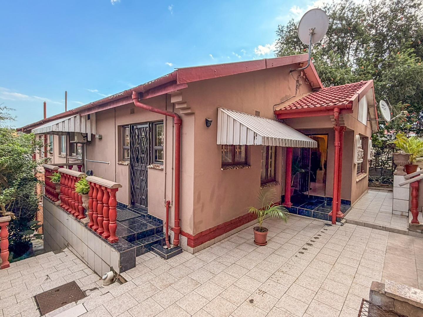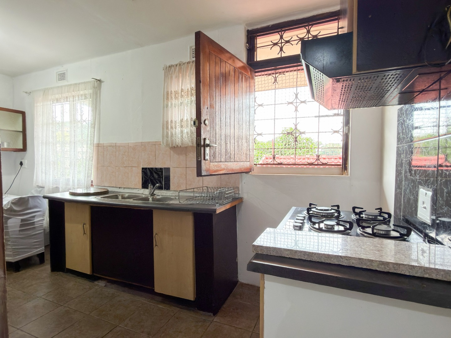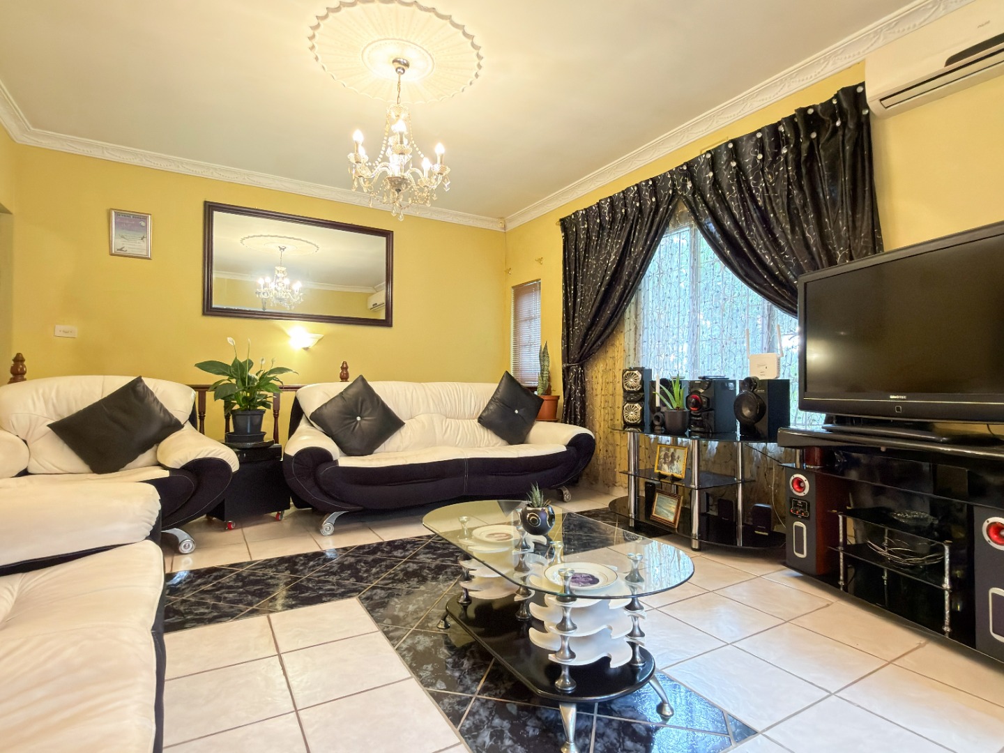 The upper level features generous bedrooms, including a main bedroom with en-suite, air-conditioning and ample built-in cupboards. Living areas are light-filled and spacious, flowing seamlessly into a fully fitted kitchen with granite countertops and a separate scullery, making everyday living both practical and comfortable.