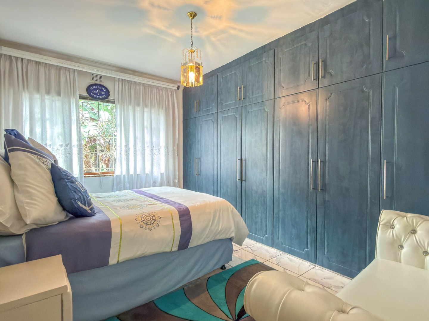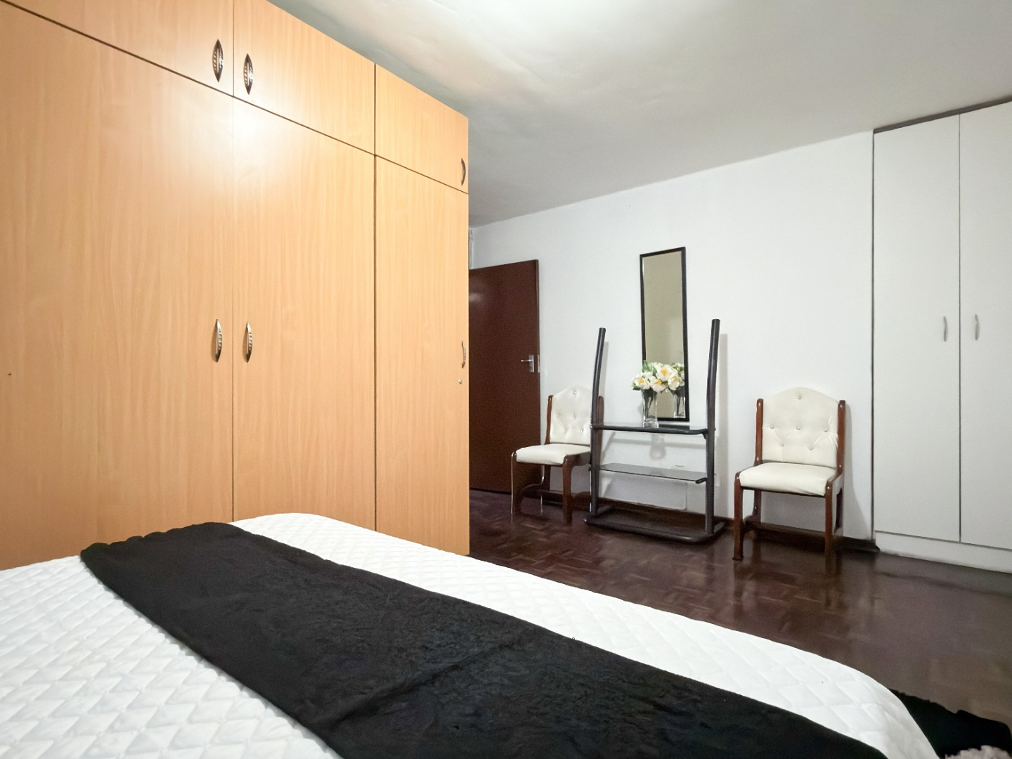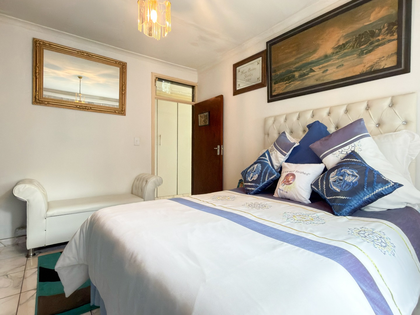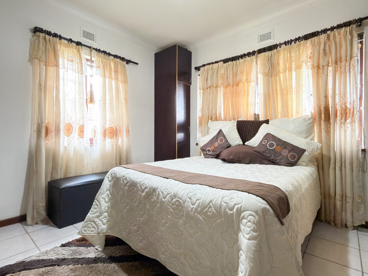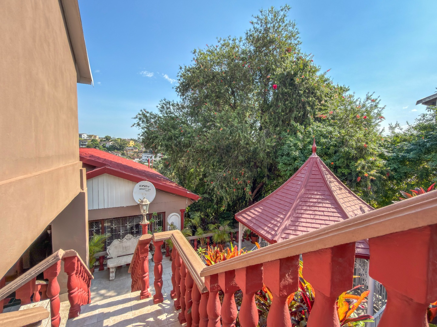 The upper level features generous bedrooms, including a main bedroom with en-suite, air-conditioning and ample built-in cupboards. Living areas are light-filled and spacious, flowing seamlessly into a fully fitted kitchen with granite countertops and a separate scullery, making everyday living both practical and comfortable.