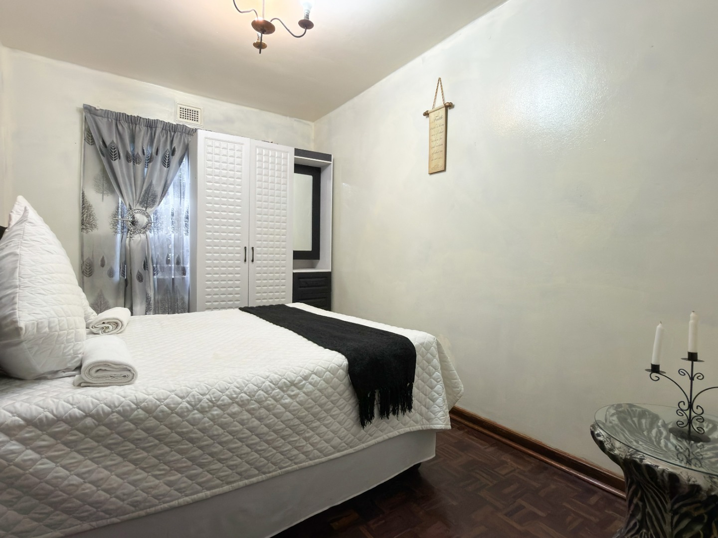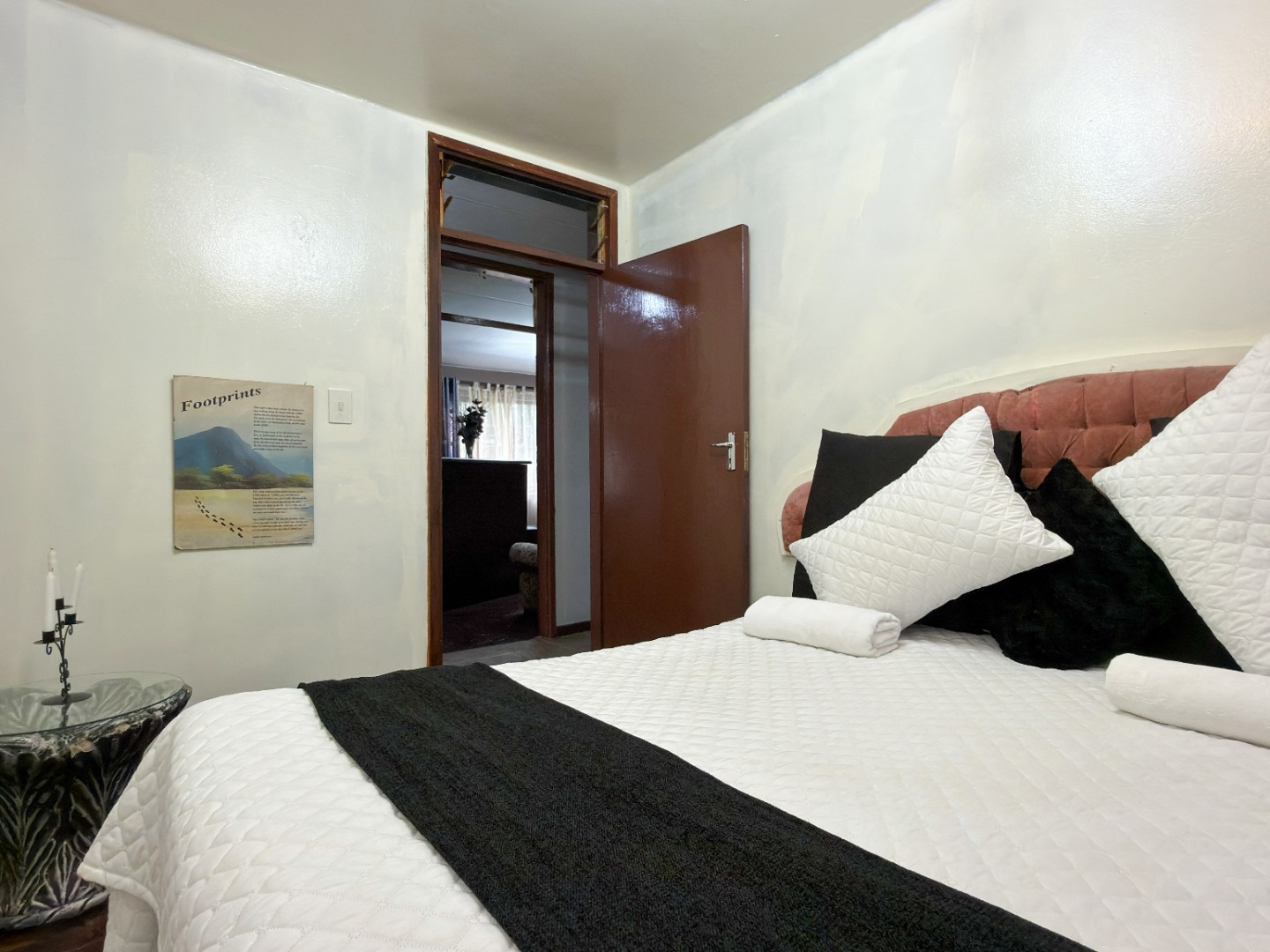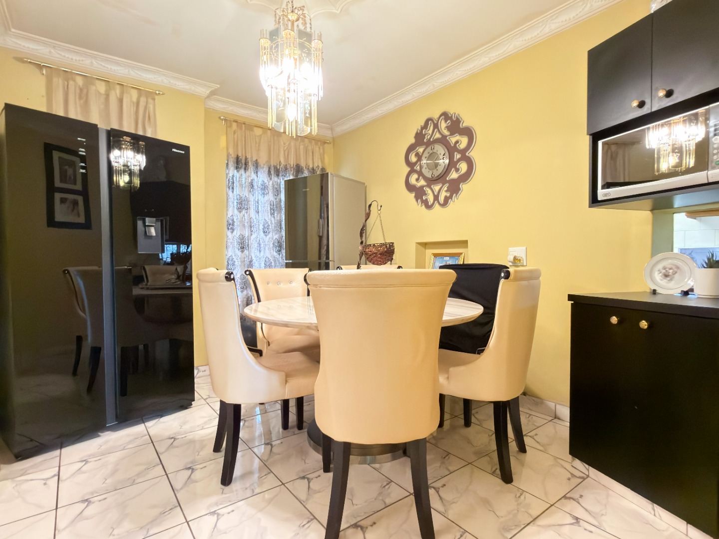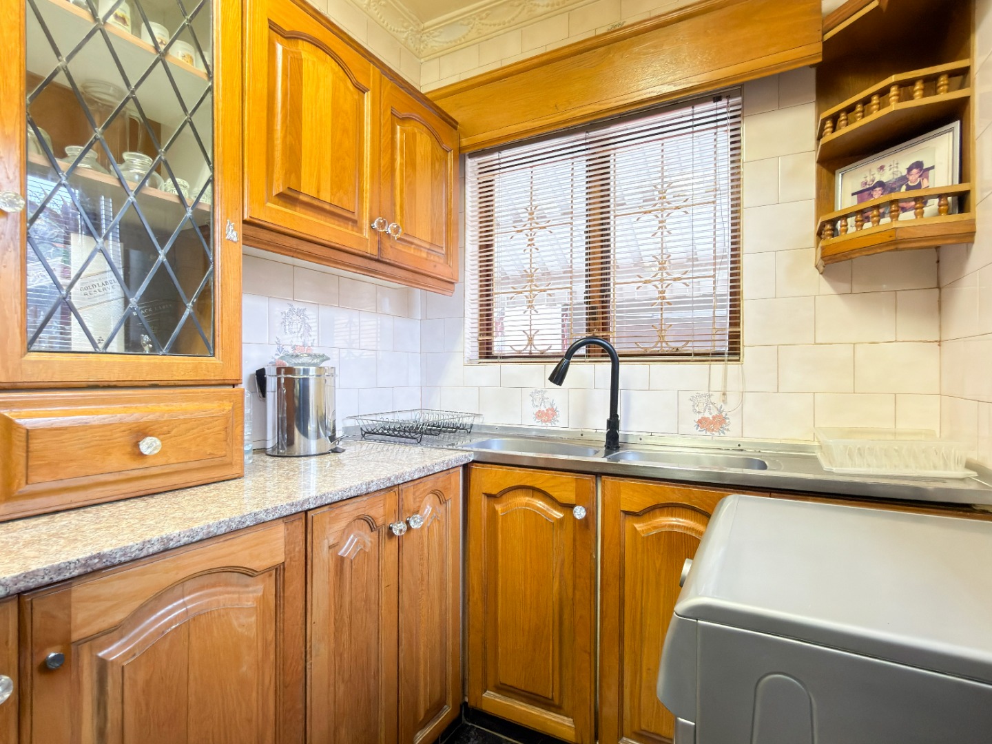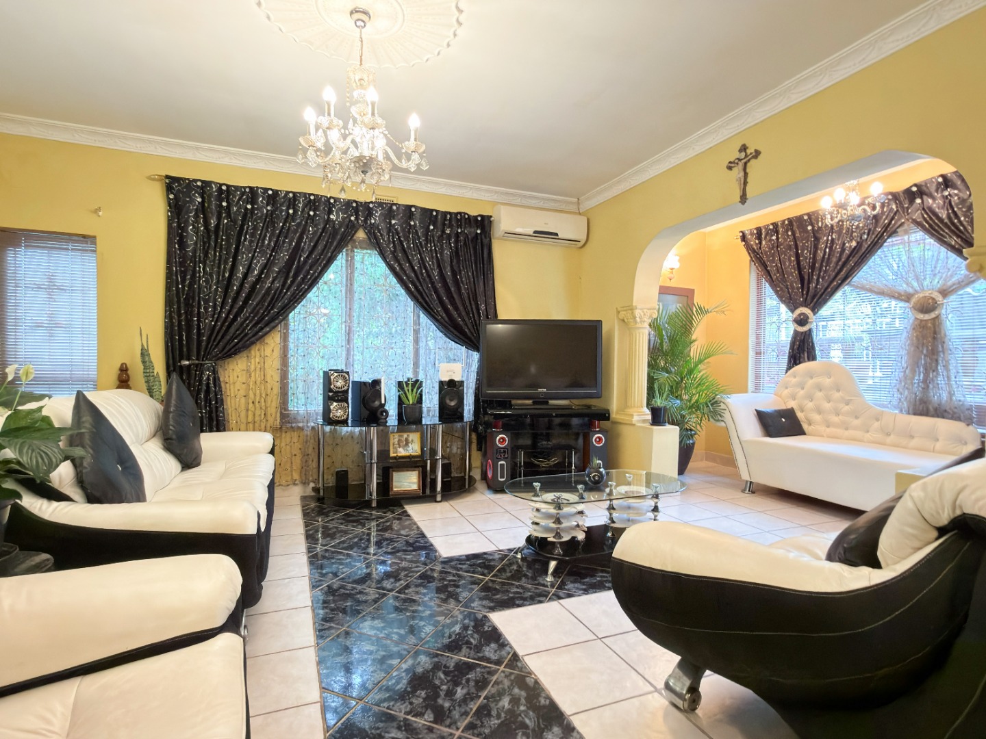 The upper level features generous bedrooms, including a main bedroom with en-suite, air-conditioning and ample built-in cupboards. Living areas are light-filled and spacious, flowing seamlessly into a fully fitted kitchen with granite countertops and a separate scullery, making everyday living both practical and comfortable.