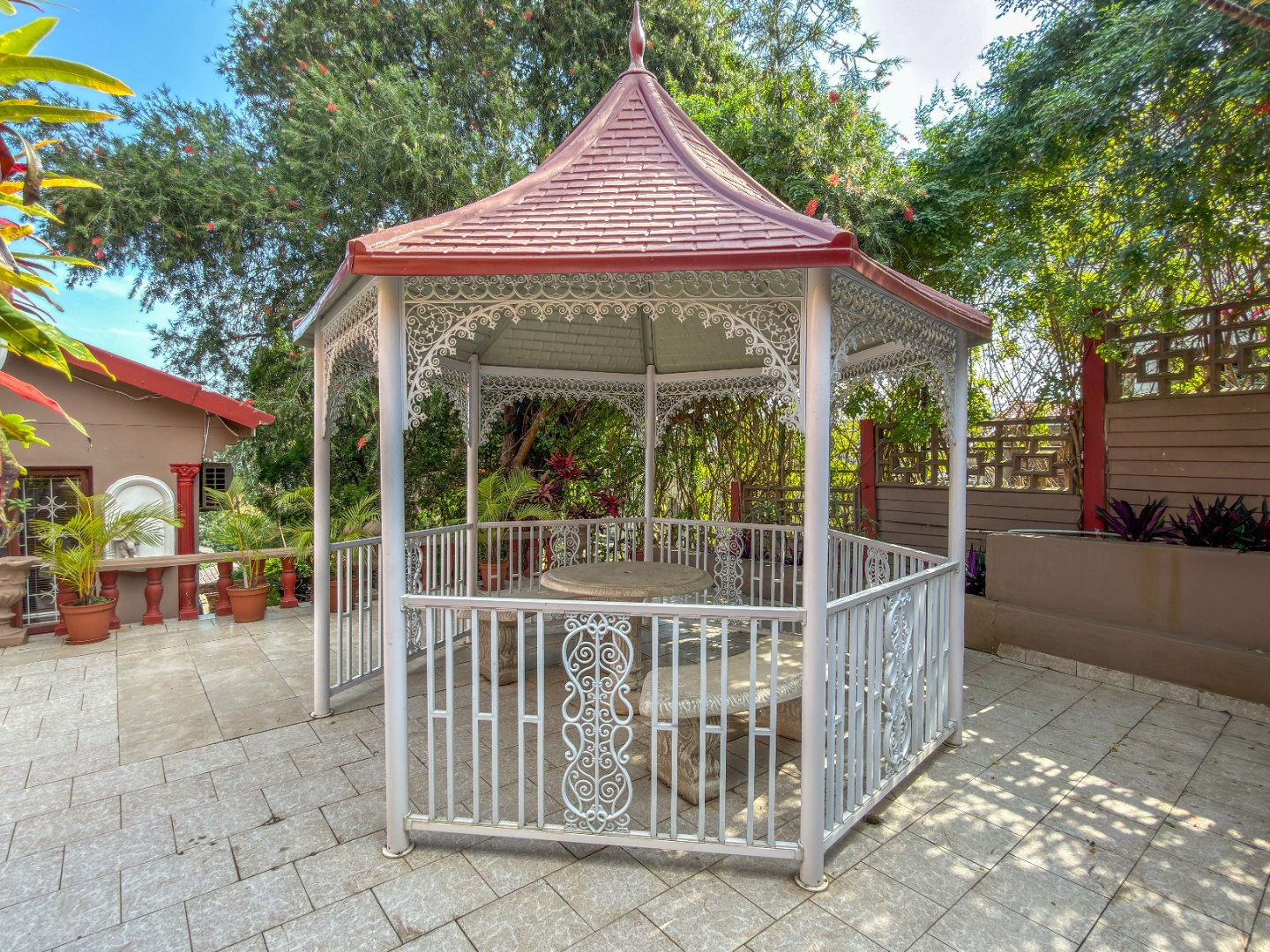 Outdoors, enjoy relaxed entertaining around the 8-seater Jacuzzi and pergola, all set within a fully fenced and secure yard with an alarm system for peace of mind. Three garages.