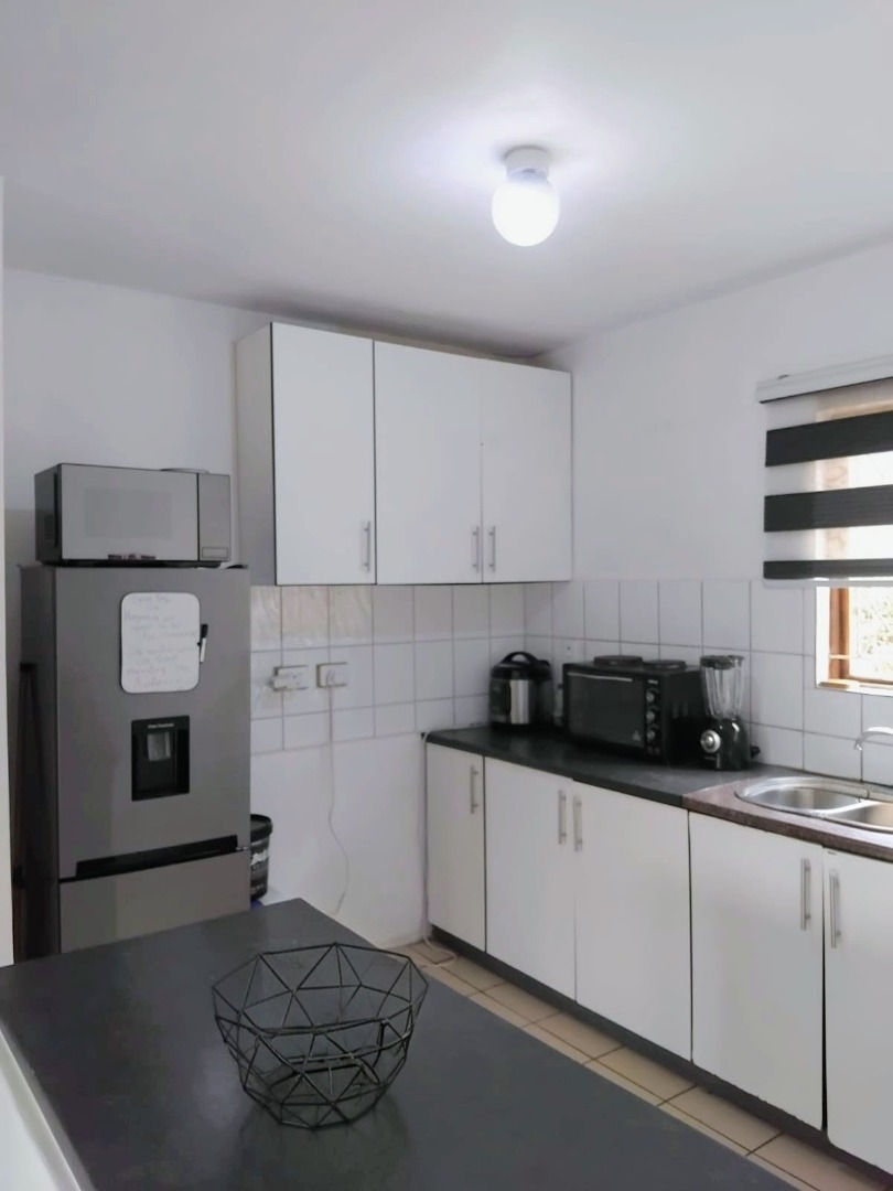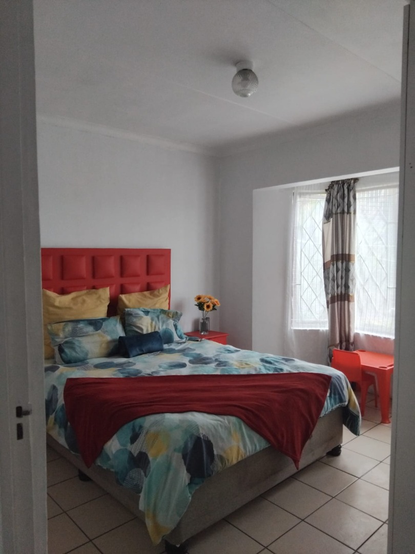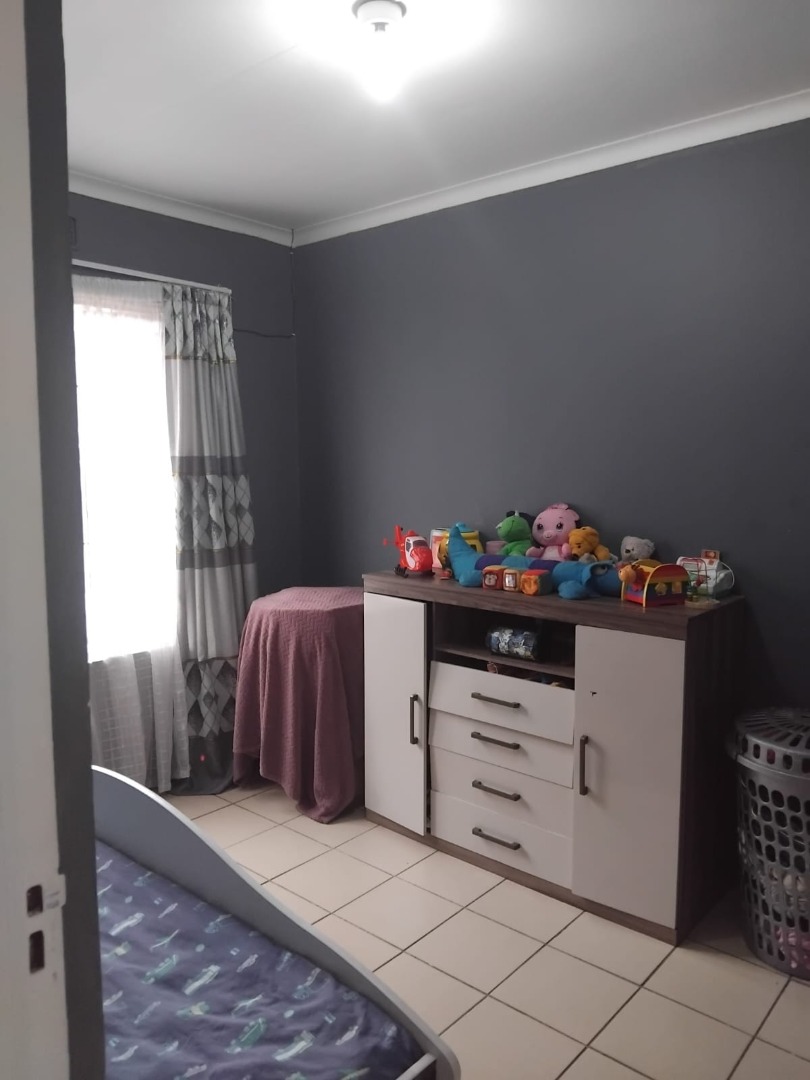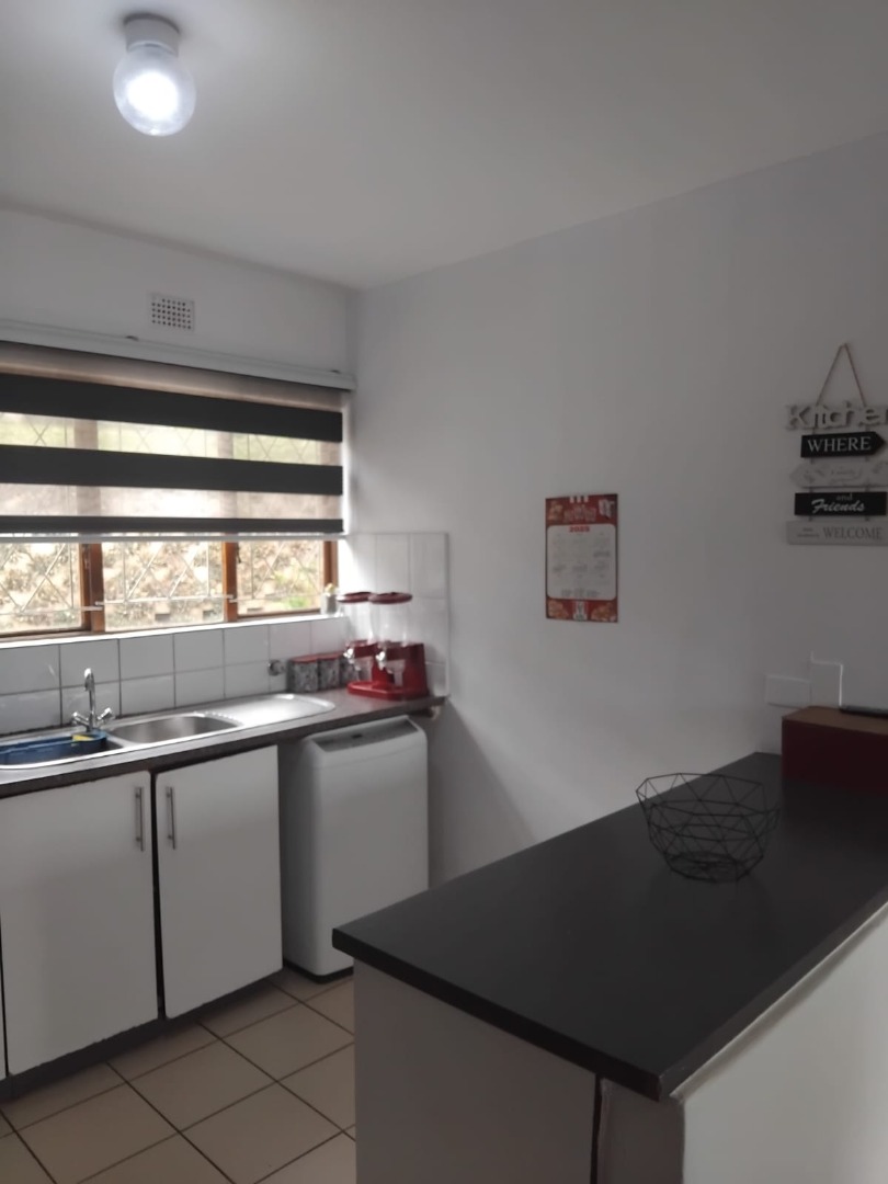 The property boasts a comfortable lounge area and a fully tiled interior, creating a clean and low-maintenance living space. The kitchen includes built-in cupboards, and one of the bedrooms is also fitted with built-in cupboards for convenient storage.