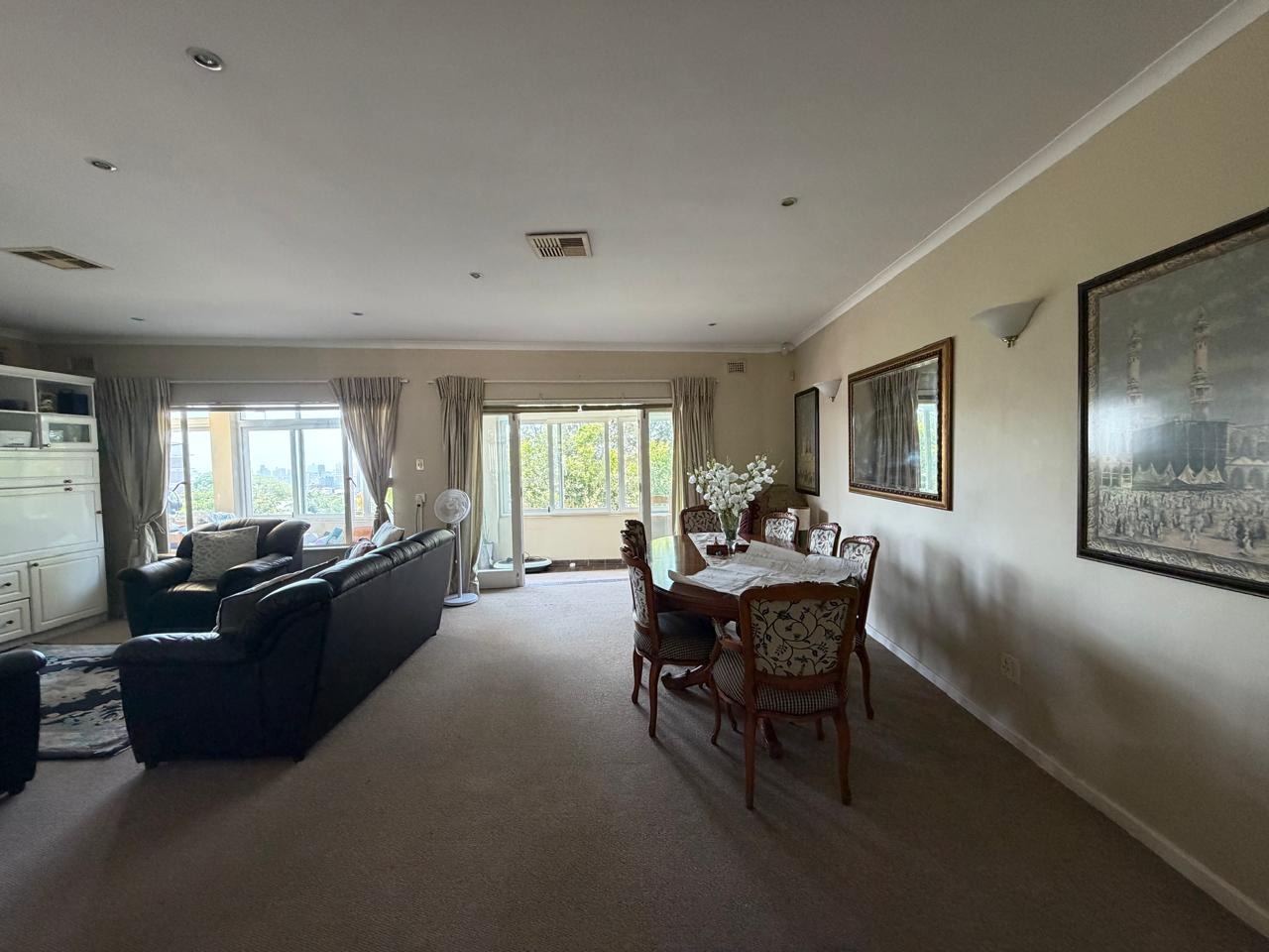 Upon entry, residents are greeted by a spacious, open-plan living and dining area, designed to maximise natural light. The residence comprises two lounges and one dining room, offering versatile spaces for relaxation and entertaining. Large sliding glass doors provide access to an outdoor balcony, seamlessly connecting indoor and outdoor living.