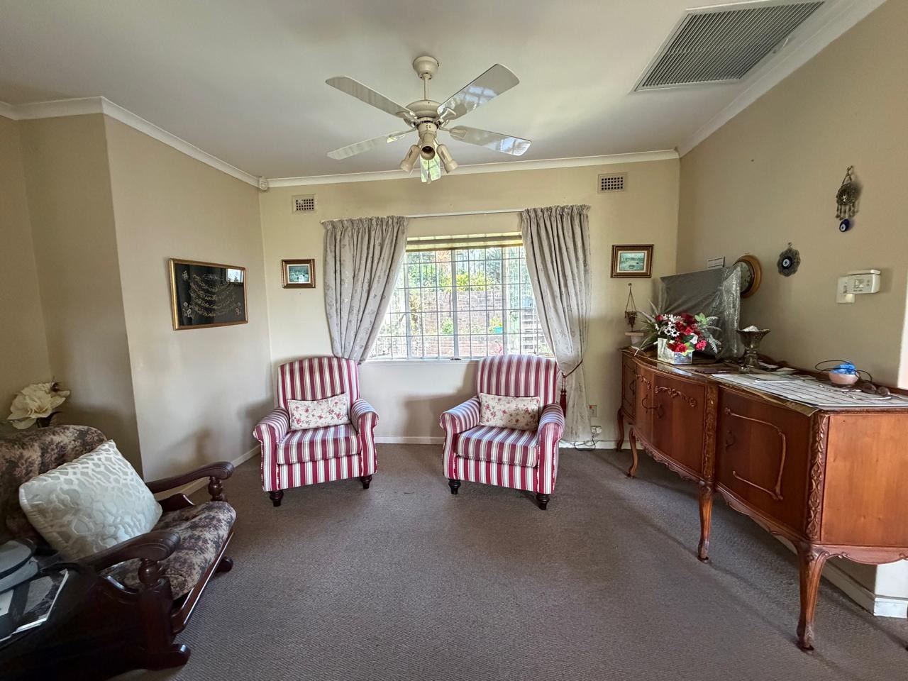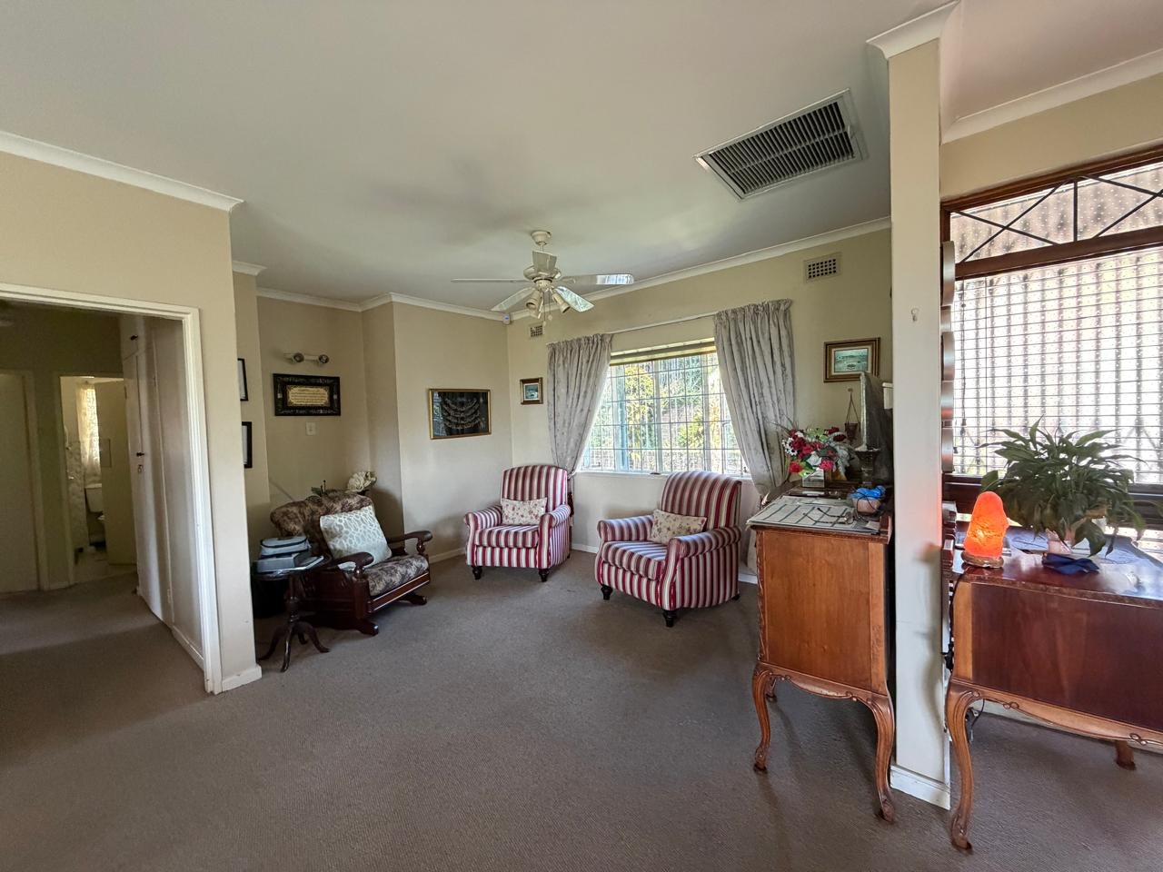 Security is paramount, with an access gate, perimeter fence, and burglar bars installed. Modern fibre connectivity is available, catering to contemporary digital requirements. The property is also wheelchair friendly.