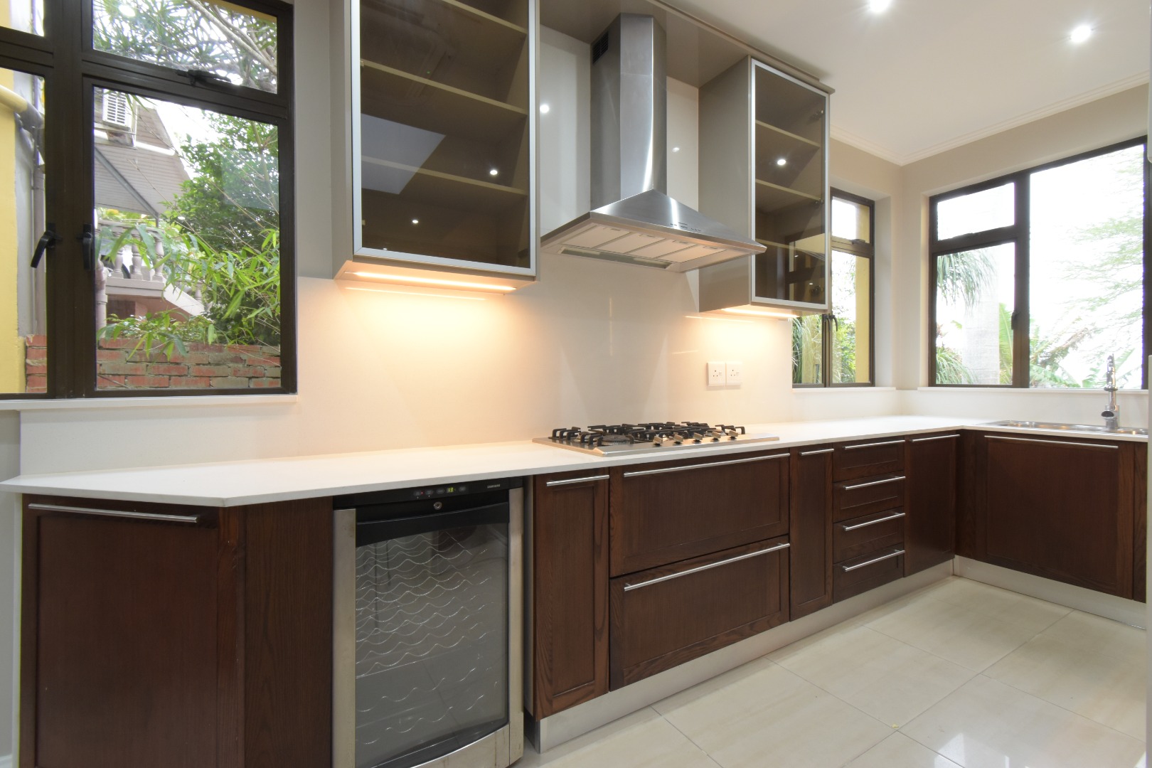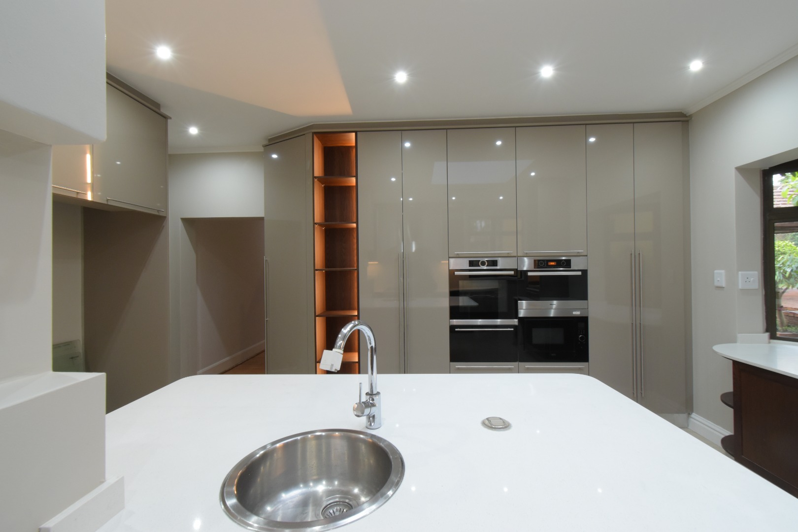 Kitchen is large and has tasteful finishes, lots of cupboard space and beautifully tiled.