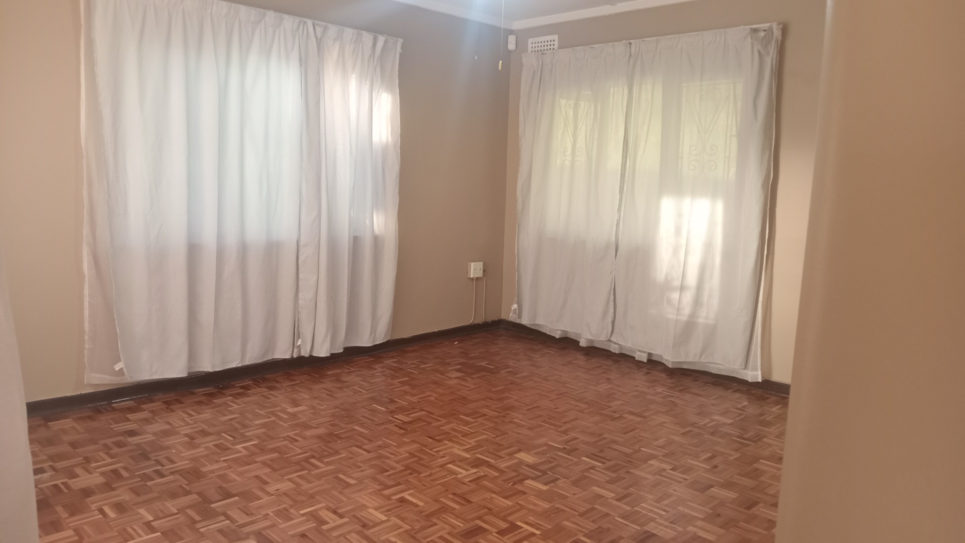 Each of the three bedrooms benefits from natural light, with two featuring en-suite bathrooms for added privacy and convenience. The property includes three bathrooms in total, ensuring comfort for all residents. Security bars on windows and doors provide peace of mind.