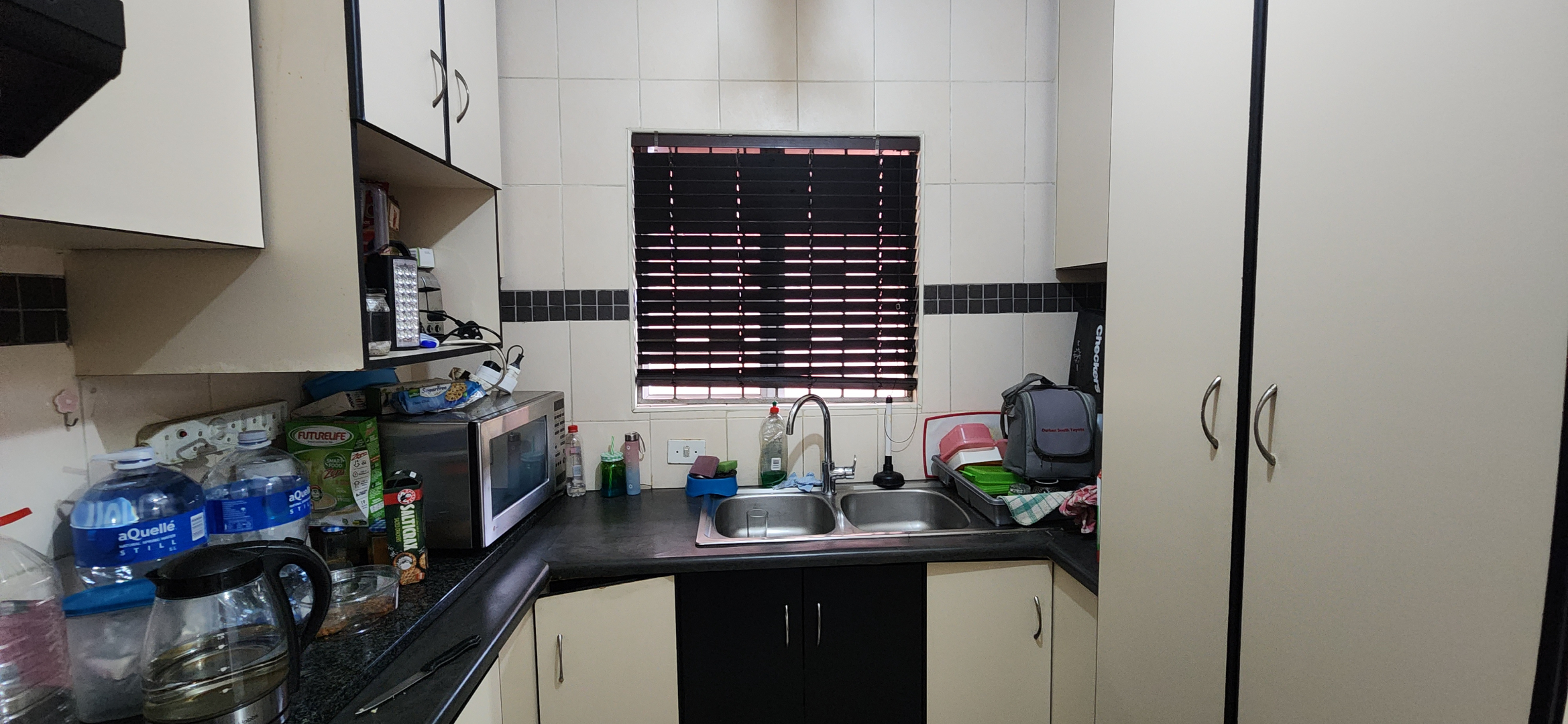 This 60 sqm apartment in Peter Mokaba Ridge offers a comfortable living experience. Designed with an open-plan layout, the unit seamlessly connects the lounge & dining room. The well presented kitchen is airy, spacious and well presented.