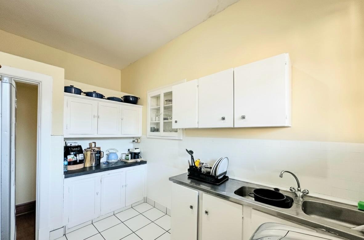 The apartment offers 1.5 well-proportioned bedrooms, providing flexibility for a guest room or home office, complemented by a single bathroom. Practical storage solutions are integrated throughout the unit, enhancing its functionality for residents.