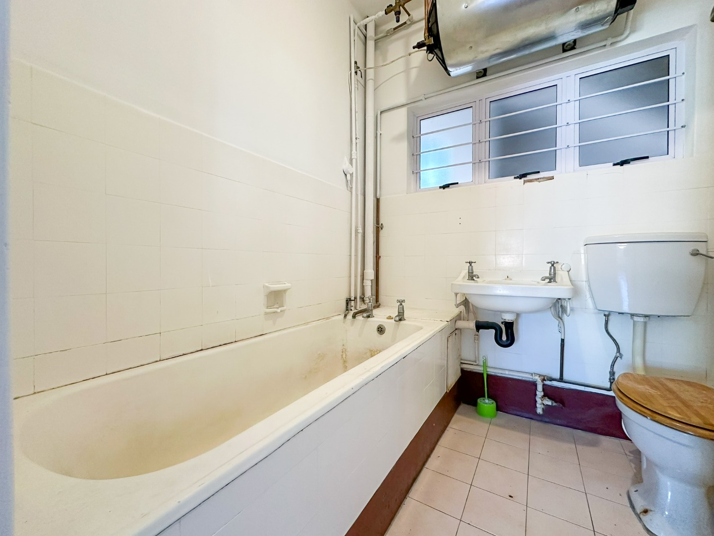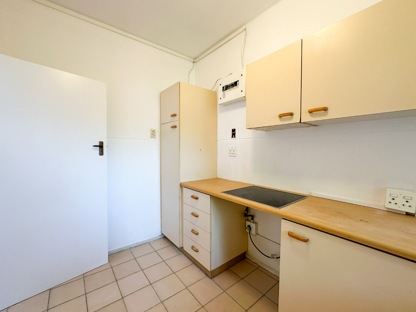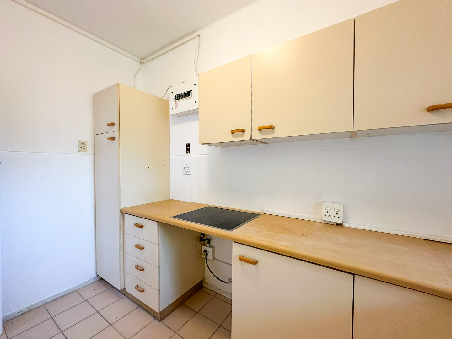 The spacious one-and-a-half-bedroom unit is fully tiled throughout. The bright and airy lounge flows seamlessly into the half-bedroom, ideal for a work-from-home office or study space. The main bedroom is generously sized, featuring built-in cupboards and an air conditioner for year-round comfort.