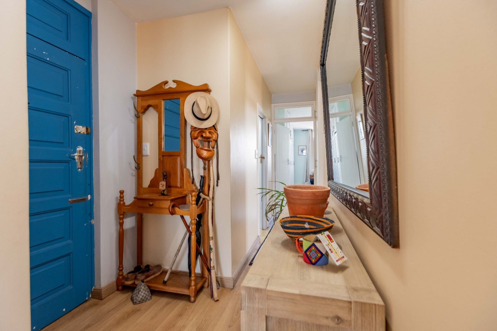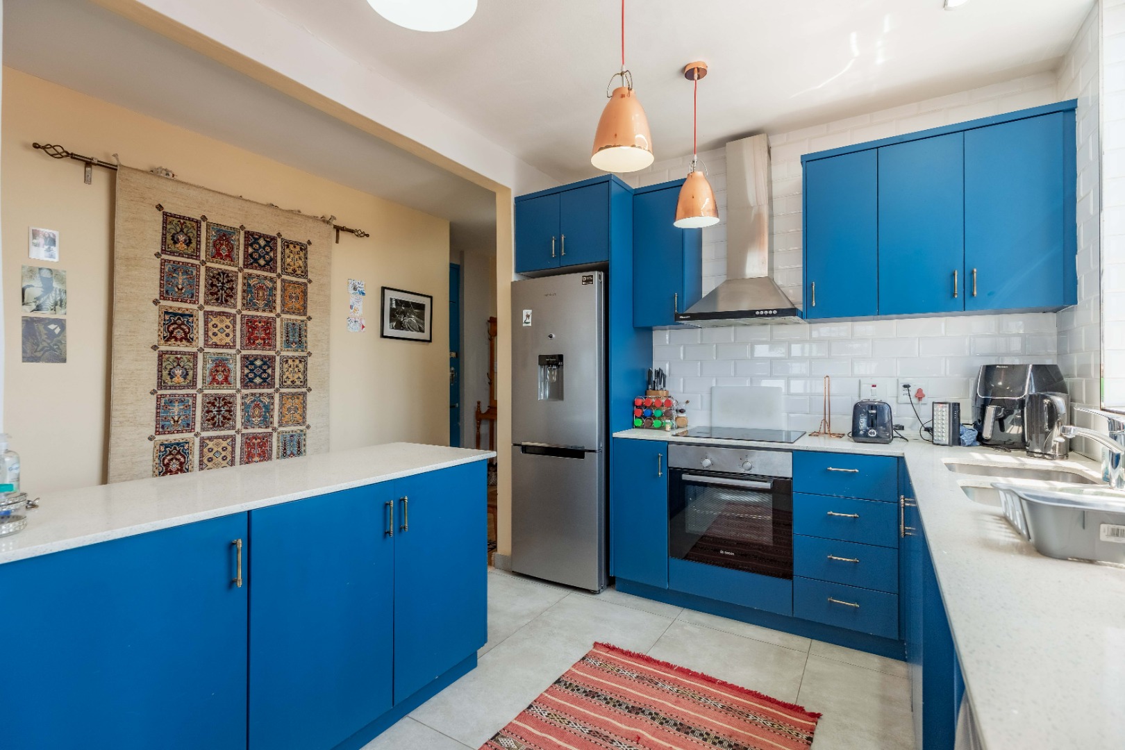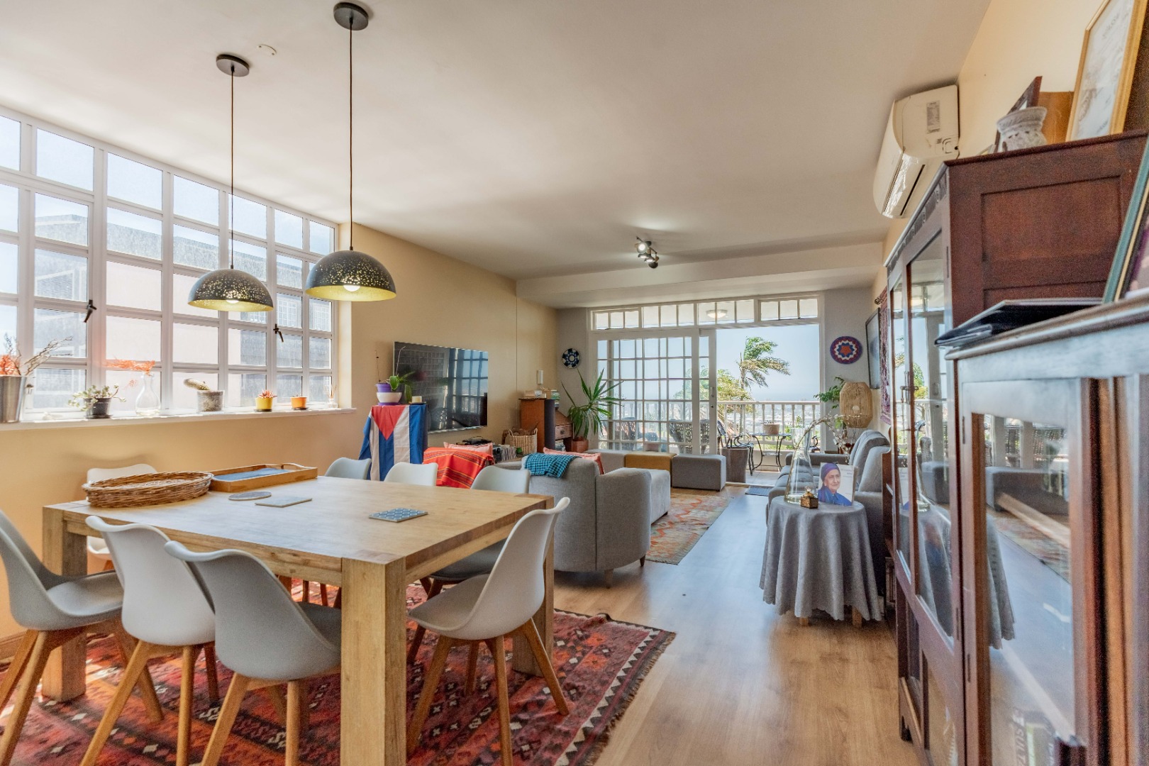 The lounge opens onto a spacious balcony — ideal for entertaining family and friends, or simply unwinding while enjoying the stunning sea views. The main bedroom is generously sized, with built-in cupboards and a modern ensuite bathroom fitted with a shower, toilet, and basin. The second bedroom also includes built-in cupboards, while the guest bathroom is stylishly finished and fully tiled.